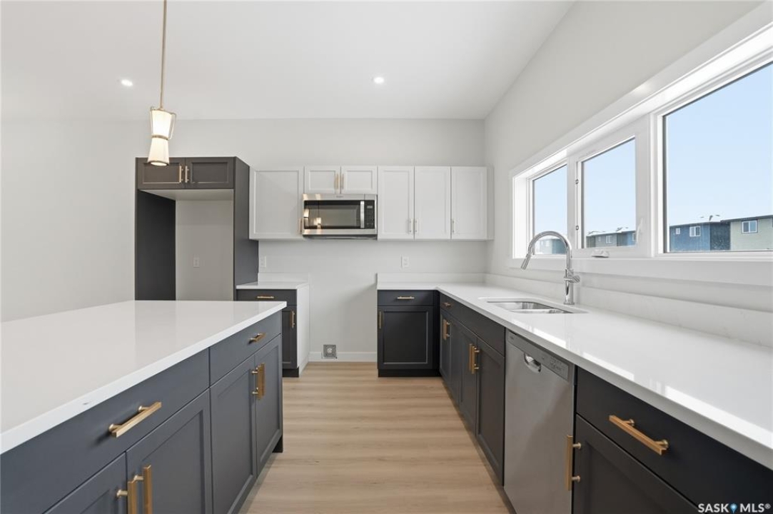 Welcome to the 'Century' - a charming 3-bedroom 2.5 bath home crafted by North Prairie Developments! This lovely home presents an exciting opportunity for homeowners with the option to add a legal basement suite, made even more enticing by eligibility for the SSI grant. Through this program, you could receive up to 35% of the basement suite development costs, making this an excellent investment opportunity. Step inside and be greeted by 9' ceilings and a spacious foyer that leads into the bright and airy living room. An abundance of natural light filters through the kitchen, illuminating the space and highlighting the architectural charm of the archways that grace the main floor, adding character and distinction to every corner. Upstairs, retreat to the spacious primary room featuring a walk-in closet and an ensuite with a built-in makeup area. Two additional bedrooms offer versatility for growing families or hosting guests, while second-floor laundry adds convenience to your daily routine. Outside, enjoy the ease of front landscaping already in place including underground sprinklers. Additionally, a 20'x20' concrete pad comes included. Don't miss out on the opportunity to make the 'Century' your forever home, complete with charm, functionality, and the potential for added value. Schedule your viewing today! This home will be complete Feb 6.