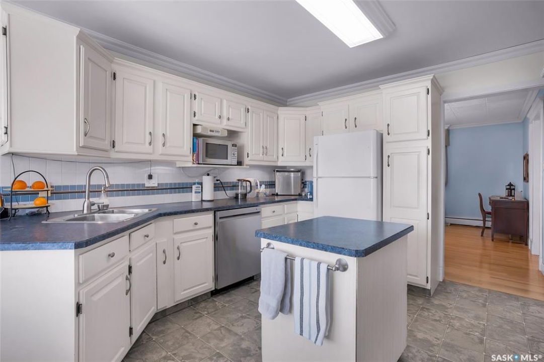 Welcome to this impeccably kept home, ideally situated close to the river, schools, parks, and all amenities. As you enter, you're greeted by a spacious foyer with cork flooring and ample room for jackets, boots, and storage. Gorgeous hardwood floors flow seamlessly through the bright and open main floor, connecting the inviting living room to the dining area, which offers unobstructed views of the stunning backyard. In the kitchen you will find an eating nook, island, and an abundance of counter space and storage. Conveniently located off the main living areas, is a 2-piece bathroom, laundry, and a versatile den or office space. Upstairs, the hardwood floors continue, leading you to three generously sized bedrooms and a recently renovated 5-piece bathroom complete with double sinks and elegant tile flooring. The basement offers exceptional versatility with a bright and sunny 1-bedroom suite, perfect as a mortgage helper or for teenagers and extended family. The suite is fully equipped with its own kitchen, living room, 4-piece bathroom, and bedroom. Additionally, a massive storage room provides the potential to be converted into a home gym, theatre room, or extra living space. The private, fully fenced backyard is beautifully landscaped and features a southeast-facing deck, garden area, and shaded patio space, perfect for outdoor entertaining and relaxation. This exceptional home is complete with an insulated garage, central vacuum system, boiler heat, newer windows, and all appliances included.
