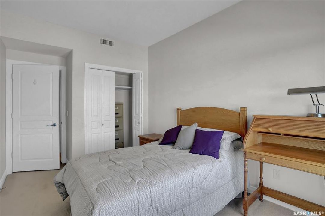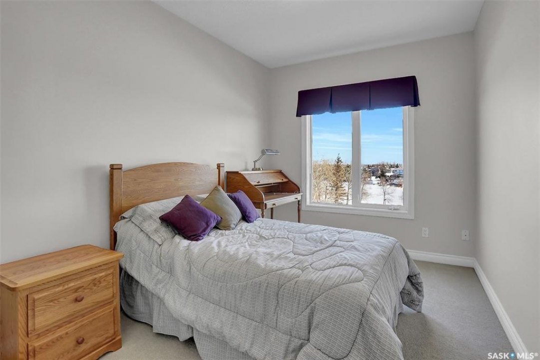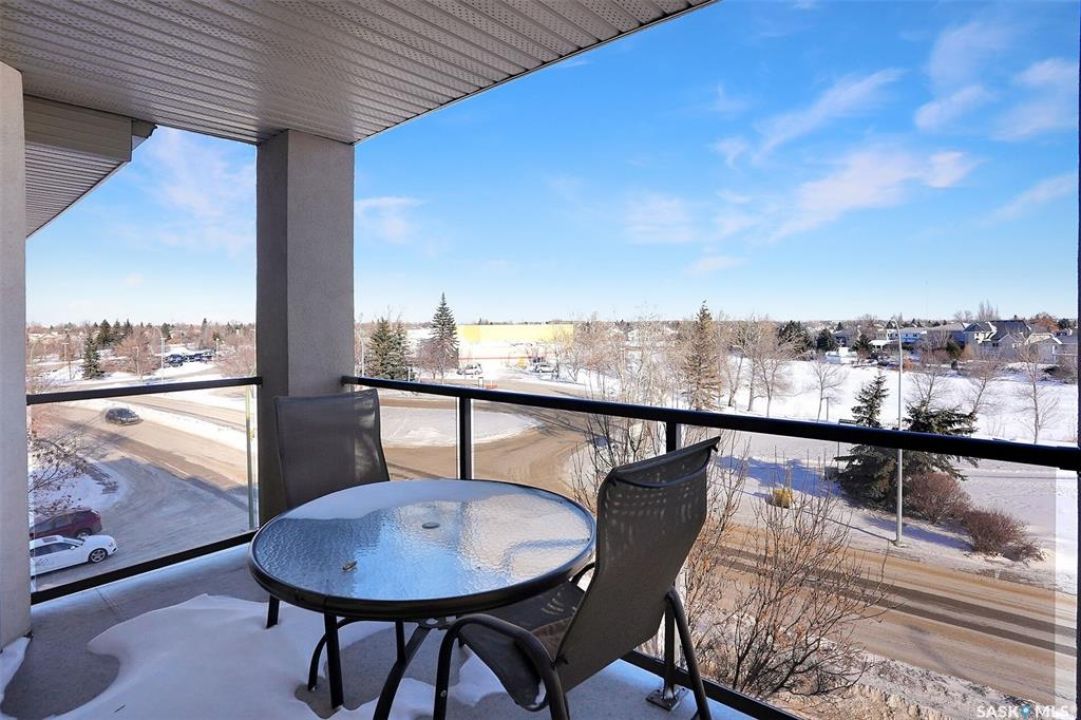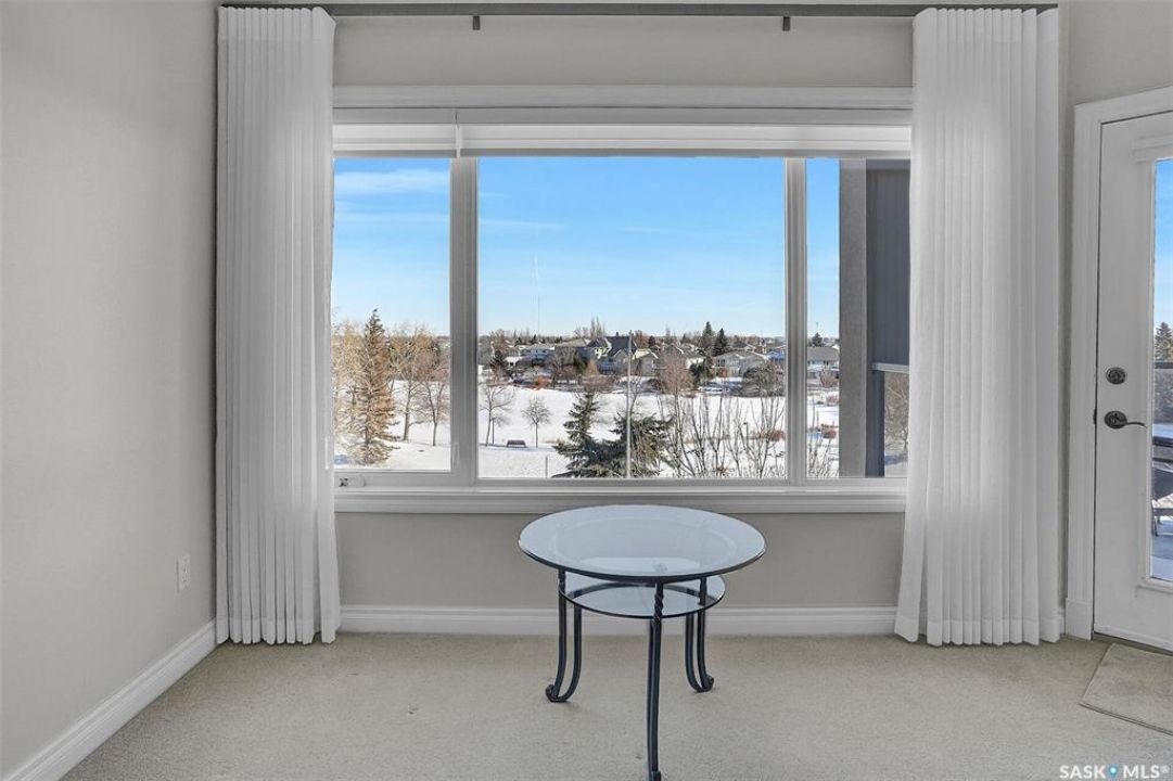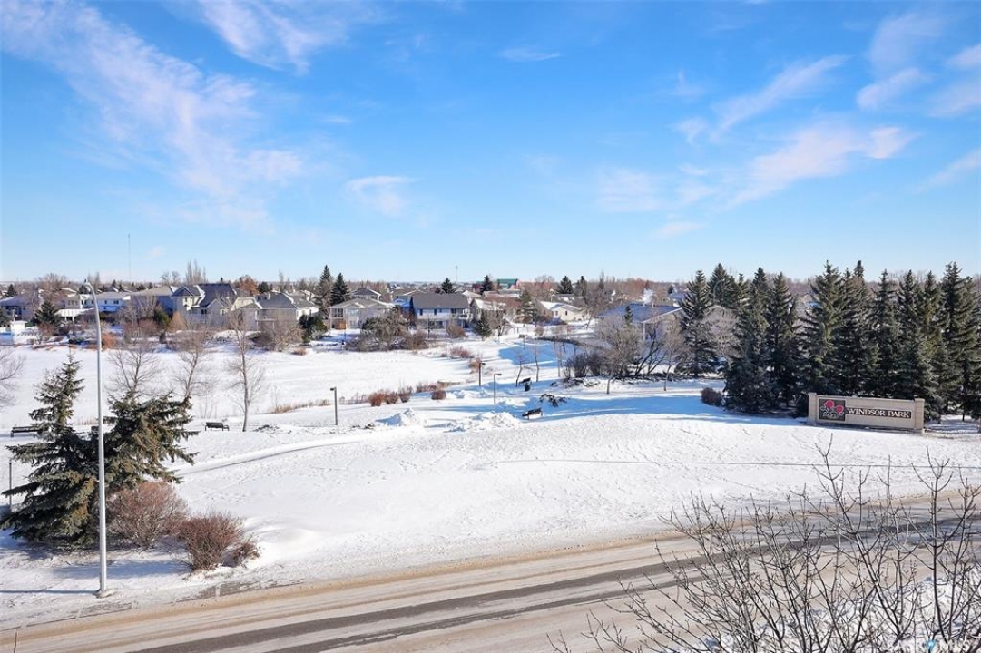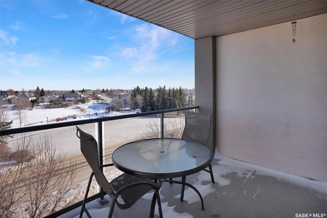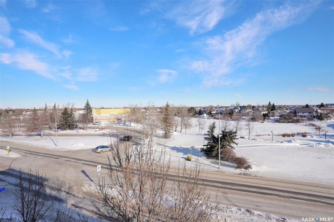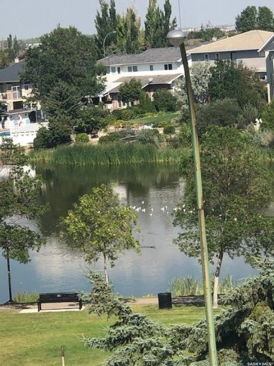 Welcome to this lovely top floor condo that offers 2 spacious bedrooms, 2 bathrooms, and 2 designated parking spots. This condo offers beautiful views of the lake, Sandra Schmirler Leisure Centre, all while being steps away to a coffee shop, library, walking paths, and more. A bright airy condo in an unbeatable location. This spacious and well- designed unit features a fantastic floorplan that is both functional and comfortable. The kitchen is a standout with solid wood cabinets, upgraded granite countertops, ample storage, and a sit up peninsula island – that is perfect for casual dining, and entertaining. The living room and dining area are perfect to relax and enjoy family gatherings. The primary bedroom offers a large walk- in closet and a 4pc ensuite. The 2nd bedroom is spacious and there is a 2nd main 4pc bathroom. You will enjoy the convenience of in suite laundry with storage room. Just off the living area, is access to your private balcony where you can take in the beautiful scenic views, extending your living space outdoors. The condo has been freshly painted and is truly move in ready. There is an additional storage room located on the same floor. The parkade is located on the main floor and includes a wash bay for all residents to use. The building offers a games room, and amenities room. Extremely well maintained, and ready for a new owner, this condo offers an undeniable presence rarely found in the market. Condo fees include: Heat, Water, Sewer, Building Insurance, Common Exterior and Interior maintenance, Lawn Care, Snow Removal and Reserve Fund.