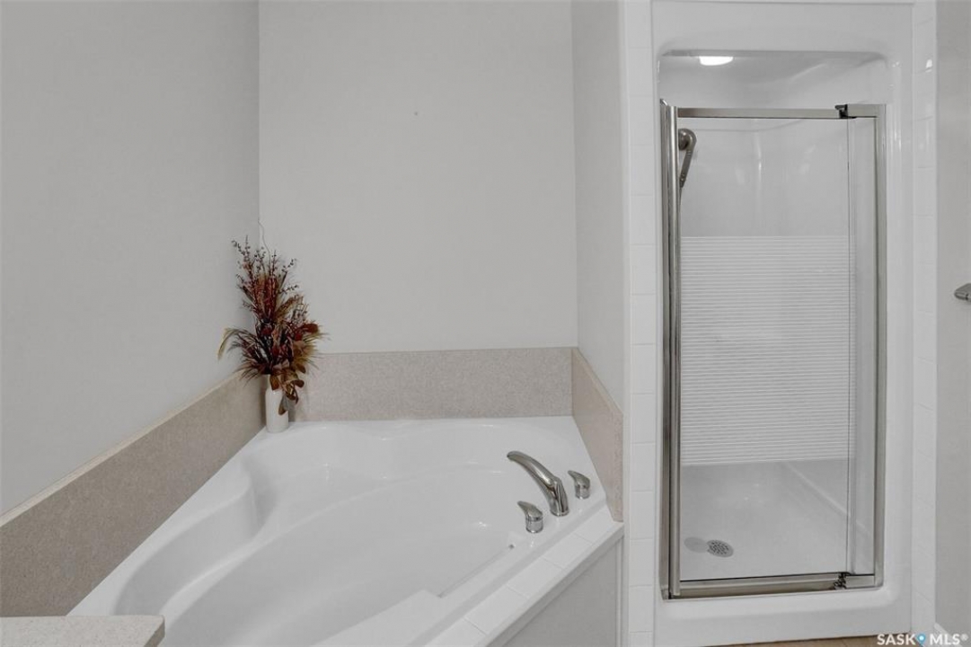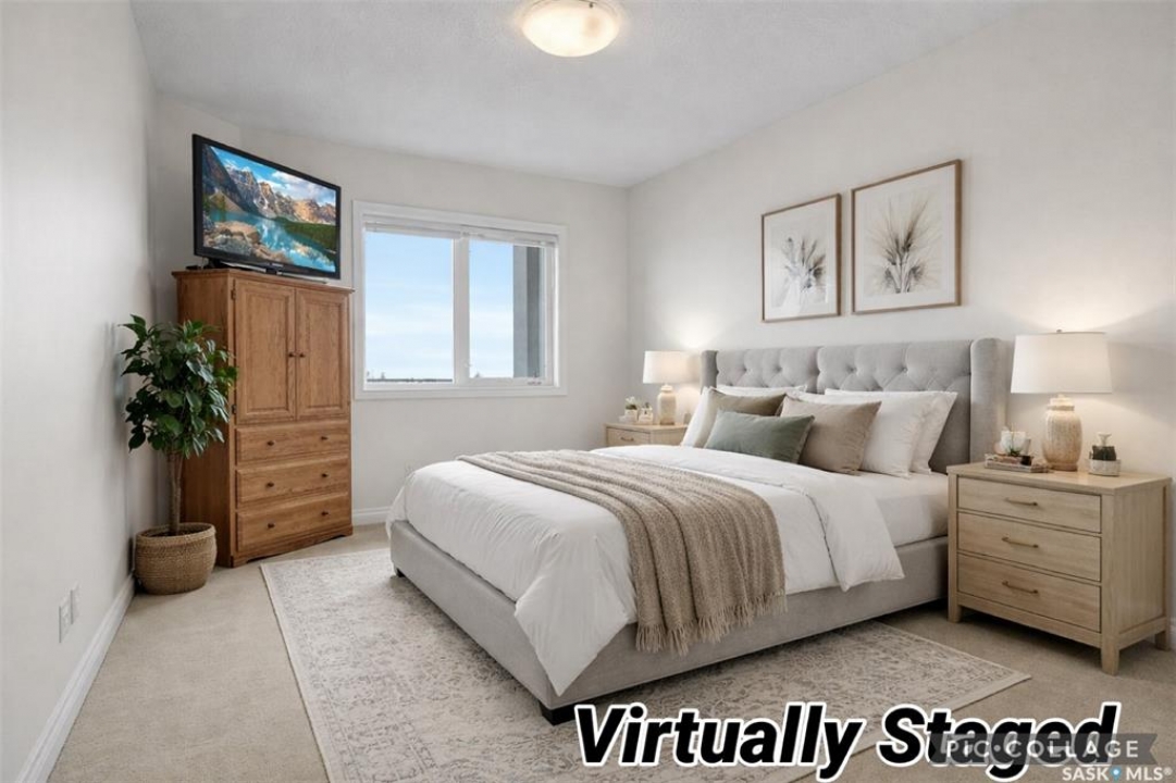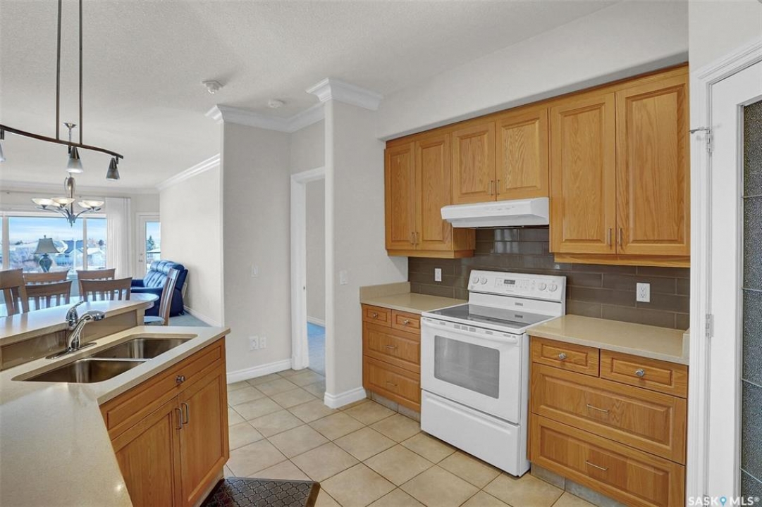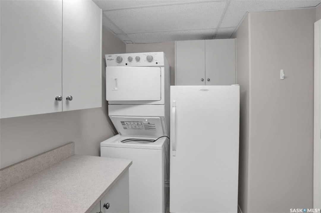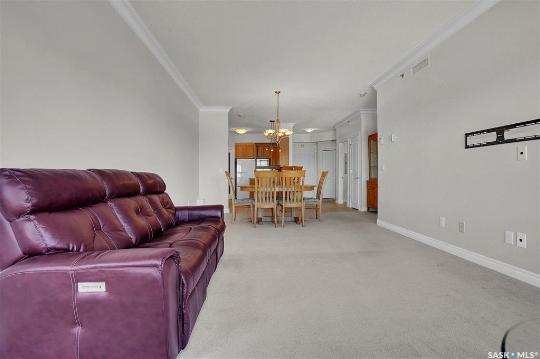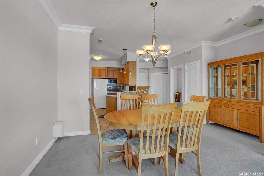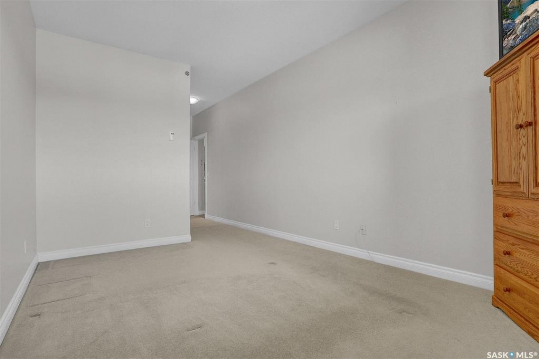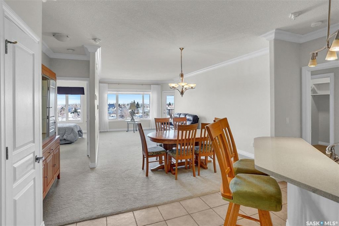 Welcome to this lovely top floor condo that offers 2 spacious bedrooms, 2 bathrooms, and 2 designated parking spots. This condo offers beautiful views of the lake, Sandra Schmirler Leisure Centre, all while being steps away to a coffee shop, library, walking paths, and more. A bright airy condo in an unbeatable location. This spacious and well- designed unit features a fantastic floorplan that is both functional and comfortable. The kitchen is a standout with solid wood cabinets, upgraded granite countertops, ample storage, and a sit up peninsula island – that is perfect for casual dining, and entertaining. The living room and dining area are perfect to relax and enjoy family gatherings. The primary bedroom offers a large walk- in closet and a 4pc ensuite. The 2nd bedroom is spacious and there is a 2nd main 4pc bathroom. You will enjoy the convenience of in suite laundry with storage room. Just off the living area, is access to your private balcony where you can take in the beautiful scenic views, extending your living space outdoors. The condo has been freshly painted and is truly move in ready. There is an additional storage room located on the same floor. The parkade is located on the main floor and includes a wash bay for all residents to use. The building offers a games room, and amenities room. Extremely well maintained, and ready for a new owner, this condo offers an undeniable presence rarely found in the market. Condo fees include: Heat, Water, Sewer, Building Insurance, Common Exterior and Interior maintenance, Lawn Care, Snow Removal and Reserve Fund.