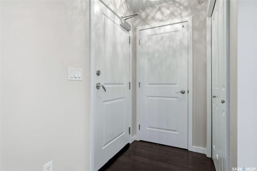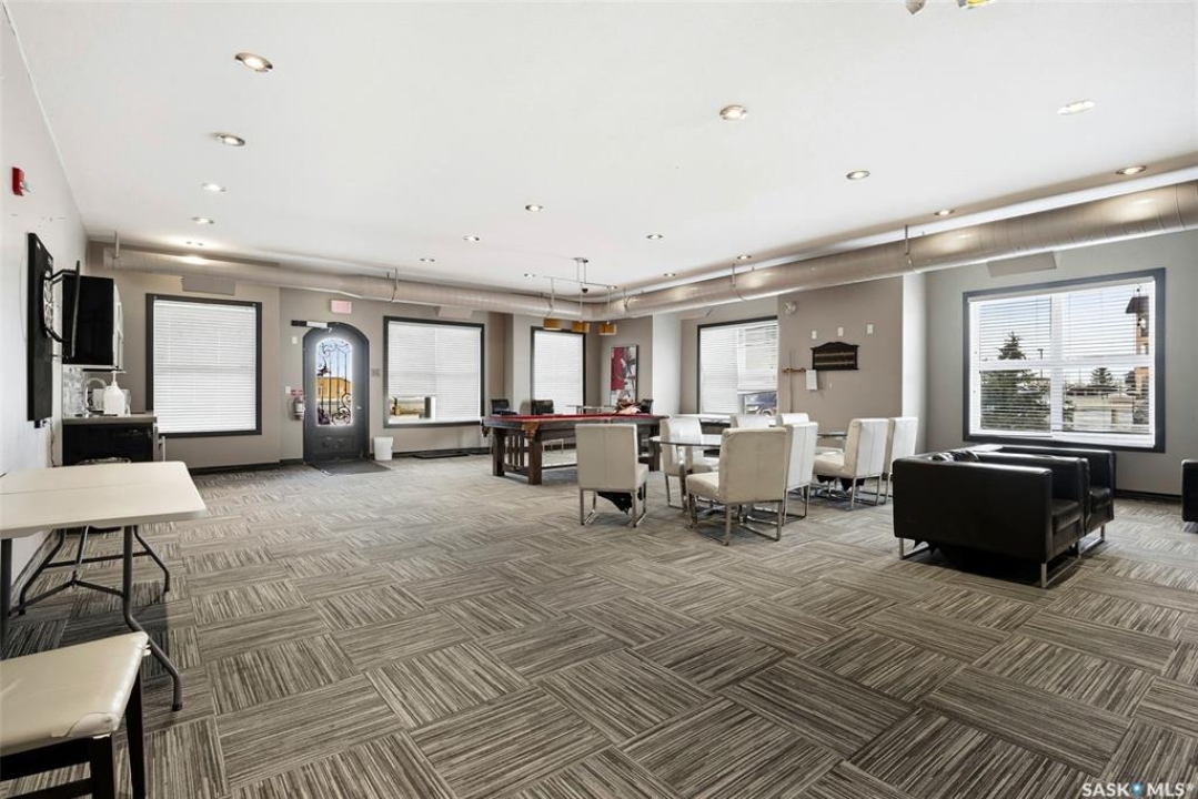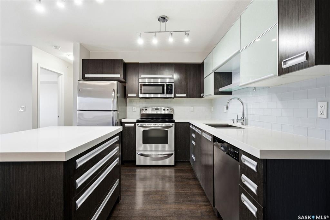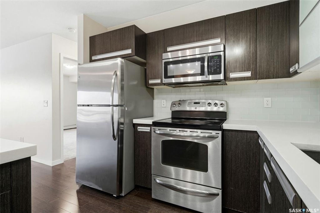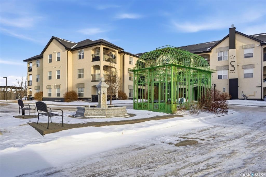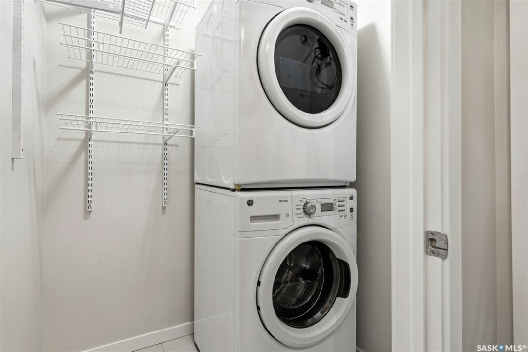 Move-in ready top floor 2 bedroom condo with 2 exclusive use parking stalls located in a desireable East Regina location. This upgraded top floor condo features quartz countertops in the kitchen & bathroom. Tile floors in the bathroom & laundry room. Engineered hardwood floors in the living room, dining area & kitchen. Carpet in both bedrooms. The primary bedroom and 2nd bedroom both offer walk-in closets. This condo includes a full set of stainless steel appliances in the kitchen (Over The Range Microwave, Built-in Dishwasher, Fridge, Stove), a stacked Washer & Dryer in the laundry room as well as a wall unit Air Conditioner in the living room. This condo has just been professionally painted, the carpets were professionally cleaned & it is ready to move into. This condominium complex features a clubhouse offering an indoor pool, hot tub, exercise area & lounge. The building features a secure entry & elevator. Condo fees of $493.71/mos include: common area maintenance, external building maintenance, access to & maintenance of clubhouse, lawncare, snow removal, garbage, reserve fund contribution, common insurance, as well as Heat, Water & Sewer. Call today for more information or to book a viewing.