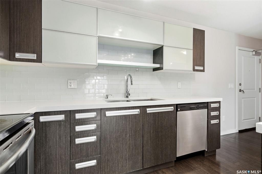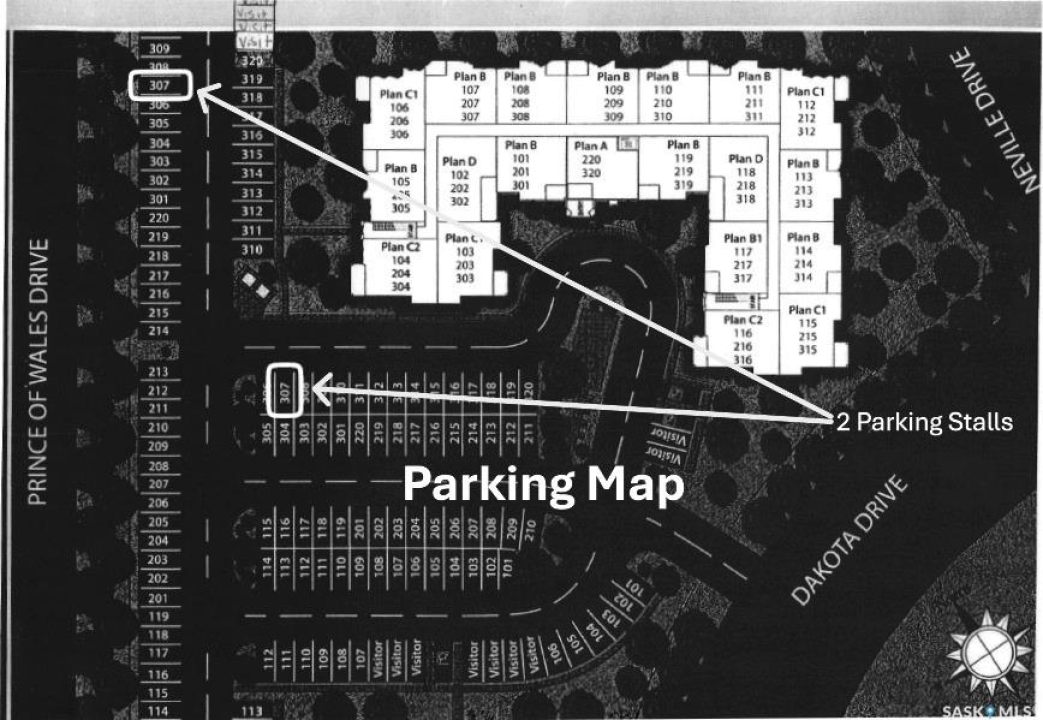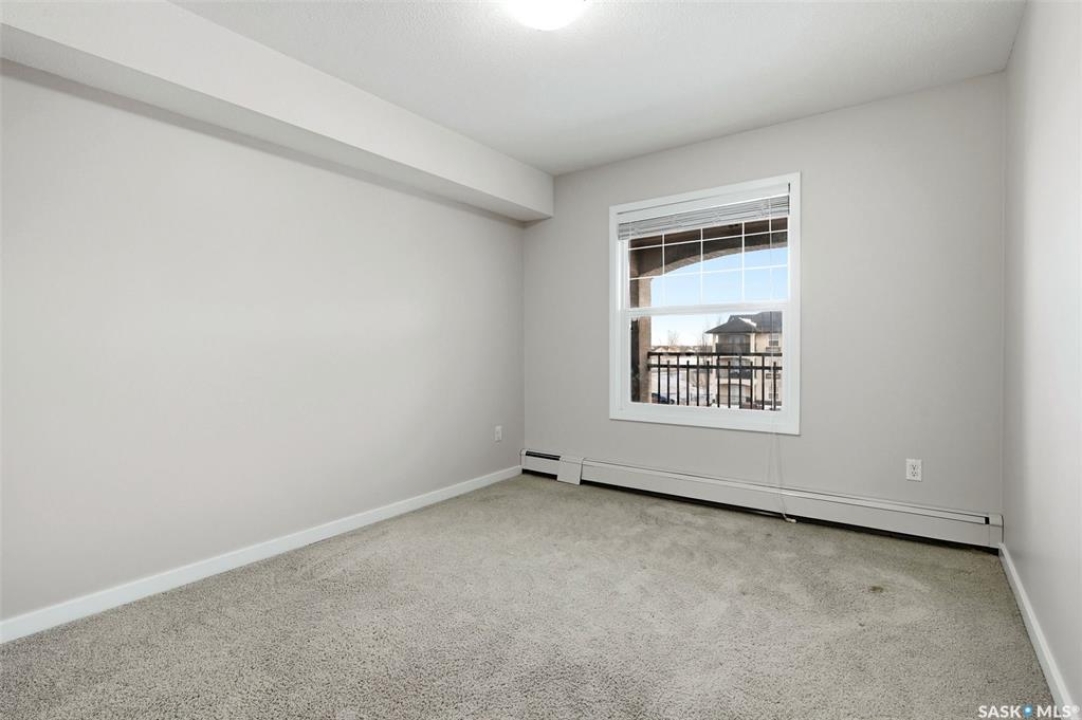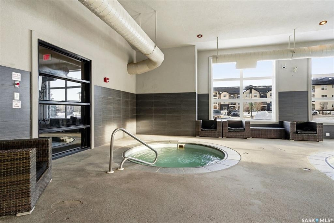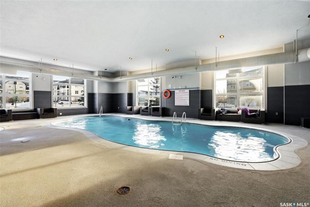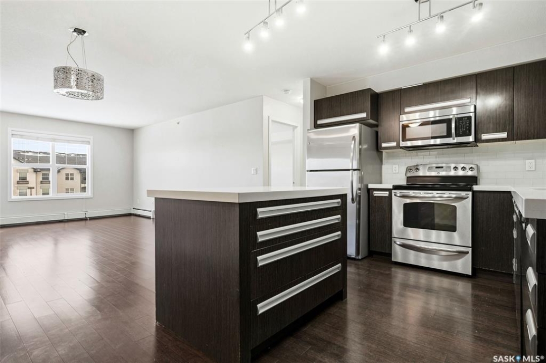 Move-in ready top floor 2 bedroom condo with 2 exclusive use parking stalls located in a desireable East Regina location. This upgraded top floor condo features quartz countertops in the kitchen & bathroom. Tile floors in the bathroom & laundry room. Engineered hardwood floors in the living room, dining area & kitchen. Carpet in both bedrooms. The primary bedroom and 2nd bedroom both offer walk-in closets. This condo includes a full set of stainless steel appliances in the kitchen (Over The Range Microwave, Built-in Dishwasher, Fridge, Stove), a stacked Washer & Dryer in the laundry room as well as a wall unit Air Conditioner in the living room. This condo has just been professionally painted, the carpets were professionally cleaned & it is ready to move into. This condominium complex features a clubhouse offering an indoor pool, hot tub, exercise area & lounge. The building features a secure entry & elevator. Condo fees of $493.71/mos include: common area maintenance, external building maintenance, access to & maintenance of clubhouse, lawncare, snow removal, garbage, reserve fund contribution, common insurance, as well as Heat, Water & Sewer. Call today for more information or to book a viewing.