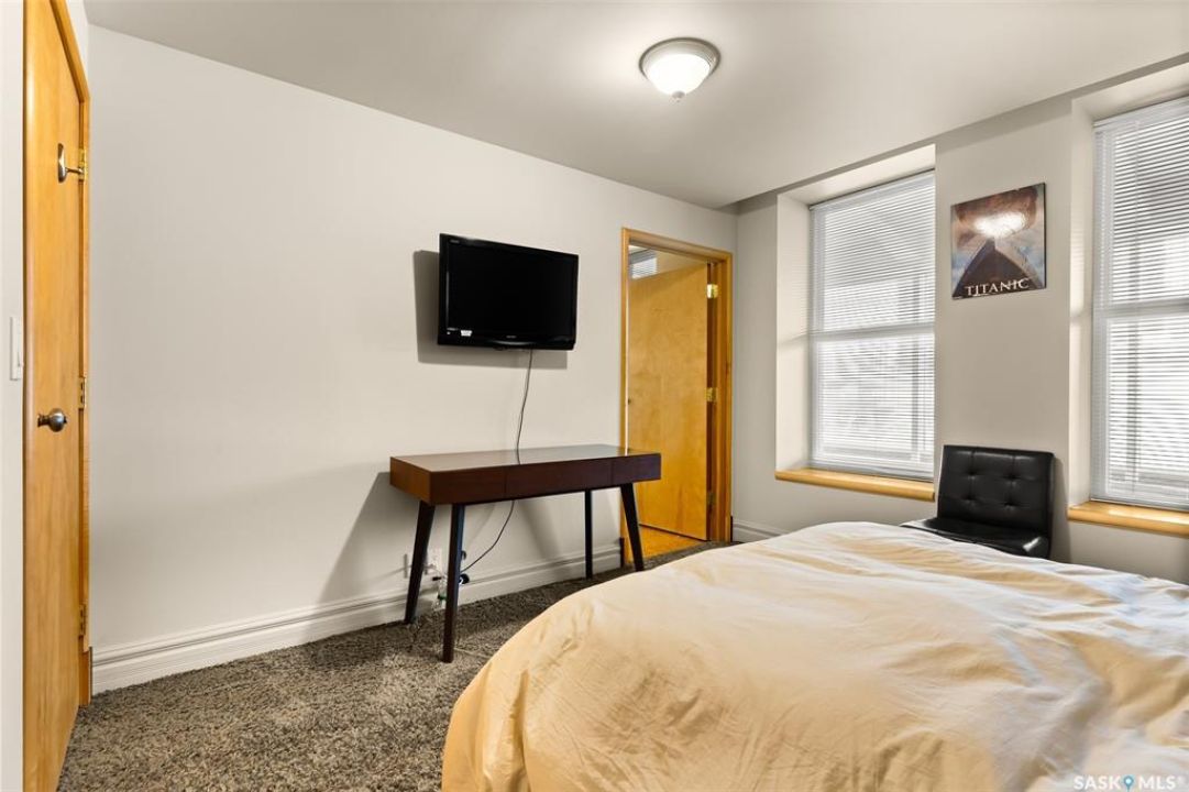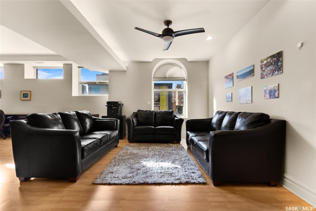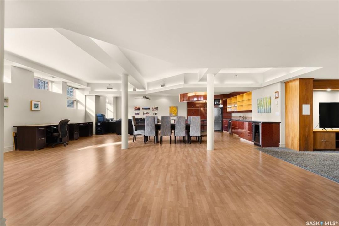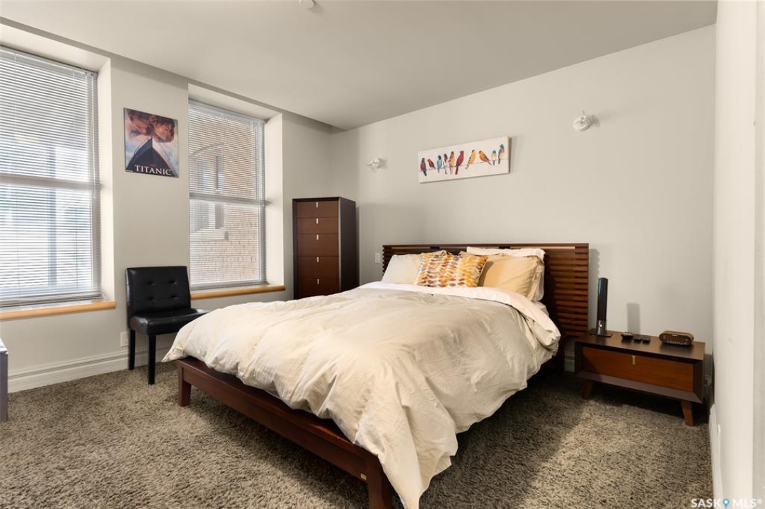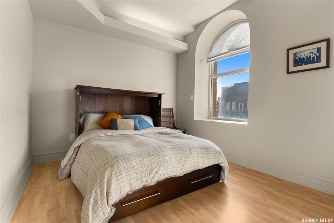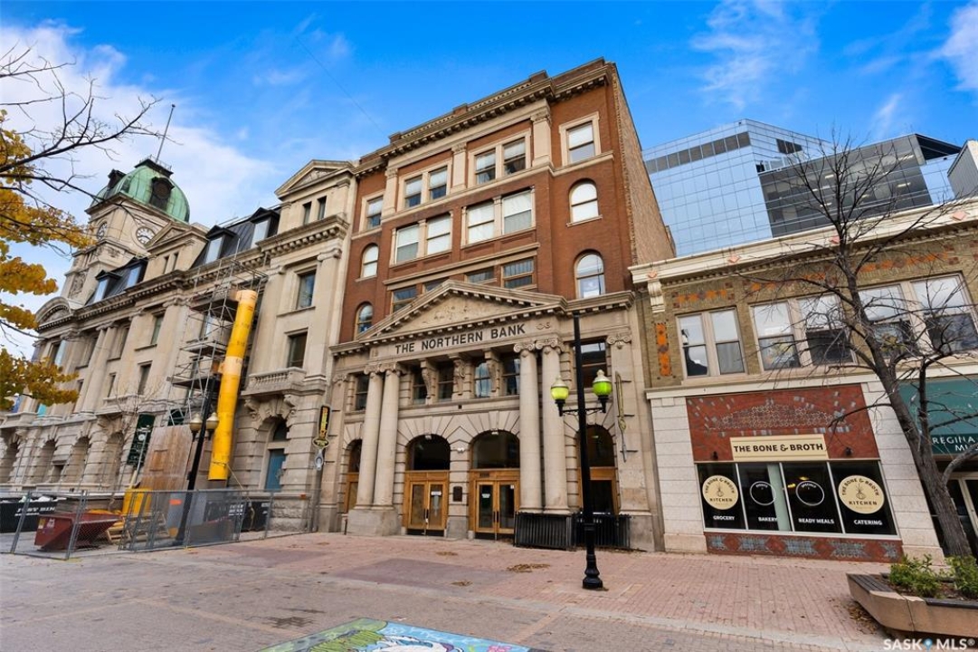 Experience executive loft living in the iconic Northern Bank Building, a historic landmark set in one of downtown's most sought after locations. Step off the private elevator directly into 2,532 square feet of open, airy living space designed for both entertaining and everyday comfort. This expansive residence features an open concept kitchen, dining, and living area, complemented by a dedicated theatre room, making it perfect for movie nights or hosting guests. Offering three bedrooms and three bathrooms, the layout balances generous space with thoughtful functionality. The primary suite impresses with a massive walk-in closet and a spa like, five piece ensuite. The second bedroom enjoys its own private three piece bathroom, while a spacious front room easily serves as a home office or third bedroom. Additional highlights include in-suite laundry and storage, exclusive access to a rooftop patio on the adjacent building, and two parking stalls in the heated underground parkade.