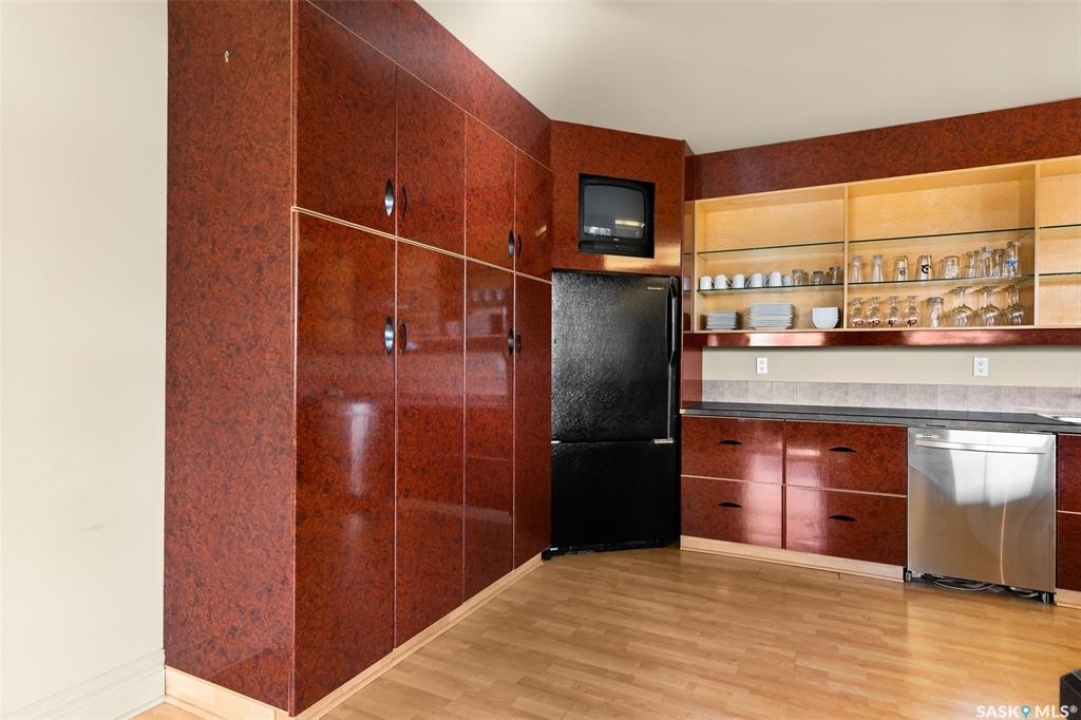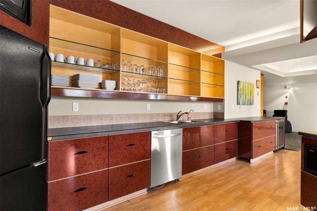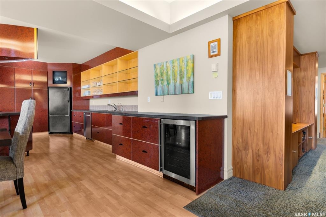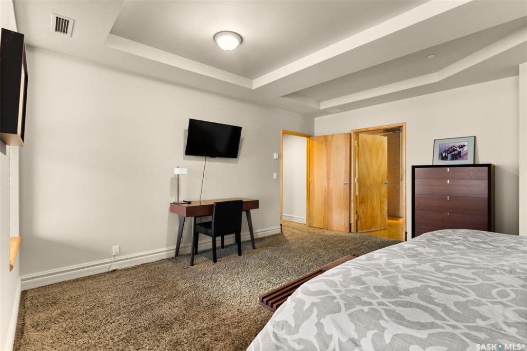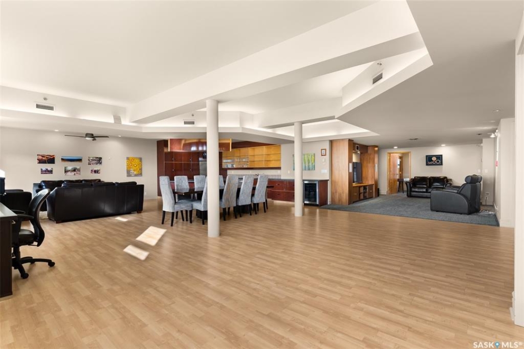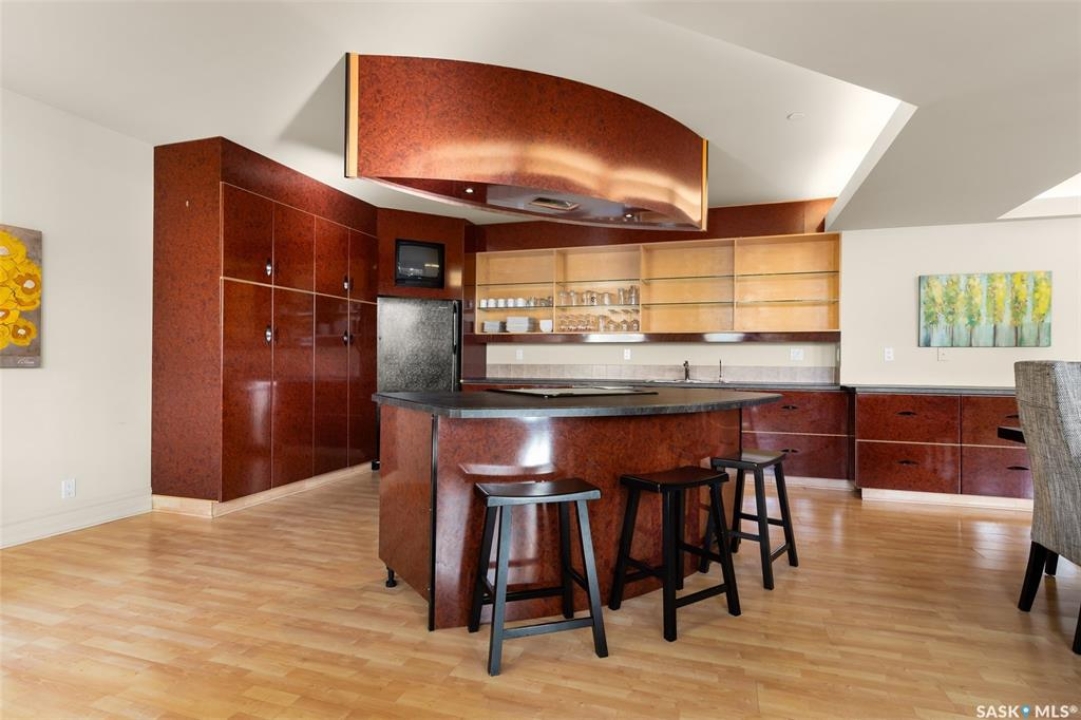 Experience executive loft living in the iconic Northern Bank Building, a historic landmark set in one of downtown's most sought after locations. Step off the private elevator directly into 2,532 square feet of open, airy living space designed for both entertaining and everyday comfort. This expansive residence features an open concept kitchen, dining, and living area, complemented by a dedicated theatre room, making it perfect for movie nights or hosting guests. Offering three bedrooms and three bathrooms, the layout balances generous space with thoughtful functionality. The primary suite impresses with a massive walk-in closet and a spa like, five piece ensuite. The second bedroom enjoys its own private three piece bathroom, while a spacious front room easily serves as a home office or third bedroom. Additional highlights include in-suite laundry and storage, exclusive access to a rooftop patio on the adjacent building, and two parking stalls in the heated underground parkade.