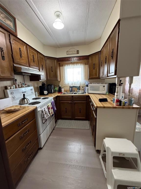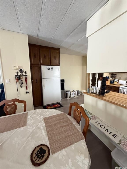 Welcome to this newly renovated 1980 single-wide mobile home located in the friendly Town of Edam. Offering 1,036 sq ft of comfortable living space in a 14x74 layout, this home is packed with value and move-in ready. Inside, you'll find 3 bright bedrooms, a cozy kitchen and dining area, and a sun-filled living room that makes the space feel open and welcoming. Recent updates in 2024 including full interior paint and flooring, toilet, sink, taps, tub surround and lino in bathroom, water heater, baseboards, sand point well, pump replaced, washer, insulated skirting. Outside, enjoy a fully fenced yard—perfect for kids, pets, or entertaining—plus a 24x29 insulated garage with plenty of room for vehicles, storage, or a workshop. Ideally located close to Jackfish Lake and Turtle Lake, this property offers the perfect balance of town living and outdoor recreation. This home is ready for you—just move in and enjoy!