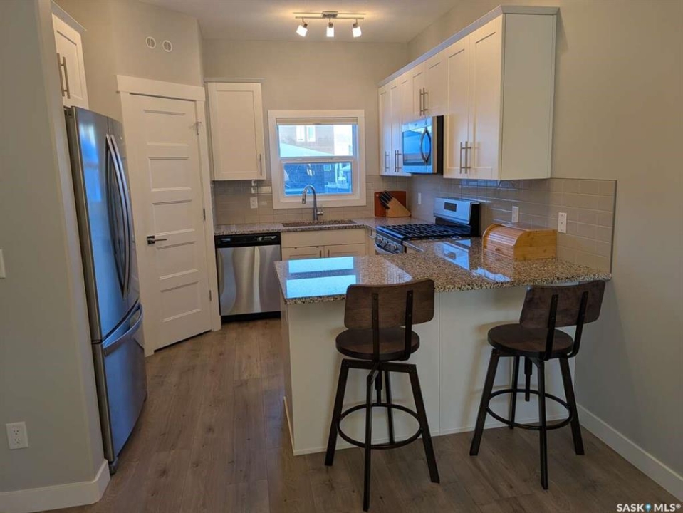 For more information, please click the "More Information" button. Welcome to "The Henry E", a 1,414 square foot, two-storey home on piles built by Glenrose Master Builder circa 2017/2018 with structural warranty protection to November 2029. It features 9-foot ceilings on the main floor; carpet, laminate, vinyl, and tile flooring, premium fixtures, stainless steel appliances, tile back splashes, and Comfortex blinds throughout. It's just steps from parks & walking trails, with schools, Costco, and other shopping only minutes away. The large front entrance and closet area leads to a bright and open dining/living room space with a park view. The corner kitchen facilitates great work flow and a breakfast bar. There is a quartz counter top, gas range, and a large fridge & pantry. The main floor has a 2-piece guest washroom. Upstairs, the spacious master bedroom has a 4-piece en-suite, a generous walk-in closet with wire shelves, and a tv-mount. There are two additional bedrooms, each with a large window. A second 4-piece bathroom and extra large washer/dryer combo with sanitizing features rounds out the top floor. The finished basement has a washer/dryer combo plus Dricore sub-floor panels, an electric fireplace, added insulation, and a suspended ceiling for extra coziness. The secondary rec/guest kitchen sports an induction stove, quartz counter top, built-in dining table/desk, and soft close cupboards. The bedroom is spacious with a large walk-in closet. The 3-piece bathroom has grab bars and there is an optional stair lift (not included in listing). Residence has central A/C and vac, a hot water circulation pump, full network wiring, and a generator pass-through. It features a "Unicorn" 20' x 40' / 4-car tandem garage with 9-foot ceilings, two overhead doors, a catch basin, and gas line RI. All grading/landscaping is completed including a vinyl fence with two gates, mature lawns, and a decorative crab apple tree in front.