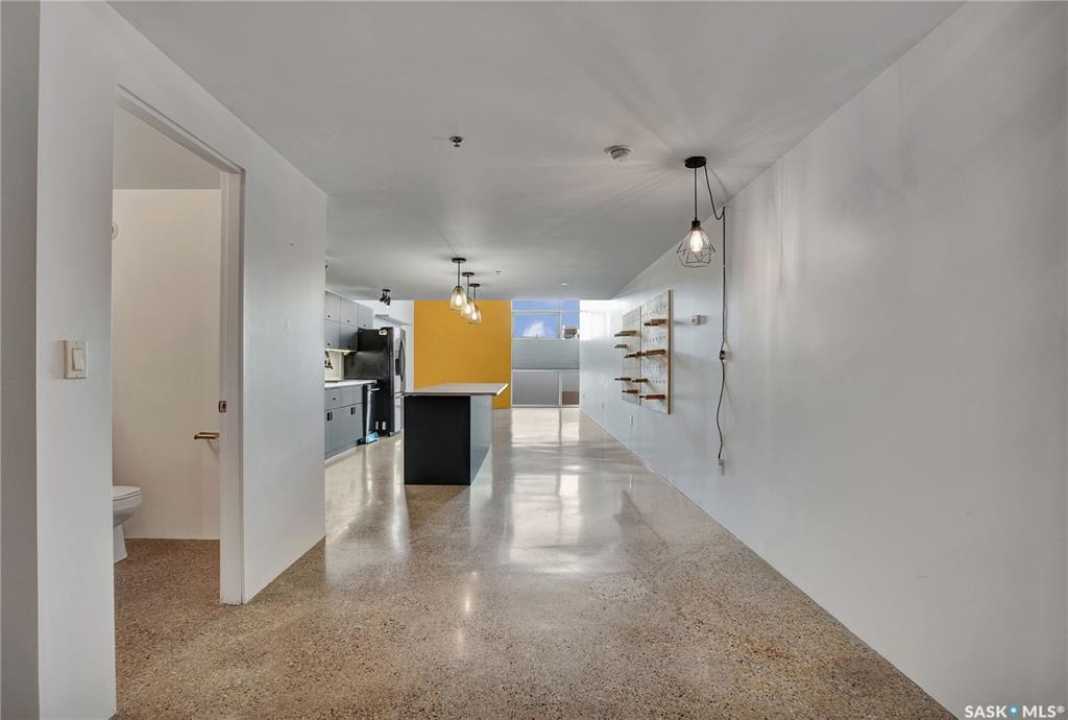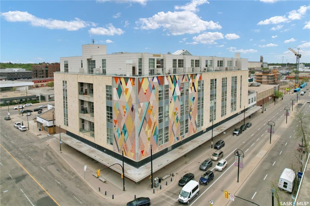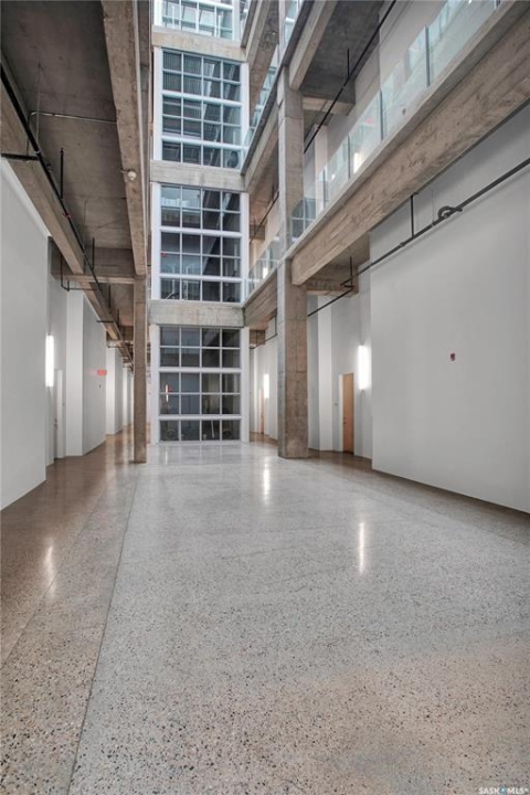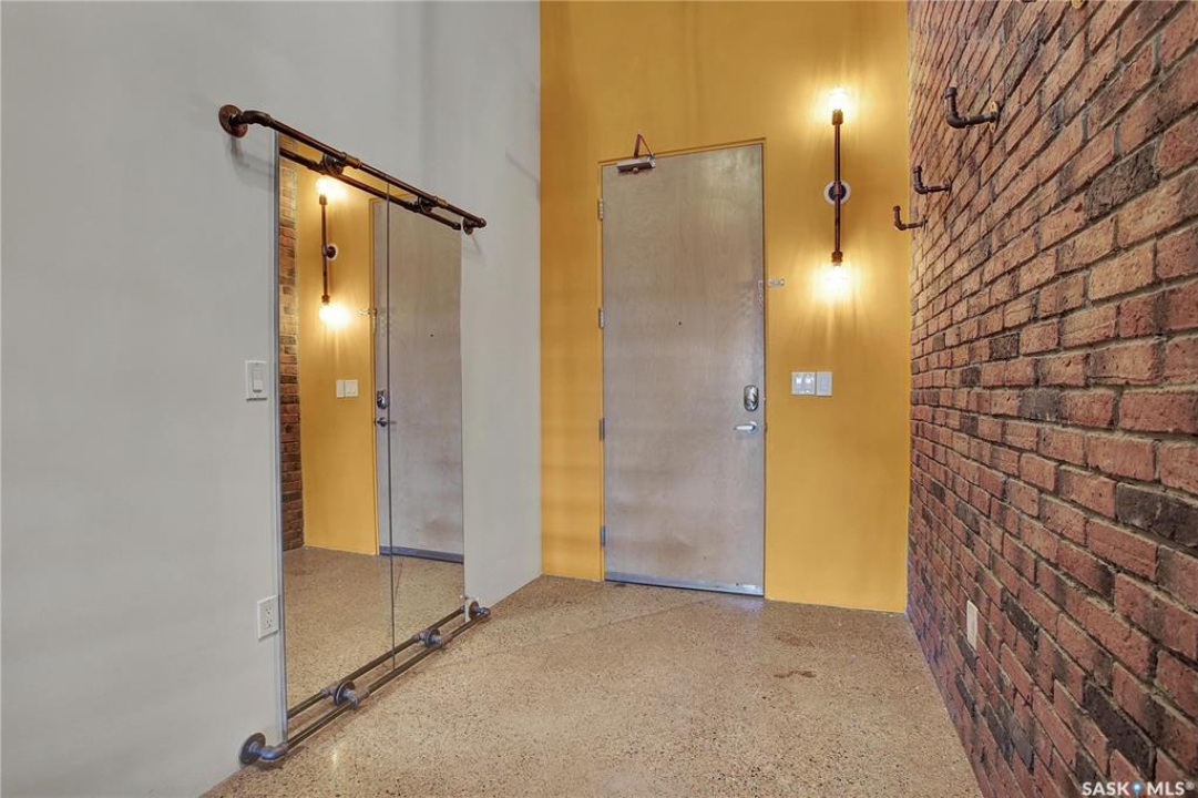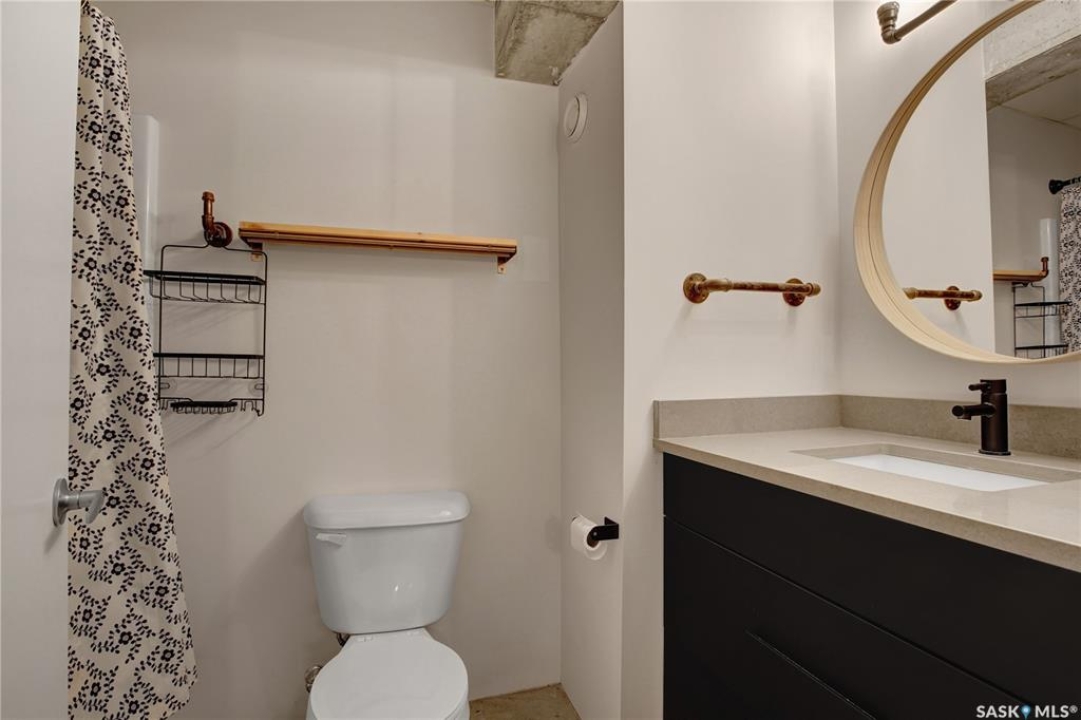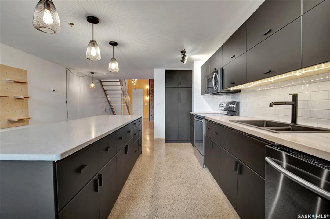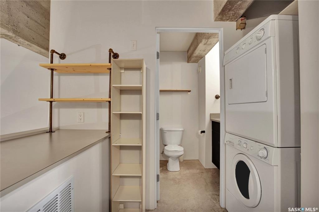 Welcome to #223–120 23rd Street East, located in the heart of downtown Saskatoon at the highly sought-after 2nd Avenue Lofts. This exceptional residence offers a truly distinctive urban living experience, blending industrial character with modern comfort. Polished concrete floors, exposed concrete beams, and an impressive 14-foot-tall by 9.5-foot-wide window create a striking sense of openness while flooding the space with natural light. The sleek matte-black kitchen is both stylish and functional, featuring an extensive bank of cabinetry, stainless steel appliances, and a substantial quartz island—ideal for both everyday living and entertaining. When you're not hosting at home, you'll appreciate being just steps from some of Saskatoon's best restaurants, cafés, Remai Modern Art Gallery, The Persephone Theatre and The Meewasin Valley River Trails. The spacious entry area provides an ideal work-from-home setup, while an additional constructed bedroom offers flexibility as a guest room, private office, or treatment space, complete with a conveniently located powder room. Upstairs, the generous primary bedroom overlooks the main living area, enhancing the loft-style ambiance. The four-piece bathroom has been tastefully renovated, and the unit includes all appliances as well as in-suite laundry for everyday convenience. One parking stall is included in the secure, heated underground parkade, which also provides dedicated bike storage. Condo fees include heat, water, and electricity. Residents enjoy an impressive array of amenities, including four dedicated rooms for fitness, cardio, ping pong, and a library or meeting space, along with an on-site building manager and 24-hour video security throughout common areas and exterior spaces. The rooftop patio, accessible from the third floor, is an ideal setting to barbecue, relax, and enjoy city views. Pets are permitted for owner-occupants with board approval, making this an exciting opportunity for downtown living.