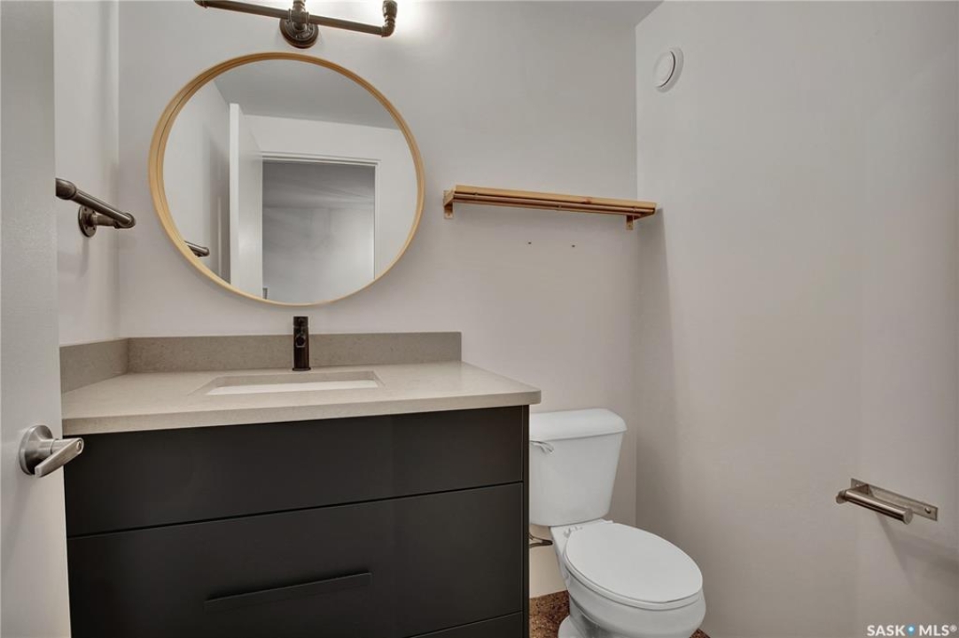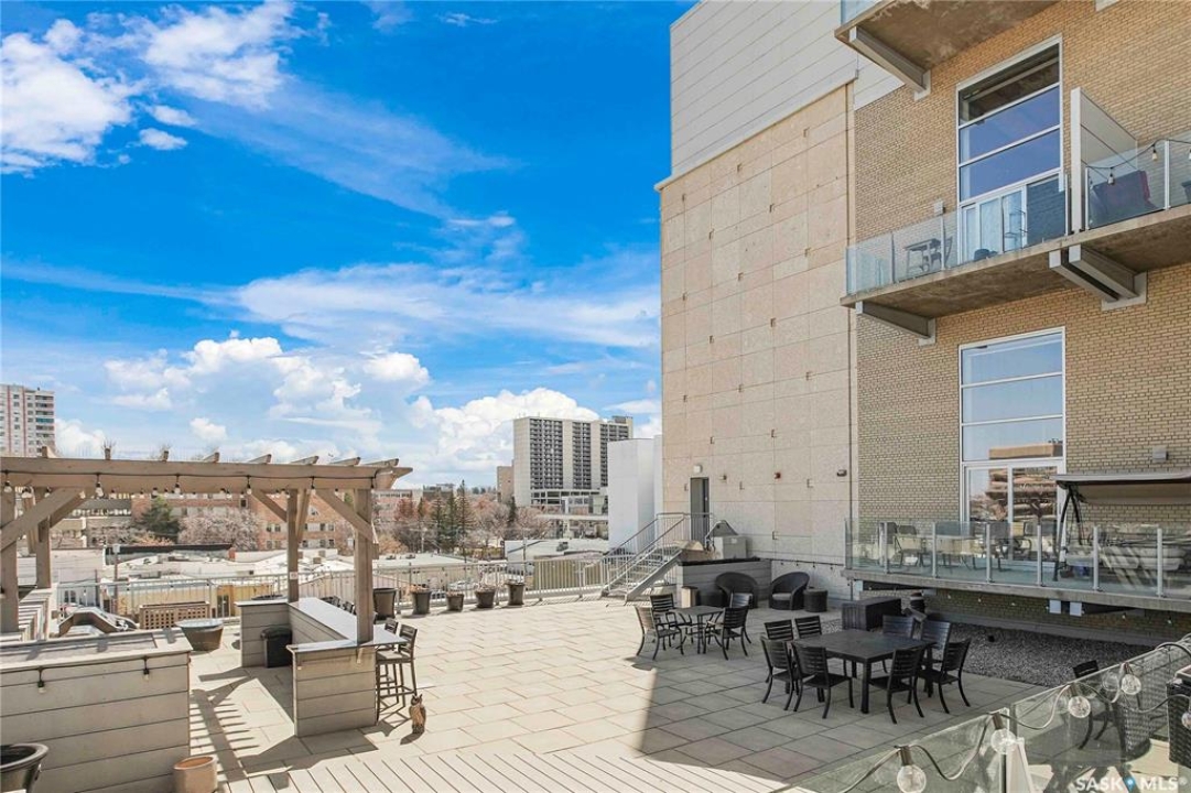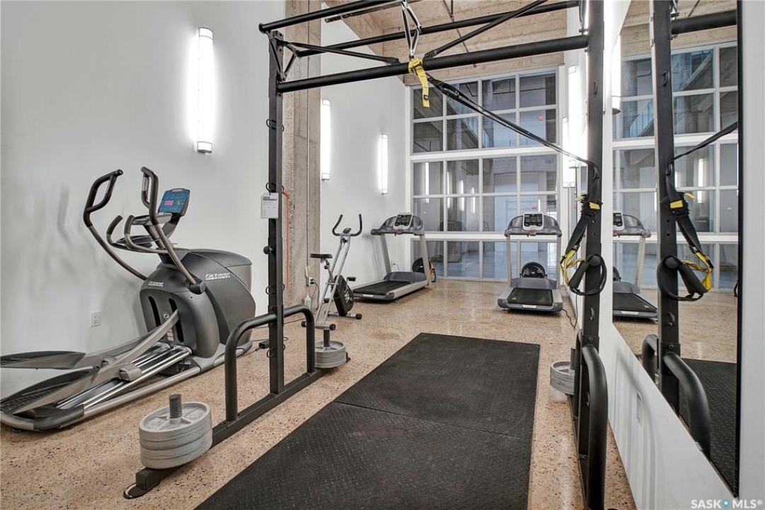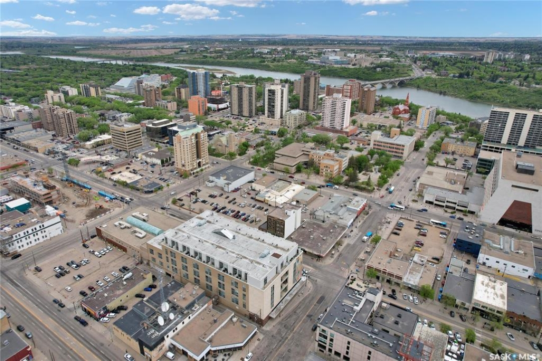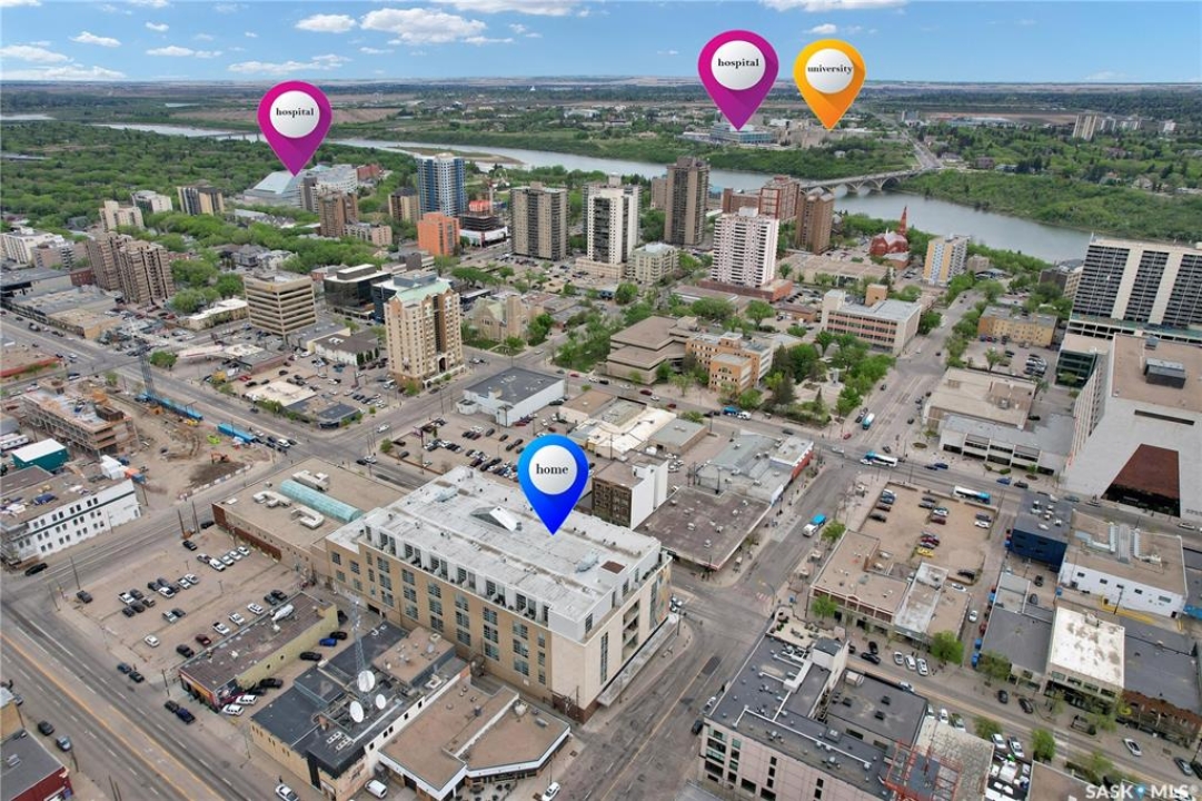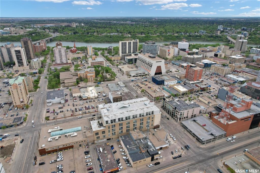 Welcome to #223–120 23rd Street East, located in the heart of downtown Saskatoon at the highly sought-after 2nd Avenue Lofts. This exceptional residence offers a truly distinctive urban living experience, blending industrial character with modern comfort. Polished concrete floors, exposed concrete beams, and an impressive 14-foot-tall by 9.5-foot-wide window create a striking sense of openness while flooding the space with natural light. The sleek matte-black kitchen is both stylish and functional, featuring an extensive bank of cabinetry, stainless steel appliances, and a substantial quartz island—ideal for both everyday living and entertaining. When you're not hosting at home, you'll appreciate being just steps from some of Saskatoon's best restaurants, cafés, Remai Modern Art Gallery, The Persephone Theatre and The Meewasin Valley River Trails. The spacious entry area provides an ideal work-from-home setup, while an additional constructed bedroom offers flexibility as a guest room, private office, or treatment space, complete with a conveniently located powder room. Upstairs, the generous primary bedroom overlooks the main living area, enhancing the loft-style ambiance. The four-piece bathroom has been tastefully renovated, and the unit includes all appliances as well as in-suite laundry for everyday convenience. One parking stall is included in the secure, heated underground parkade, which also provides dedicated bike storage. Condo fees include heat, water, and electricity. Residents enjoy an impressive array of amenities, including four dedicated rooms for fitness, cardio, ping pong, and a library or meeting space, along with an on-site building manager and 24-hour video security throughout common areas and exterior spaces. The rooftop patio, accessible from the third floor, is an ideal setting to barbecue, relax, and enjoy city views. Pets are permitted for owner-occupants with board approval, making this an exciting opportunity for downtown living.