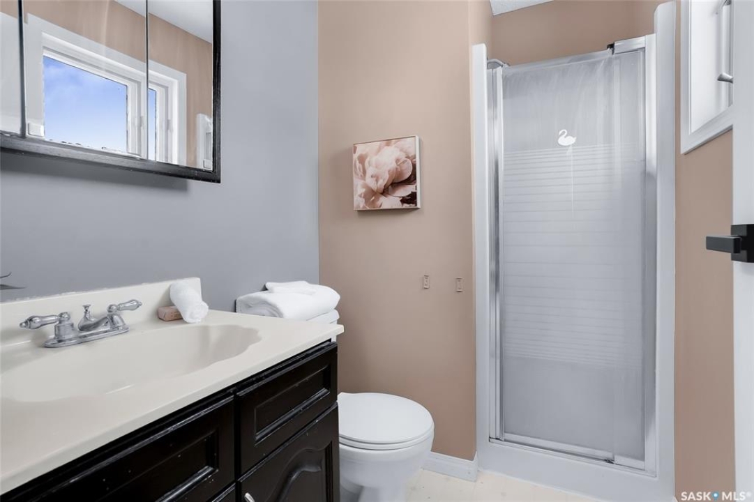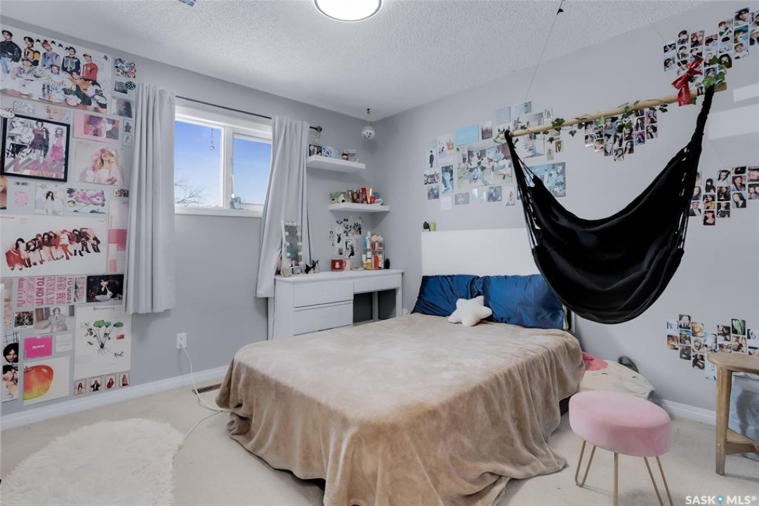 Tucked away in the RM of Rosthern on 1.58 acres, this private country property is surrounded by mature trees, wide open prairie views, and the kind of peaceful setting families love. It offers the perfect amount of space to enjoy acreage living without the heavy maintenance, with plenty of room for toys, outdoor fun, and summer days by the above ground pool. The home was built in 1996 and has seen some updates including newer paint and luxury vinyl plank flooring through the main living area. Upstairs you'll find three bedrooms, including a primary bedroom with a 3 piece ensuite, along with a full 4 piece main bath and convenient main floor laundry. The basement includes two additional bedrooms, one currently used as storage and not fully finished, with no egress windows. A 26x28 insulated detached garage adds great extra space, and the property is equipped with natural gas heat, central air conditioning, central vac, well water with an owned softener, municipal water available at the road, and a septic mound system. A quiet, comfortable acreage with privacy, nature, and those beautiful prairie country views.