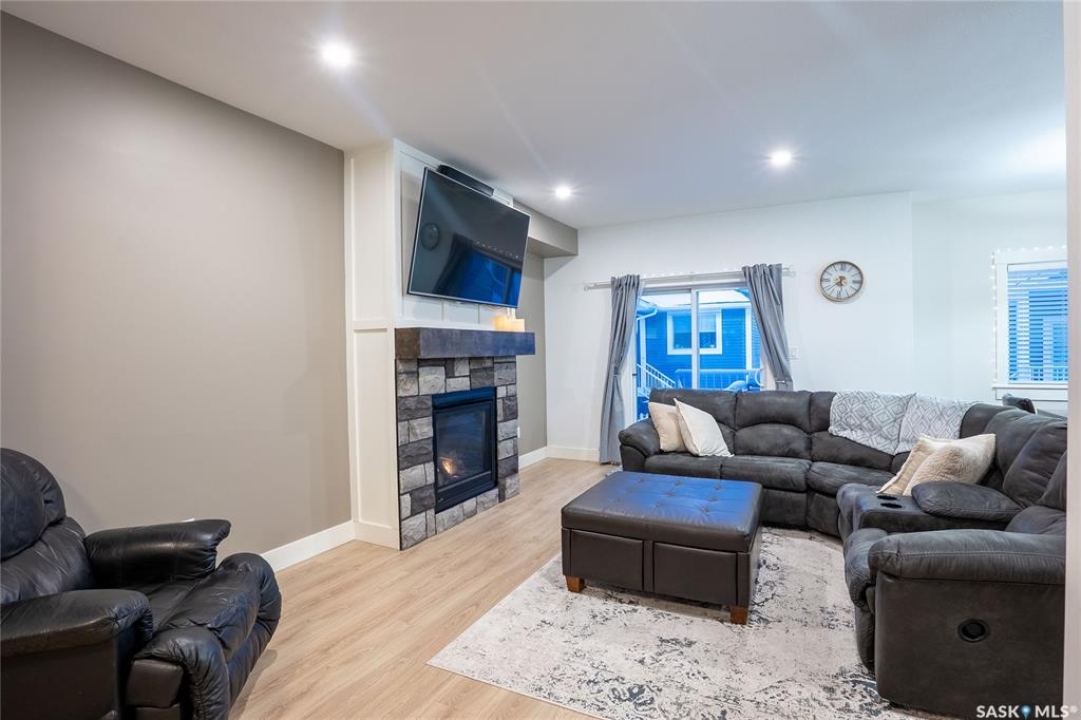 Welcome to 96-900 St. Andrews Lane, a beautifully maintained family home ideally located close to schools, Legends Sports Centre, shopping, walking trails, and other everyday amenities. Built in 2021, this property shows like new and offers modern design with thoughtful upgrades throughout. The main floor features a bright, open-concept layout with 9' ceilings and an abundance of natural light. The stylish kitchen is sure to impress with soft-close cabinetry, quartz countertops, a tiled backsplash, pantry, and upgraded high-end stove and dishwasher (appliances included). The inviting living room is centered around a stunning gas fireplace and opens through patio doors to a covered deck overlooking the fully fenced, landscaped, east-facing backyard. Upstairs, you'll find a spacious bonus room and convenient laundry area. The impressive primary bedroom boasts vaulted ceilings, a walk-in closet, and a luxurious ensuite complete with tiled shower, soaker tub, and dual sinks. Just a few steps up are two additional bedrooms and a full 4-piece bathroom. The basement is open for future development and is roughed in for a bathroom and/or wet bar. Additional highlights include a double attached garage with interior drain, insulation, drywall, and an electric heater (included), a double concrete driveway, and a finished, low-maintenance yard. TVs and TV mounts are also included. Pride of ownership is evident throughout—this home shows exceptionally well. Contact today to arrange your private viewing.