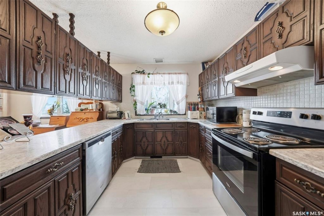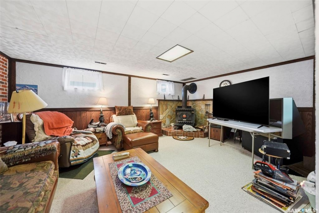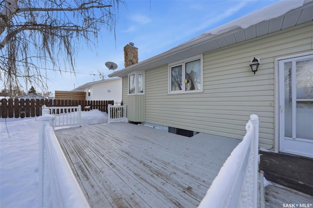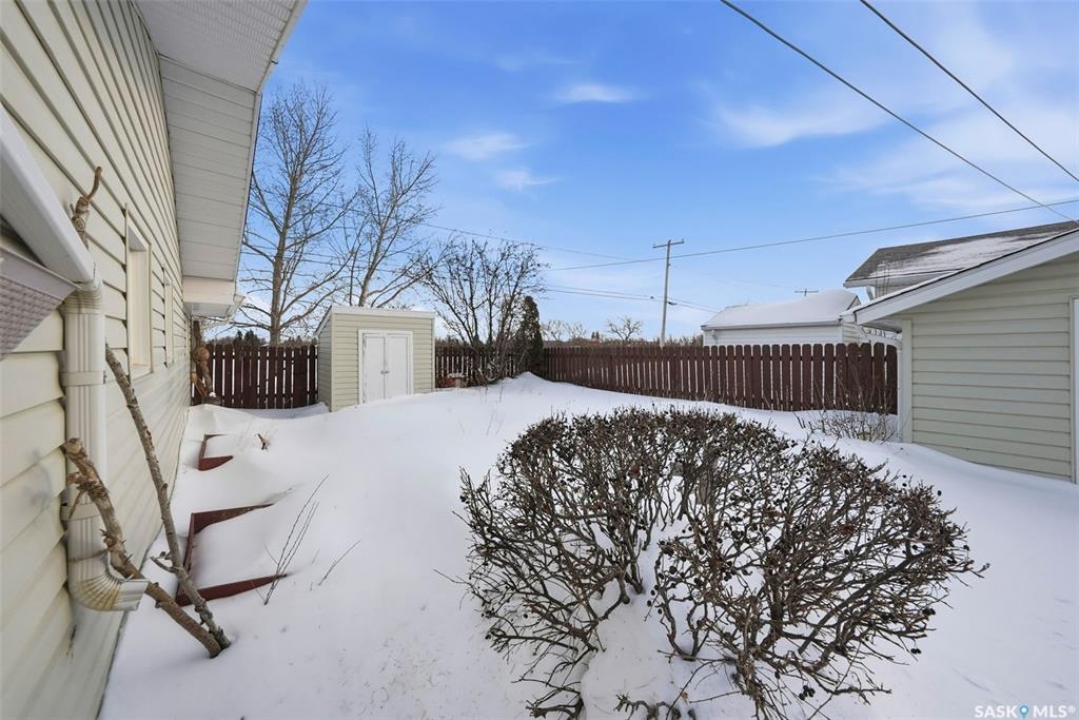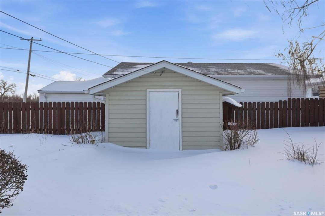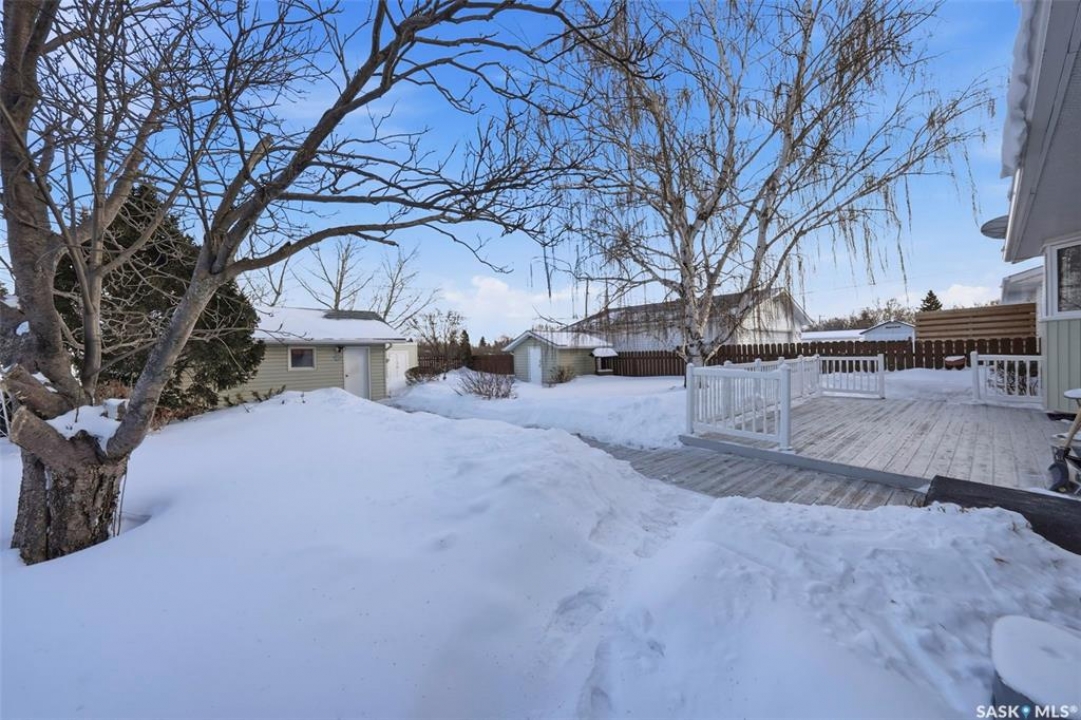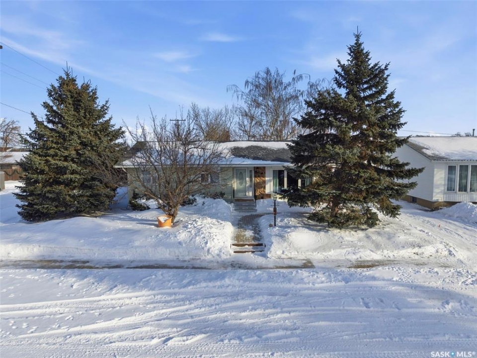 Just 35 minutes from Saskatoon, this solid bungalow in Allan gives you that small-town pace without giving up easy city access. Sitting on a corner lot and backing onto green space, the setting alone is hard to beat. The home has already had many of the big ticket items taken care of. Shingles were replaced in 2025, there's a new water heater 2025, furnace and central A/C were both updated in 2024, and newer windows. Inside, you'll notice updated countertops and vinyl plank flooring in parts of the main floor that help give the home a fresh feel. The layout is practical and comfortable, featuring main floor laundry and a back mudroom/foyer that's perfect for boots, coats, and everyday Saskatchewan living. The fully finished basement adds great extra living space with a cozy wood-burning fireplace. There's also a den downstairs that could work well as an office, hobby room, or guest space. Outside is where this property really stands out. The huge, fully fenced yard backs onto park space and is filled with mature trees, garden areas, deck, and sheds for extra storage. You'll love the double detached garage, plus an additional heated room that's ideal for a workshop or extra storage. Interlocking brick walkways connect the front and backyard and add great curb appeal. If you've been looking for a move in ready home on a large lot in Allan, this one is definitely worth a look.