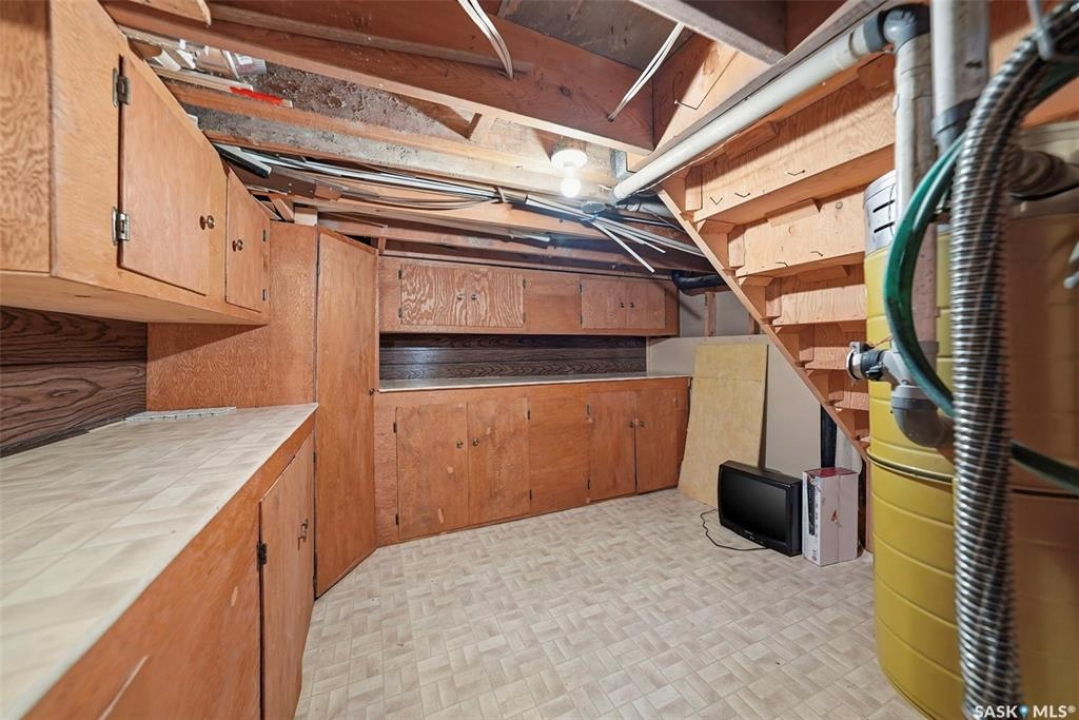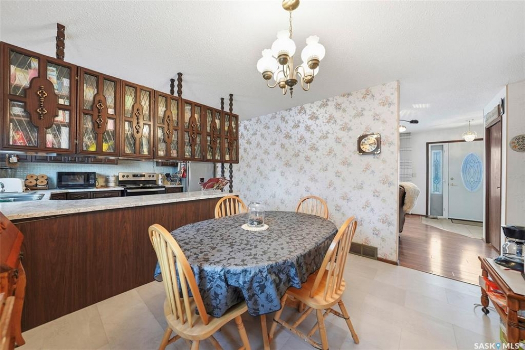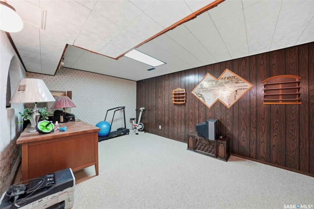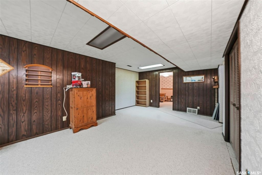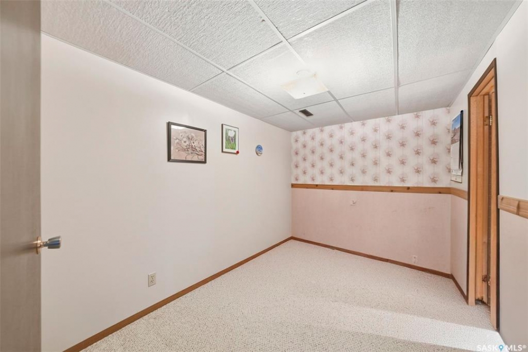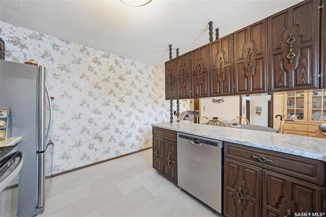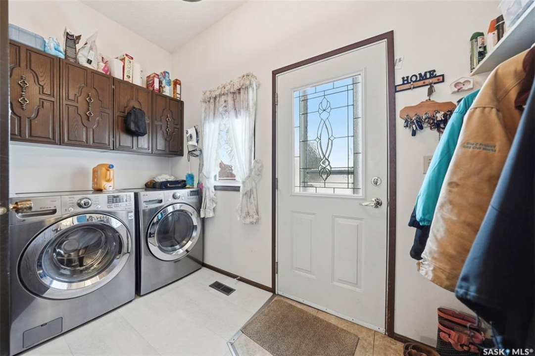 Just 35 minutes from Saskatoon, this solid bungalow in Allan gives you that small-town pace without giving up easy city access. Sitting on a corner lot and backing onto green space, the setting alone is hard to beat. The home has already had many of the big ticket items taken care of. Shingles were replaced in 2025, there's a new water heater 2025, furnace and central A/C were both updated in 2024, and newer windows. Inside, you'll notice updated countertops and vinyl plank flooring in parts of the main floor that help give the home a fresh feel. The layout is practical and comfortable, featuring main floor laundry and a back mudroom/foyer that's perfect for boots, coats, and everyday Saskatchewan living. The fully finished basement adds great extra living space with a cozy wood-burning fireplace. There's also a den downstairs that could work well as an office, hobby room, or guest space. Outside is where this property really stands out. The huge, fully fenced yard backs onto park space and is filled with mature trees, garden areas, deck, and sheds for extra storage. You'll love the double detached garage, plus an additional heated room that's ideal for a workshop or extra storage. Interlocking brick walkways connect the front and backyard and add great curb appeal. If you've been looking for a move in ready home on a large lot in Allan, this one is definitely worth a look.