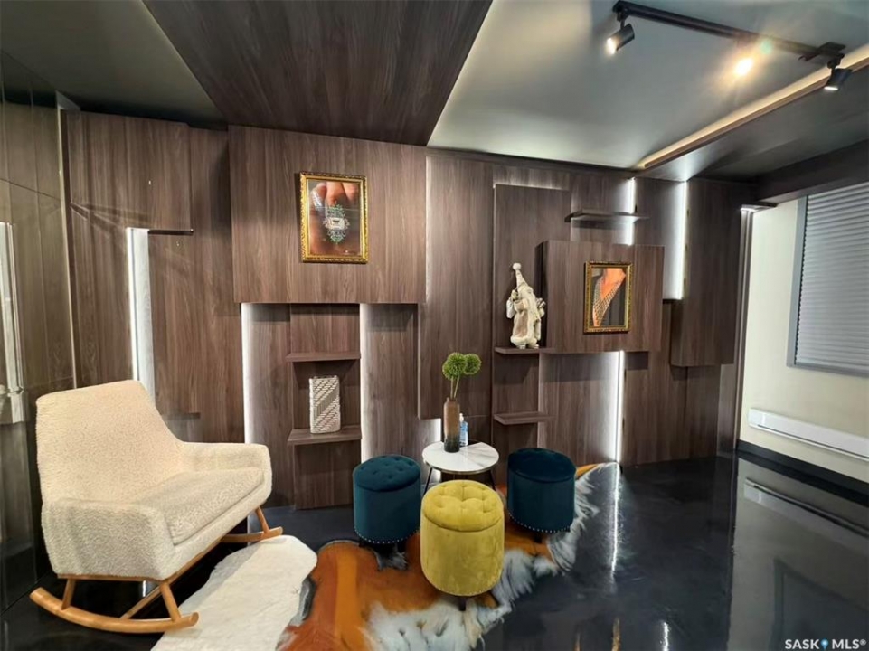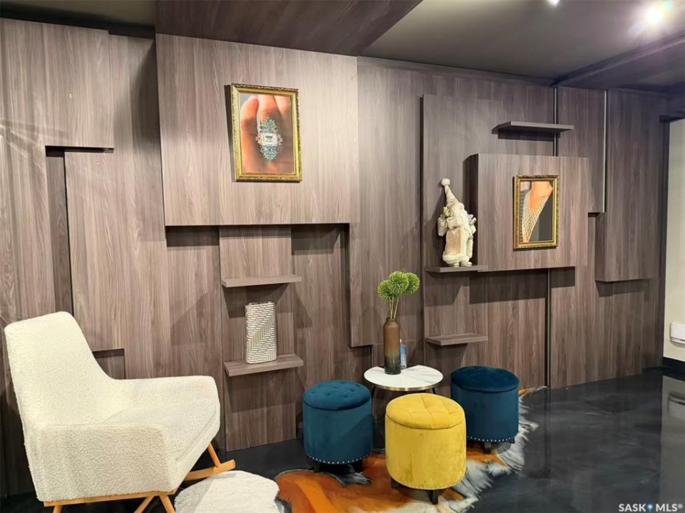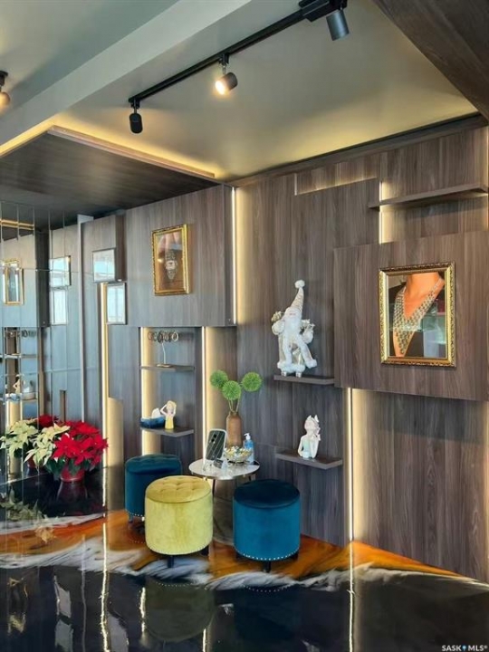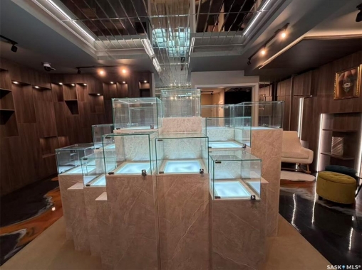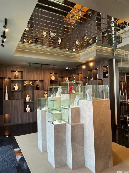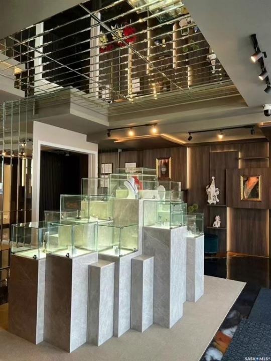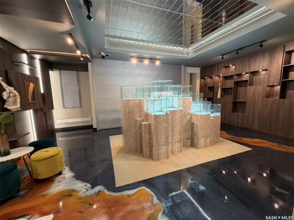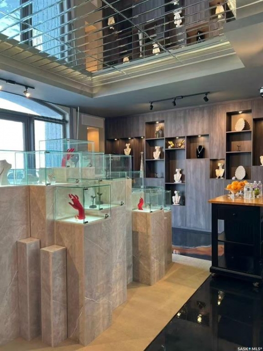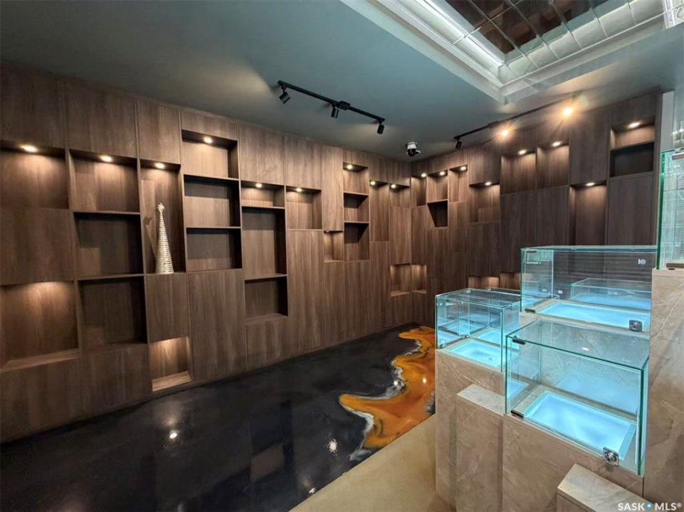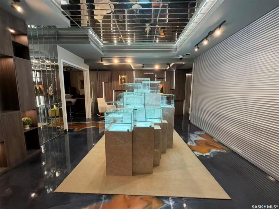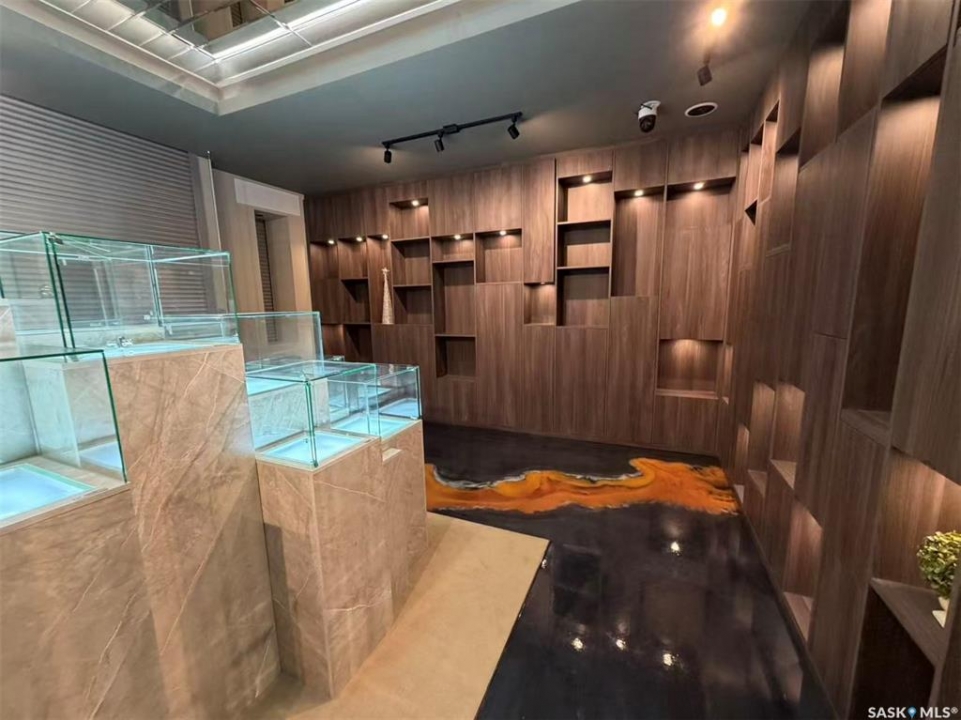 Step into luxury with this stunning, designer-finished commercial space in Dundurn! Previously a high-end jewelry boutique, this 639 sq.ft. unit offers a "turn-key" showroom experience unlike anything else on the market. The interior is a visual masterpiece, featuring extensive floor-to-ceiling custom wood millwork with integrated LED-lit display niches, perfect for showcasing premium products. The artistic metallic epoxy flooring creates a unique, fluid gallery aesthetic, complemented by a sophisticated mirrored ceiling feature and professional track lighting. Ideal for a luxury retailer, art gallery, high-end beauty studio, or a professional office seeking a prestigious atmosphere. Elevate your brand image instantly in this one-of-a-kind space!
