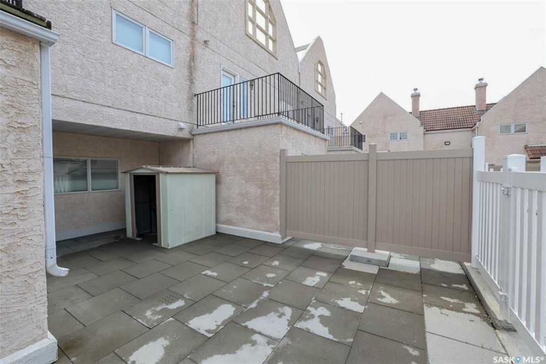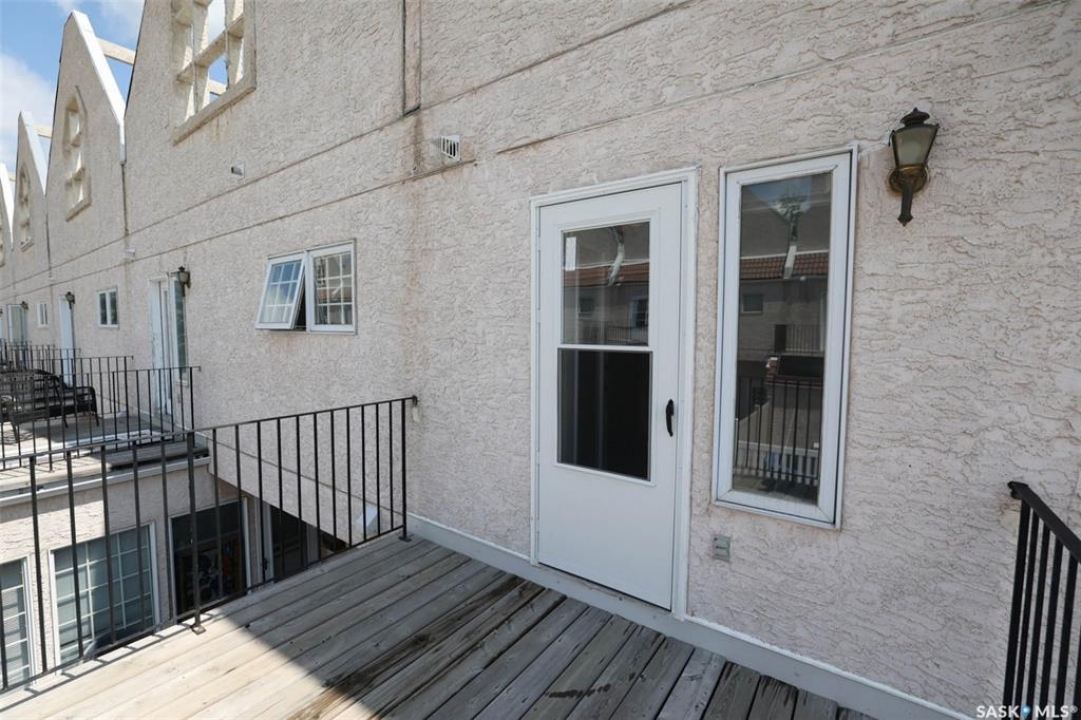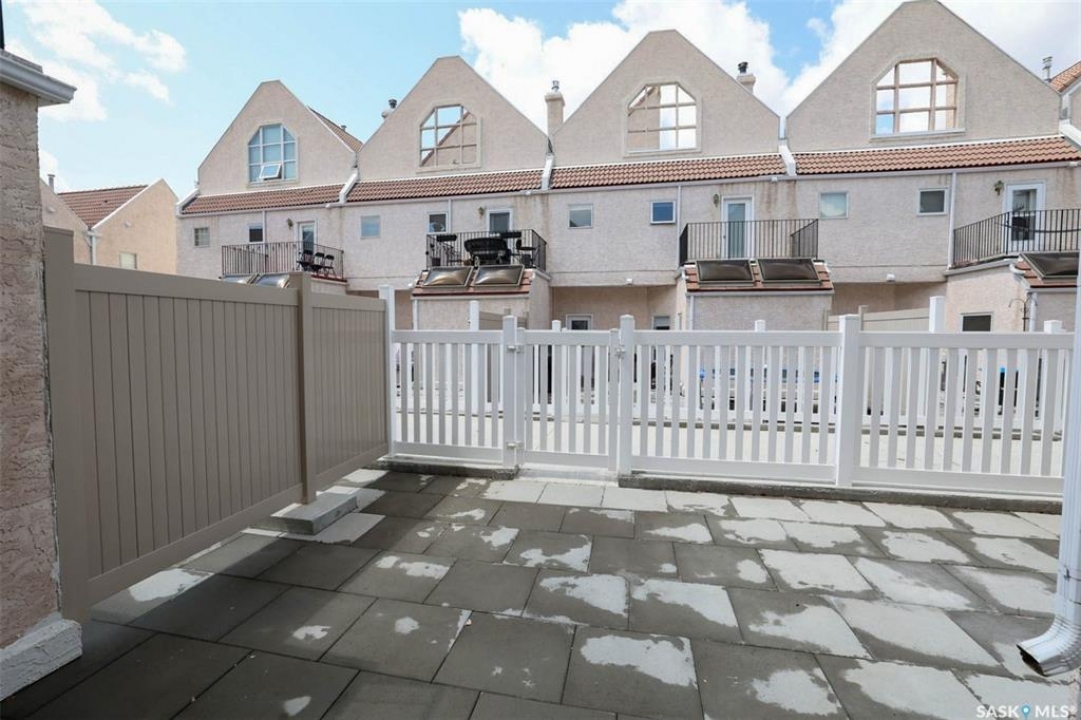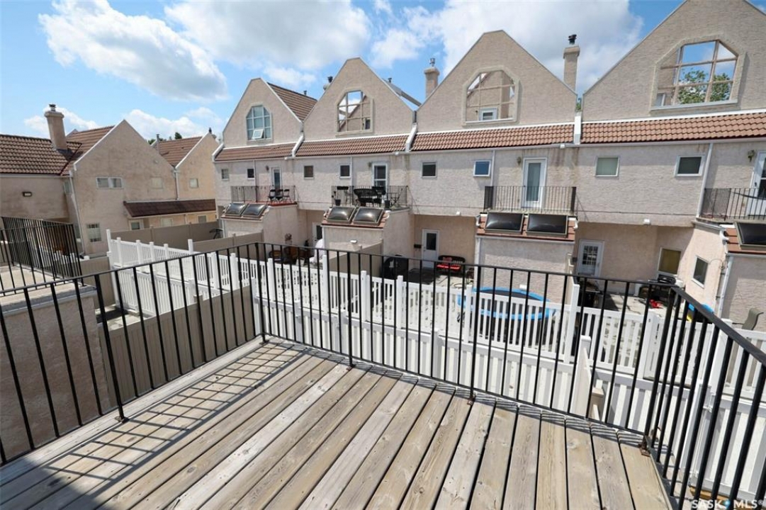 Quick Possession, Pet Friendly! Meticulously maintained 1870 sq ft condo with many recent upgrades. Gorgeous, lush landscaping greets you with raised new front decks and outdoor seating area overlooking greenspace. Like new condition the main level is perfect for entertaining, featuring an open-concept living and dining area that flows seamlessly into the functional kitchen with upgraded appliances, garburator, plenty of cabinet and counter space and built in desk. Newer luxury vinyl plank runs throughout the main living areas. Upgraded modern gas fireplace feature wall and large newer picture window flood the space with natural light and offers a view onto adjacent open area. Handy 2pc bath and very large rear multi-purpose room perfect for home office, gym area or mudroom has rear yard access to enclosed courtyard patio. Under stair storage offers additional space for larger items. New carpet leads to 2nd level featuring massive primary suite with 3pc ensuite with soaker tub, gorgeous hardwood floors and large walk-in closet. 2 additional bedrooms also with new carpet are generous in size along with an updated full bath complete the 2nd One more level up you will find the rooftop patio (with additional waterproofing added) offering even more outdoor space is waiting for your perfect potted garden, sunbathing or entertaining and dining space. Direct access to the heated underground parking garage with 2 stalls, wash bay and large storage room. Many upgrades including new Hunter Douglas blinds throughout (some on remote) new stove, luxury vinyl plank, carpet and toilets. Complex has had many recent upgrades and ideally located close to schools, U of R, bike and walking paths, bus stop right out front allows easy access east side shopping, downtown and University. Perfect for an executive with also enough space for a family. Truly a pleasure to show, quick poss available. Call today!