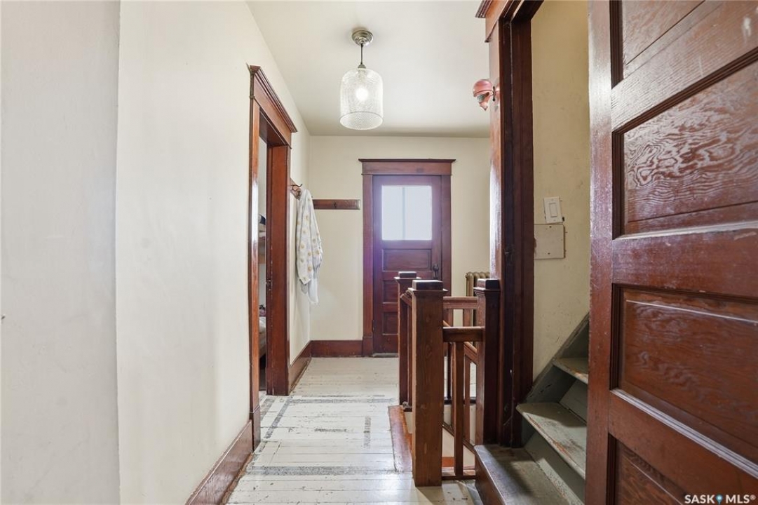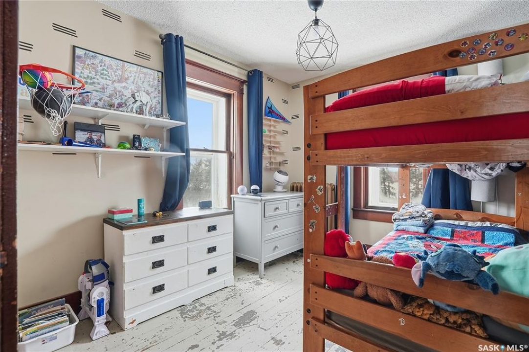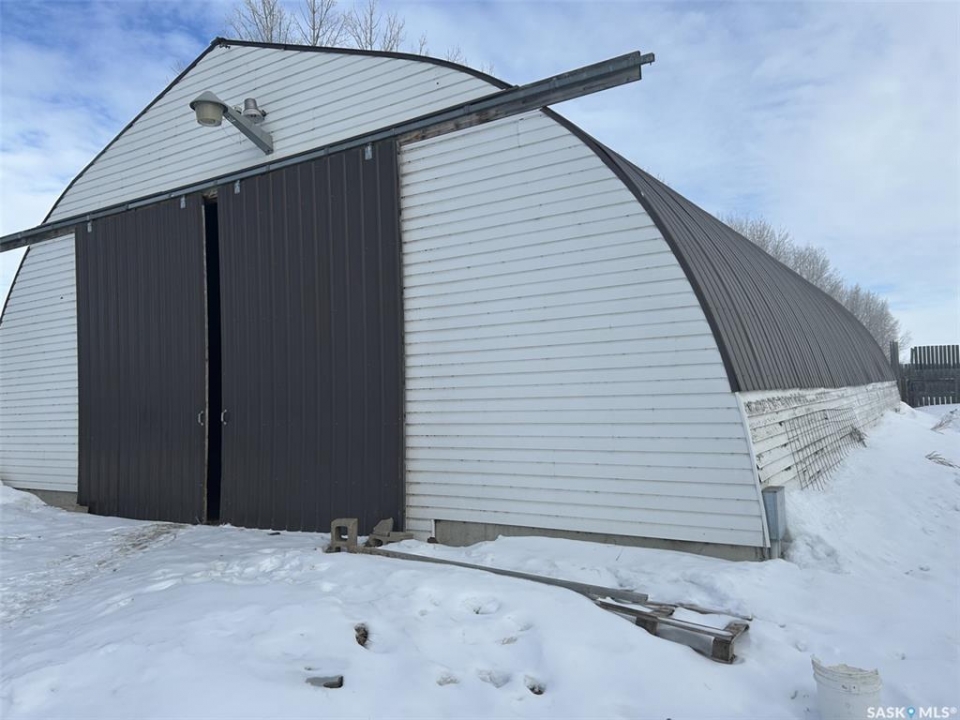 Welcome to a beautiful acreage with an original Eaton's Character Home which still maintains much of its charm! This 34.97 acre property has an abundance of character and beauty. Grass and beautiful trees make it an oasis of quiet living- yet close to valued amenities. The Eaton's Character homes were known best for their sturdy construction and beautifully designed models. They remain a significant piece of Canadian architectural heritage. This home has a family room, a large formal dining room, eat-in kitchen, 2 bathrooms, 4 bedrooms and a mudroom. The 3rd floor was updated/ completed recently to provide additional practical use- with new flooring & painting. (Great as a playroom, or additional space for family use/office or entertaining.) The basement, which is a cement foundation/full basement replaced about 12 years ago, has lots of storage space, and a separate entrance to the outside. A spacious deck is perfect for three season use, and enjoying a coffee, a glass of wine or the perfect spot to read. Shingles were replaced about 8 years ago. The pasture is fenced in. The property is set up for animals - with a Quonset, water bowls, hydrants, corrals, etc. The Quonset can be used for storage or finished for a heated shop, it has been used as loose housing for animals in winter, with corral panels, currently there is a small insulated workshop in it. The quonset is 40' x 60', has a metal clad roofing, no maintainance. There is power to the quonset. Could be kept as a barn, insulated for a shop, or used as cold storage. There are sliding doors at one end and an overhead door on the other end. Shingles on the house replaced about 8 years. ago This property is located at the end of 1st St W- with walking distance to town. (Hepburn) Hepburn has a K-12 School in the Prairie Spirit School Division, along with stores, churches & close proximity to other towns along highway 12, as well as just a short jaunt to Saskatoon on well maintained Hwy#12.