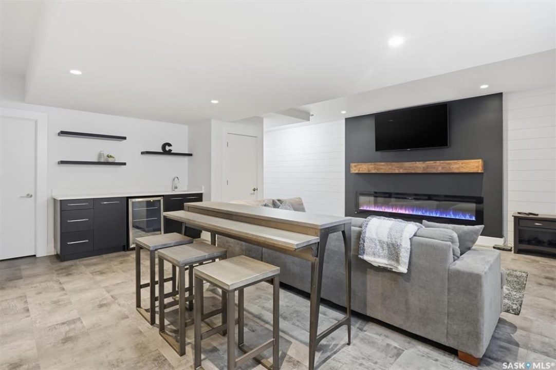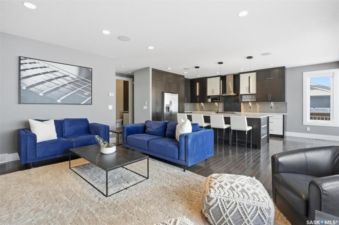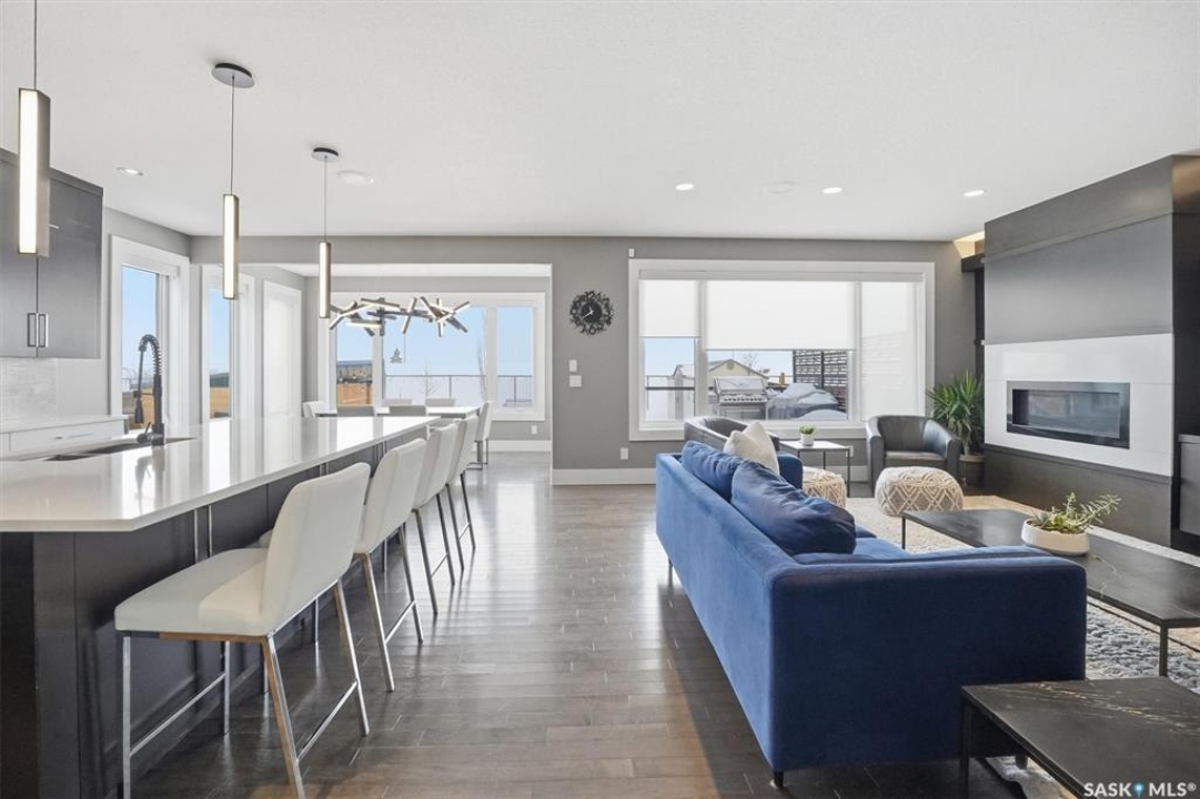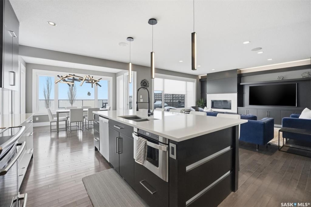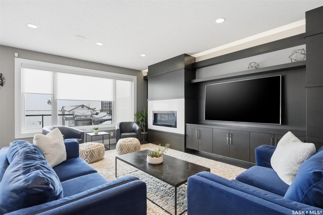 LOOK at the upgrade list on this home! Featuring a FOUR CAR heated garage, 4 bedrooms, 4 bathrooms, a fully developed basement, and backing open space, homes like this rarely come available. Located in a prime Evergreen setting, this luxurious 2 storey offers exceptional design and extensive upgrades. A vaulted entry welcomes you into the main level, which features hardwood floors and a spacious great room. The showpiece kitchen is designed for entertaining with SO MANY full height custom cabinets and several pantries, a massive island, quartz countertops, stainless appliances, deluxe lighting package, and a tile backsplash. The kitchen flows into a large dining area highlighted by an exquisite light fixture; dining connects to the great room, where a gas fireplace, built-in cabinetry, and custom bulkheads create a modern lounge space. The main floor also includes a 1/2 bathroom, boot room and laundry room, and direct access to the four-car heated garage. The second level offers 3 beds and 2 baths with upgraded finishes. The primary suite features a walk-in closet and a connecting five-piece spa ensuite with extensive tile work, incredible tiled shower, freestanding tub, quartz double countertops, recessed lighting, and in-floor heat. 2 bedrooms share a Jack and Jill family bath. The fully developed basement provides additional modern living space with a family room featuring built-in speakers and a dramatic linear fireplace, a wet bar with quartz countertops and floating shelves, an entertainment lounge, 4th bedroom, and a 3pc bath with a custom steam shower. Notable upgrades include built-in Celebright soffit Christmas lighting, Hunter Douglas electric blinds, wiring for security cameras, solid core interior doors, sound system, custom closets, central air, central vac, hot water on demand, water softener, u/g sprinklers, gas bbq hookup, newer fridge, and recently replaced mechanical. Outdoor living is enhanced by a pergola, patio, and composite deck.