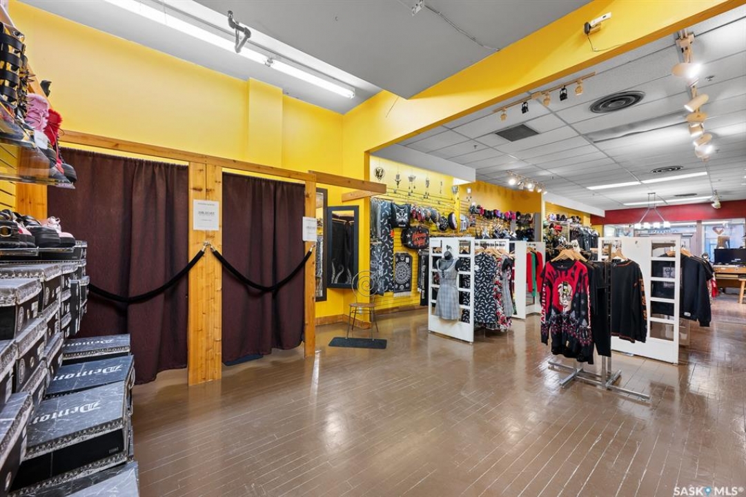 Rare opportunity for purchase. 1,250 sq. ft. retail space currently used as women's fashion boutique store. Prime location and ideal for all general retail use. Features a bright showroom, cash counter, fitting room, washroom, and a full basement for storage. Located in the heated Scarth Street Pedway with 24/7 security by Harvard Development. Enjoy being downtown Regina and benefit from high foot traffic and nearby amenities. This property is an excellent home for your business venture. Current existing inventory and business can be for purchase as well.