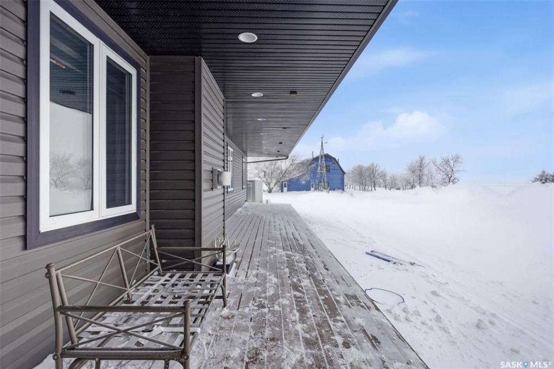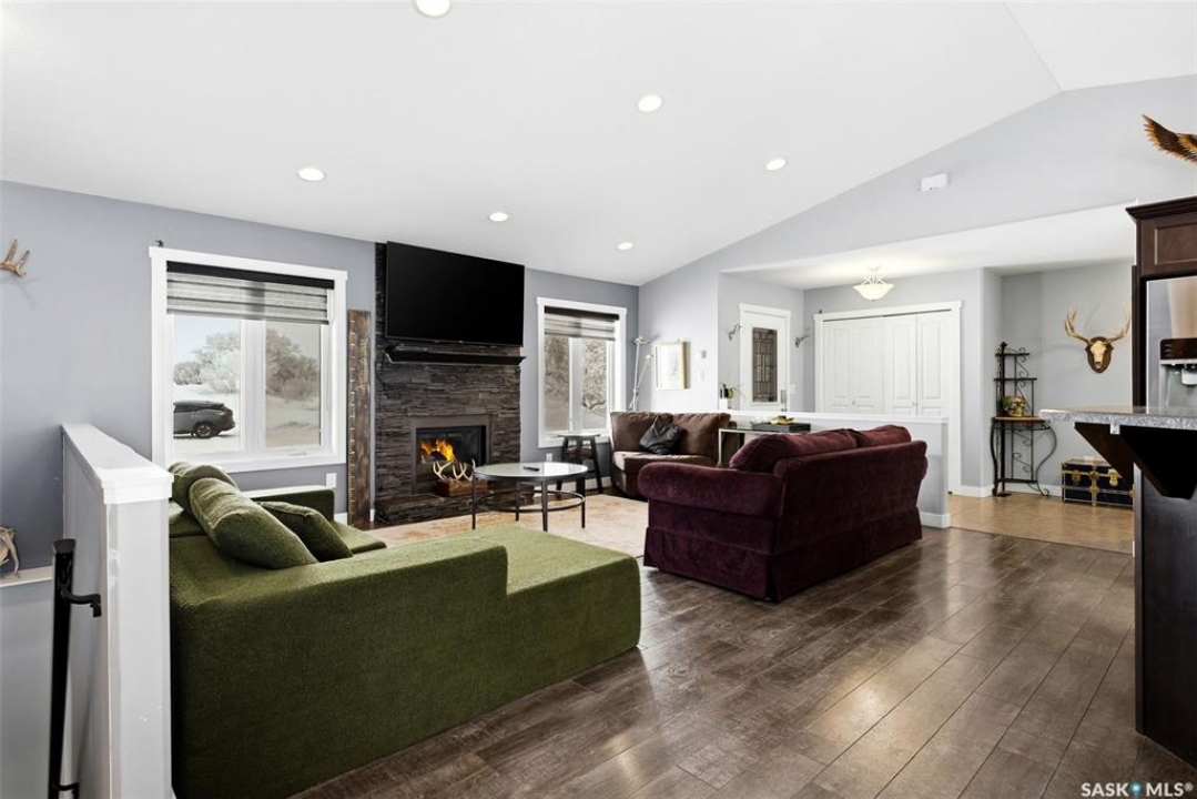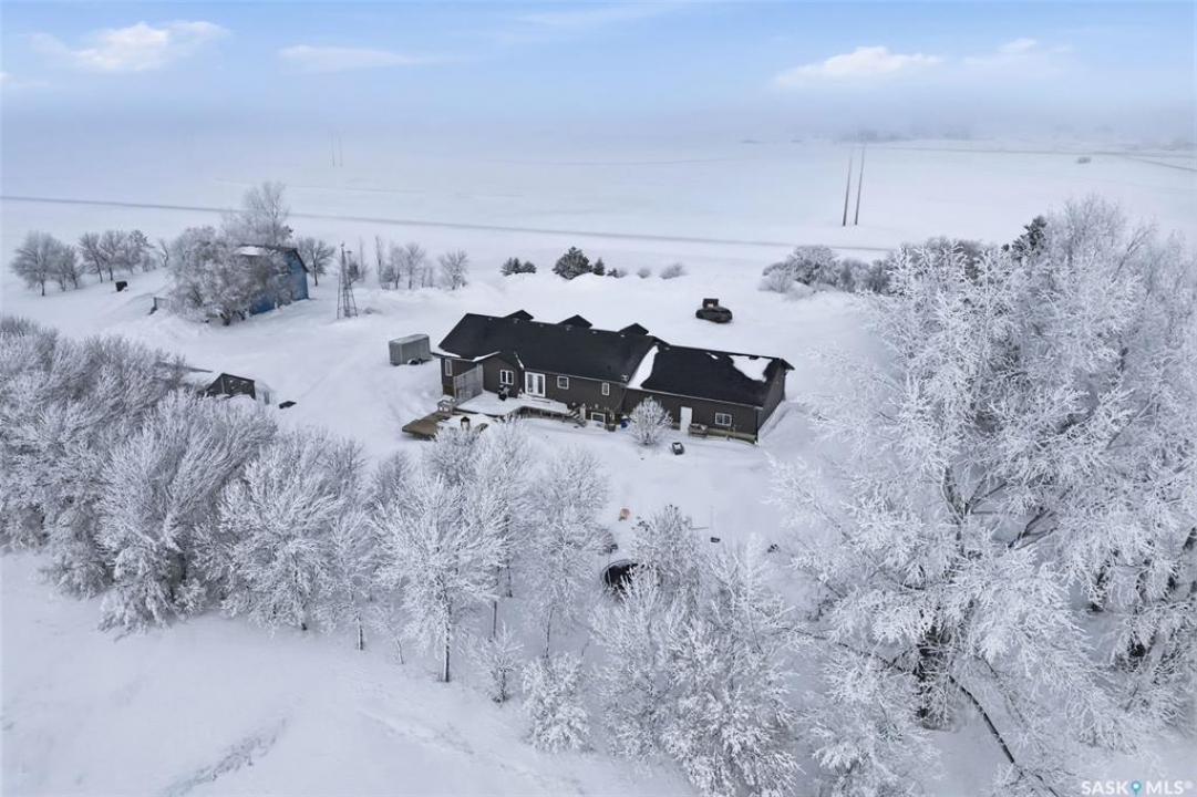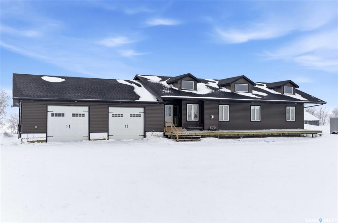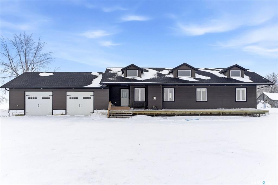 Enjoy effortless living in this impressive, generously proportioned bungalow set on 9.98 picturesque acres. Offering 1,650 sq. ft. of main-floor living space, this home features three spacious bedrooms, convenient main-floor laundry with a 2-piece bath, a large 4-piece main bathroom, and a luxurious 5-piece ensuite off the primary bedroom complete with a soaker jet tub and a beautifully tiled stand-up shower. The sleek, functional kitchen showcases laminate countertops and stainless-steel appliances, flowing seamlessly into the dining area and open-concept living room. Large windows flood the space with natural light, while laminate flooring and a natural gas fireplace add warmth and style. The home includes an attached 34' x 36' insulated and heated double garage with access from both the main level and basement, plus a generous entry closet perfect for storing coats and boots. Built on an ICF foundation, the basement boasts 9-foot ceilings and is partially finished, offering a large recreation room, an additional bedroom, a partially completed 3-piece bathroom, an office/den plus multiple storage rooms. The utility room is well-equipped with 200-amp service, a backup septic alarm, reverse osmosis system, air exchanger, and all well and water equipment. Outdoor living is just as impressive, with expansive deck areas at both the front and back of the home. Adding to the property's uniqueness is a barn converted into a heated bar/man cave, featuring two wood-burning fireplaces—an ideal retreat for family gatherings or special events. This exceptional acreage truly must be seen to be fully appreciated. Contact your favorite agent today to schedule your private viewing.