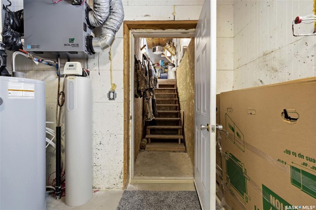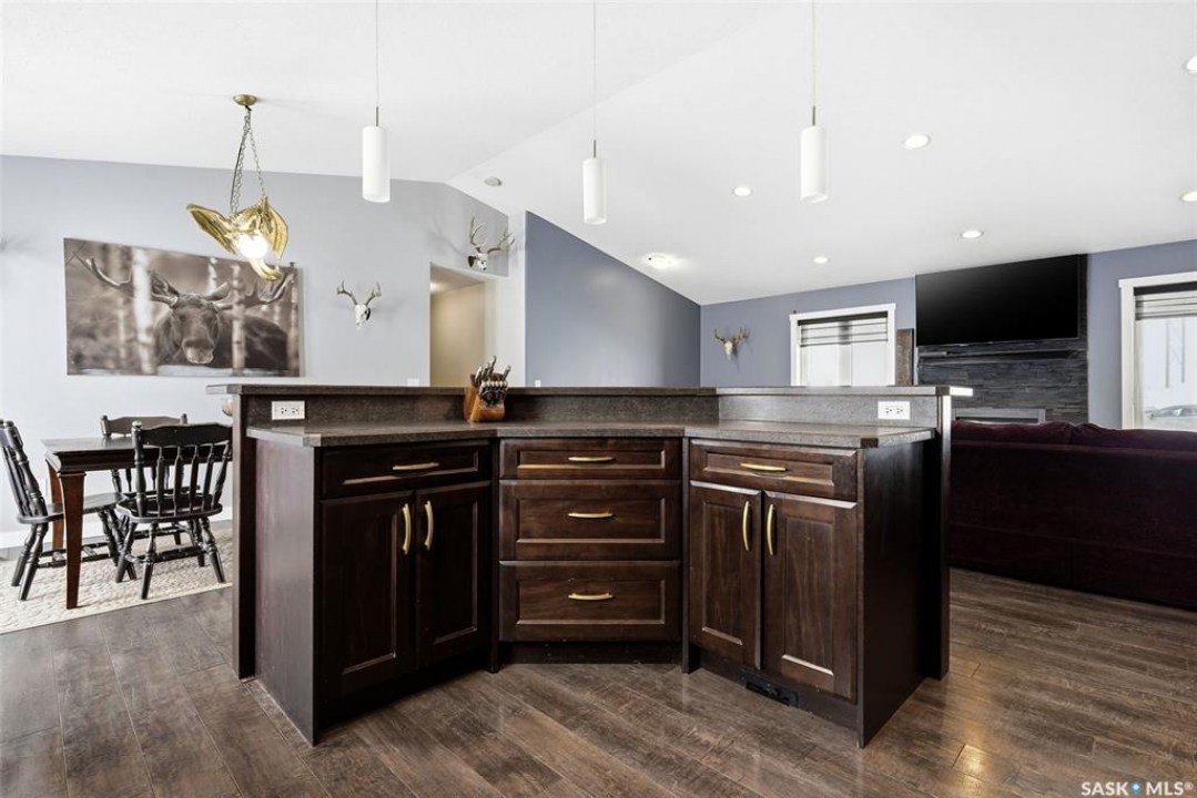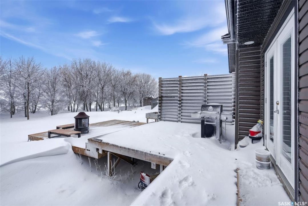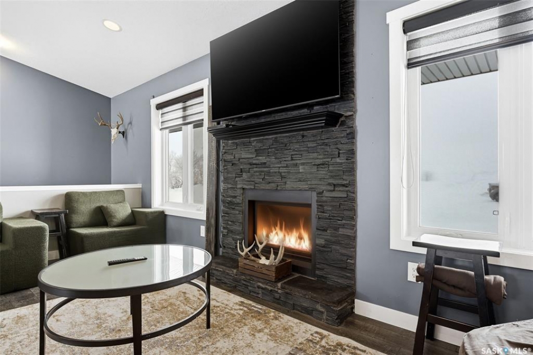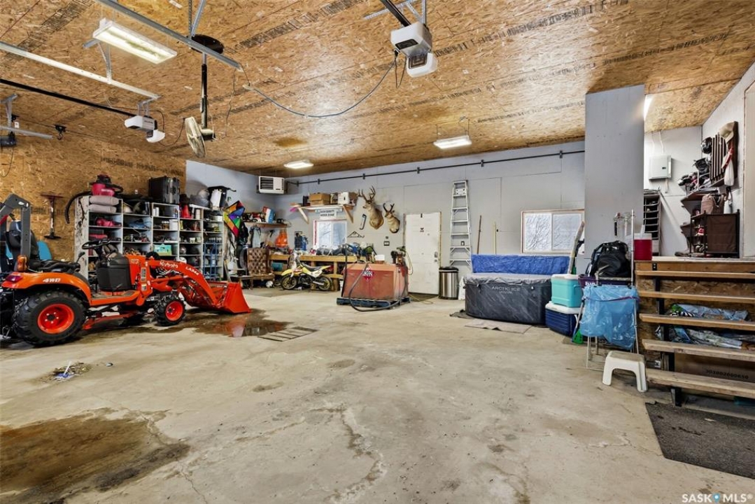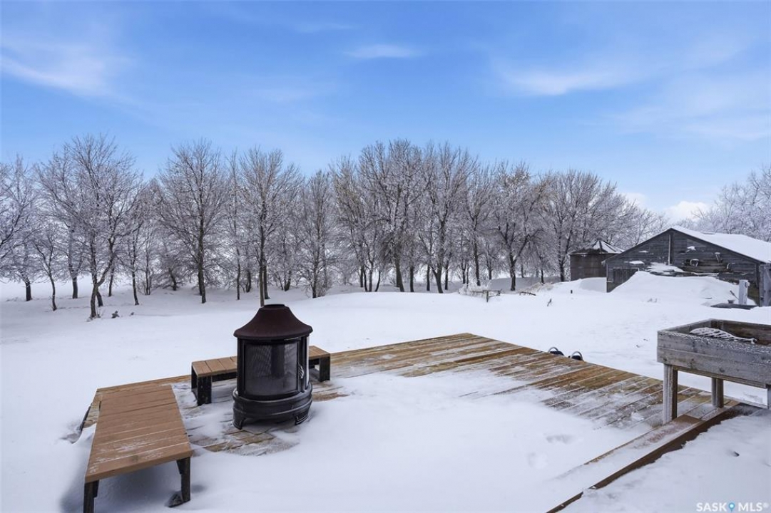 Enjoy effortless living in this impressive, generously proportioned bungalow set on 9.98 picturesque acres. Offering 1,650 sq. ft. of main-floor living space, this home features three spacious bedrooms, convenient main-floor laundry with a 2-piece bath, a large 4-piece main bathroom, and a luxurious 5-piece ensuite off the primary bedroom complete with a soaker jet tub and a beautifully tiled stand-up shower. The sleek, functional kitchen showcases laminate countertops and stainless-steel appliances, flowing seamlessly into the dining area and open-concept living room. Large windows flood the space with natural light, while laminate flooring and a natural gas fireplace add warmth and style. The home includes an attached 34' x 36' insulated and heated double garage with access from both the main level and basement, plus a generous entry closet perfect for storing coats and boots. Built on an ICF foundation, the basement boasts 9-foot ceilings and is partially finished, offering a large recreation room, an additional bedroom, a partially completed 3-piece bathroom, an office/den plus multiple storage rooms. The utility room is well-equipped with 200-amp service, a backup septic alarm, reverse osmosis system, air exchanger, and all well and water equipment. Outdoor living is just as impressive, with expansive deck areas at both the front and back of the home. Adding to the property's uniqueness is a barn converted into a heated bar/man cave, featuring two wood-burning fireplaces—an ideal retreat for family gatherings or special events. This exceptional acreage truly must be seen to be fully appreciated. Contact your favorite agent today to schedule your private viewing.