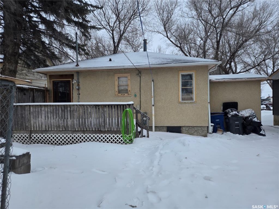 Welcome to 719 Main Street in Kipling, SK. This charming home offers 620 sq. ft. on the main level, featuring a porch/laundry room, kitchen, combined dining and living room, 3-piece bathroom, and a bedroom. The basement includes another bedroom, a bonus room, 2-piece bathroom, utility room, and storage space. Out back, you'll find a detached single garage and a deck perfect for private gatherings. It's a great starter home or an ideal revenue property.