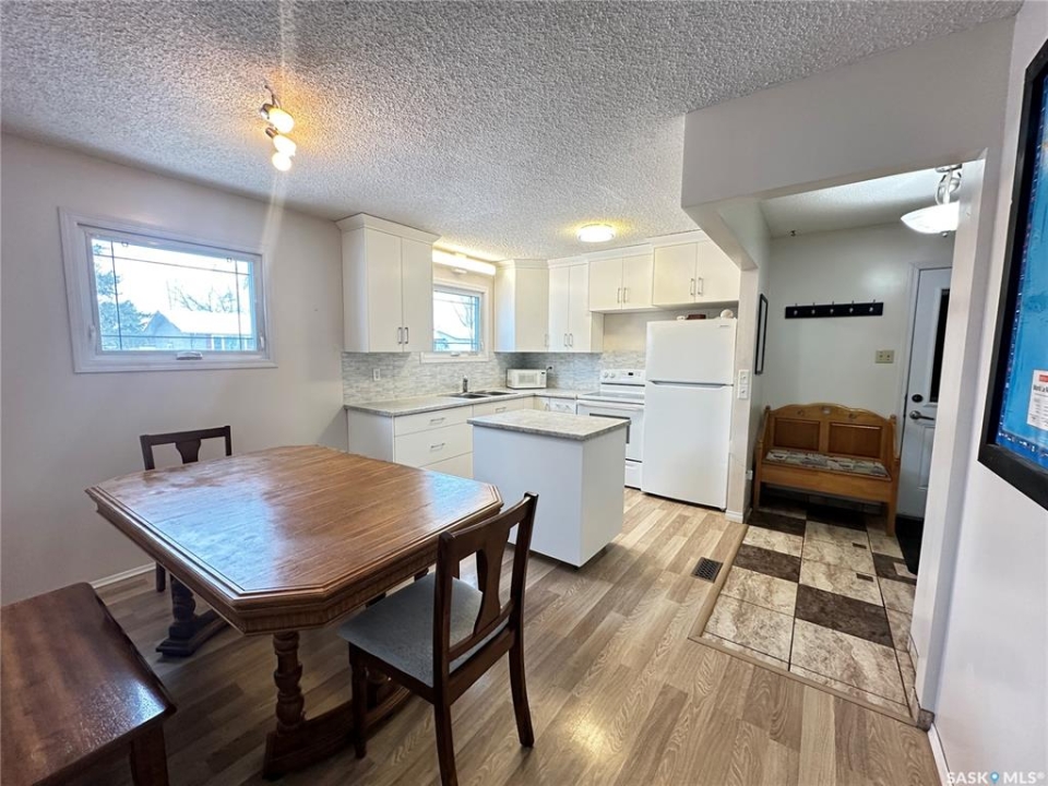 Welcome to your family sanctuary in the quiet village of Clavet. This inviting 1000 square foot. bungalow offers 3 bedrooms, 2 bathrooms, and thoughtful design throughout—perfect for comfortable, everyday living. Enjoy small-town peace without sacrificing convenience. You're just 10 minutes from Saskatoon's Costco and the new Meadows Market shopping district, with everything you need close at hand. The main floor features a well-designed kitchen with dining space and the convenience of main-level laundry. Downstairs, the fully finished basement expands your living space with a large recreation area and second kitchen—perfect for family gatherings or multi-generational households. Outside, your private retreat awaits. The mature, generously sized yard includes a beautiful interlocking brick patio, relaxing hot tub, and underground sprinkler system that keeps maintenance simple. Multiple storage sheds and plenty of parking, meaning that there is room for just about everything. Quality upgrades include central air, central vacuum, recently installed triple-glazed windows for energy savings, city water and sewer, plus a single attached garage with workshop space and direct entry to the home. All appliances are included. Families will appreciate Clavet's excellent K-12 school with in-town bussing, giving you small-town charm with all the modern conveniences. This move-in ready home is waiting for you—book your showing today!