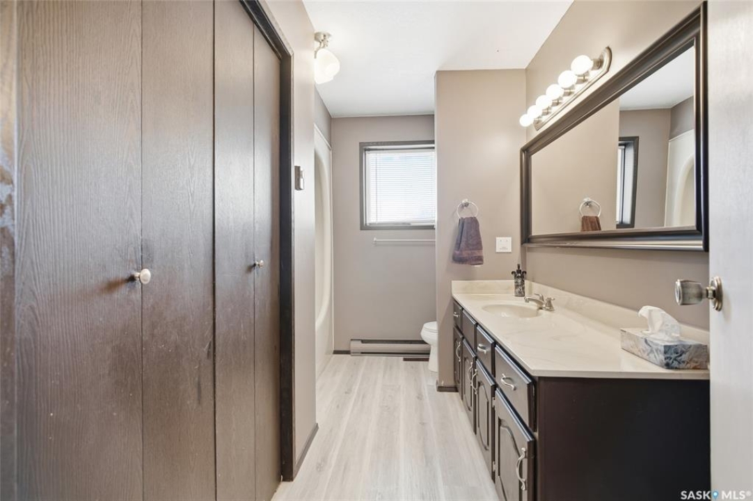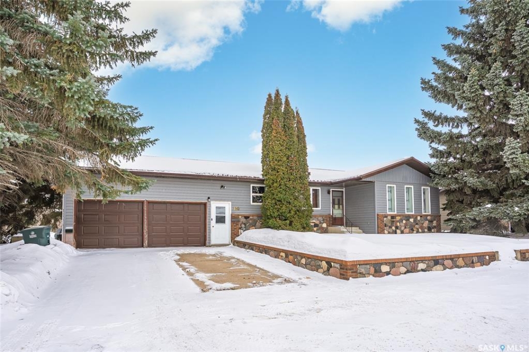 Welcome to 110 6th Street in Hague a fantastic family home on an oversized corner lot backing green space, offering privacy, space, and exceptional curb appeal. Inside, the main floor features two large bedrooms, a beautiful separate family room highlighted by expansive windows that flood the space with natural light, a separate dining area, functional kitchen, and a 4 piece bathroom. A convenient laundry/half bath is located just off the entryway. All closets throughout the home are equipped with lighting, adding both functionality and convenience. Downstairs offers a large family/games room complete with an attached kitchenette perfect for entertaining while enjoying the space, an additional bedroom, a 3-piece bathroom, and an abundant of storage, including a cold room. The massive yard is perfect for kids, pets, and entertaining, featuring a spacious deck, dedicated fire pit area, and ample green space to enjoy the outdoors year round. There is also convenient RV parking, making this property ideal for those with recreational vehicles or extra toys. The double extended garage provides plenty of room for vehicles, recreational equipment, and includes custom built-in shelving for added storage. This well designed home is perfect for a growing family, offering flexibility and space both inside and out. Don't miss your opportunity to enjoy small town living in the charming community of Hague, affordable, welcoming, tons of amenities and just a short drive to Saskatoon. Call your Realtor today for you private viewing.