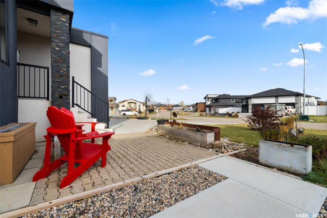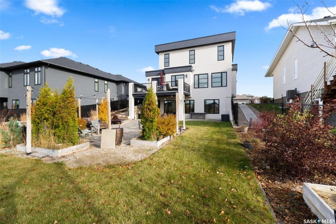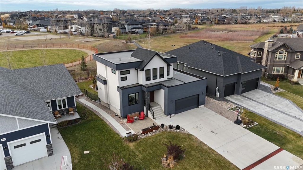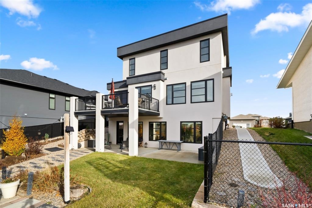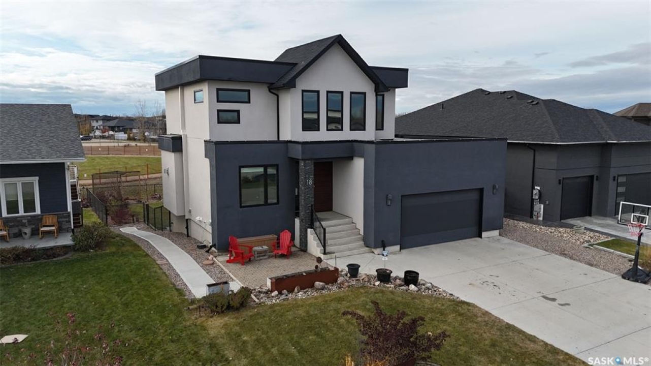 Welcome to 18 Princeton Drive, a stunning 1,840 sq. ft. Ironstone Homes built two storey walkout, proudly owned by the original owners. Ideally located in a prime area of White City, this home sits on an impressive 9,000+ sq. ft. lot backing green space and the desirable Emerald Ridge Elementary School. The southwest facing yard offers beautiful views and all day sunshine, with an upper deck and lower covered patio perfect for year round enjoyment. The main floor features 9 ft. ceilings, a bright open concept layout with a spacious living room, stylish kitchen with oversized island and pantry, and a dining area showcasing large windows overlooking the backyard. A versatile bedroom (or office), 2 pc bath, and mudroom with direct access to the 24x26 steel-beam double attached garage complete this level. Upstairs you'll find a luxurious primary suite with a walk in closet and 4 pc ensuite, two additional good sized bedrooms, a main 4 pc bath, and a convenient upper level laundry room. The walkout lower level is fully developed with a large family room featuring incredible views of the yard and green space, an additional bedroom, bathroom, and ample storage. The professionally landscaped backyard is a true retreat with trees, shrubs, and three separate patio areas for relaxing, entertaining, or stargazing around a fire. With quality finishes, modern design, and a sought after location, this beautiful family home truly has it all.