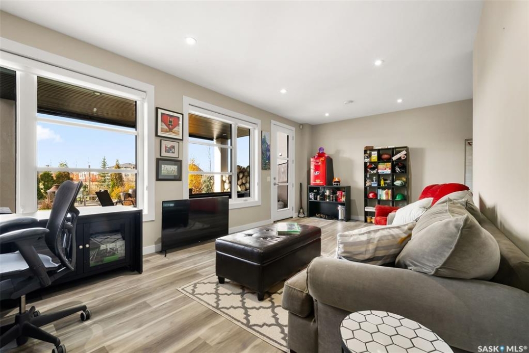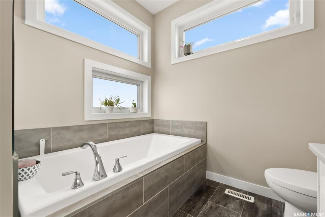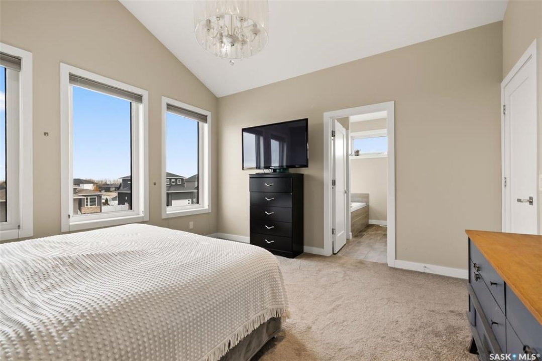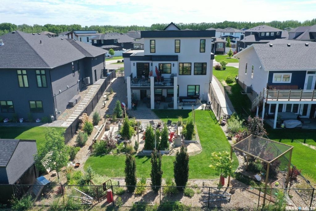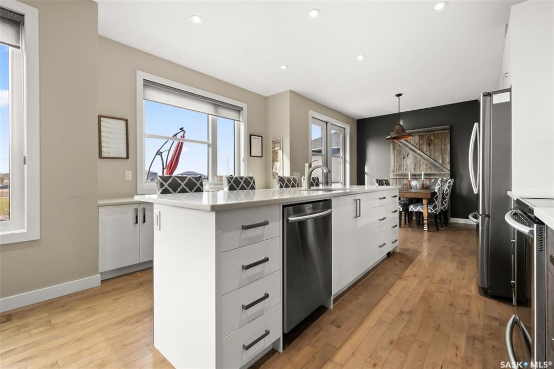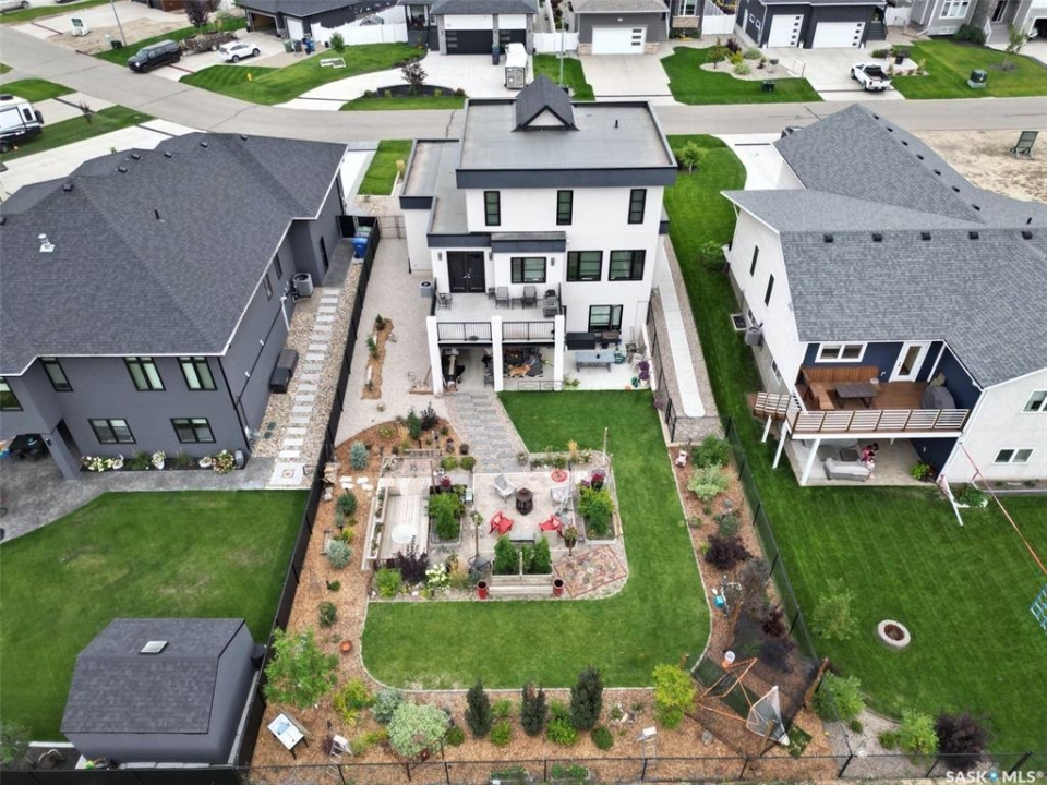 Welcome to 18 Princeton Drive, a stunning 1,840 sq. ft. Ironstone Homes built two storey walkout, proudly owned by the original owners. Ideally located in a prime area of White City, this home sits on an impressive 9,000+ sq. ft. lot backing green space and the desirable Emerald Ridge Elementary School. The southwest facing yard offers beautiful views and all day sunshine, with an upper deck and lower covered patio perfect for year round enjoyment. The main floor features 9 ft. ceilings, a bright open concept layout with a spacious living room, stylish kitchen with oversized island and pantry, and a dining area showcasing large windows overlooking the backyard. A versatile bedroom (or office), 2 pc bath, and mudroom with direct access to the 24x26 steel-beam double attached garage complete this level. Upstairs you'll find a luxurious primary suite with a walk in closet and 4 pc ensuite, two additional good sized bedrooms, a main 4 pc bath, and a convenient upper level laundry room. The walkout lower level is fully developed with a large family room featuring incredible views of the yard and green space, an additional bedroom, bathroom, and ample storage. The professionally landscaped backyard is a true retreat with trees, shrubs, and three separate patio areas for relaxing, entertaining, or stargazing around a fire. With quality finishes, modern design, and a sought after location, this beautiful family home truly has it all.