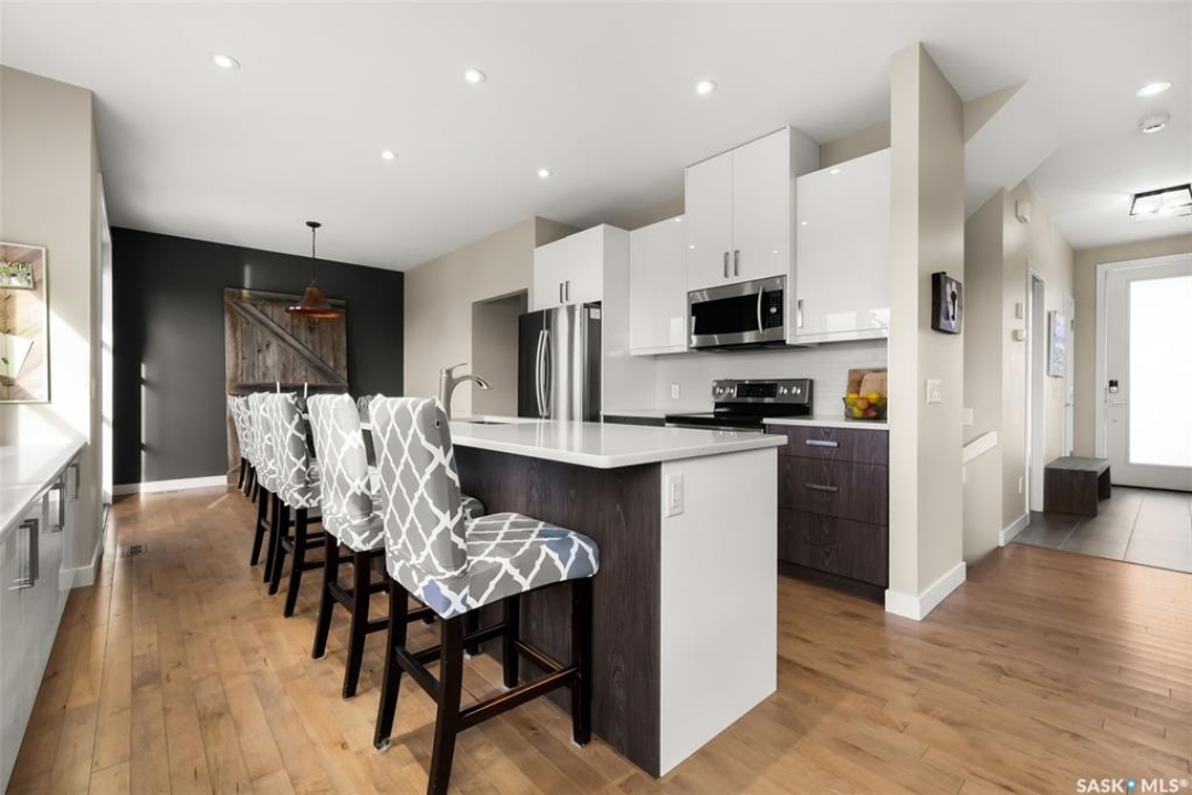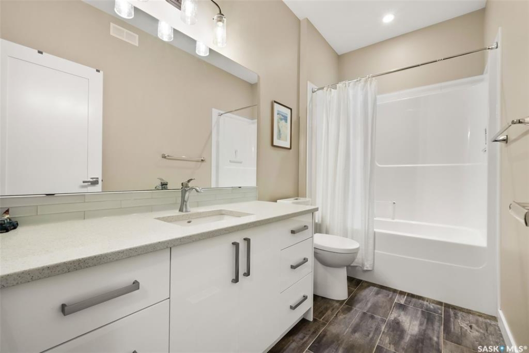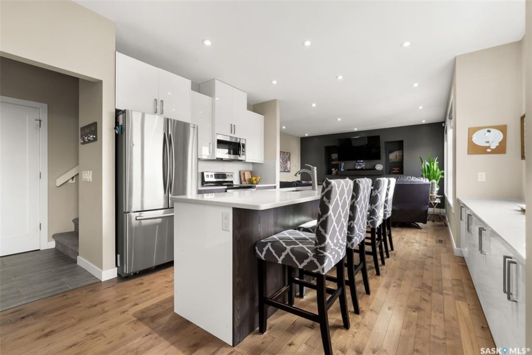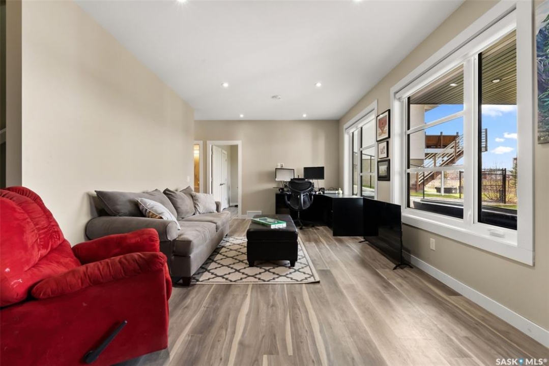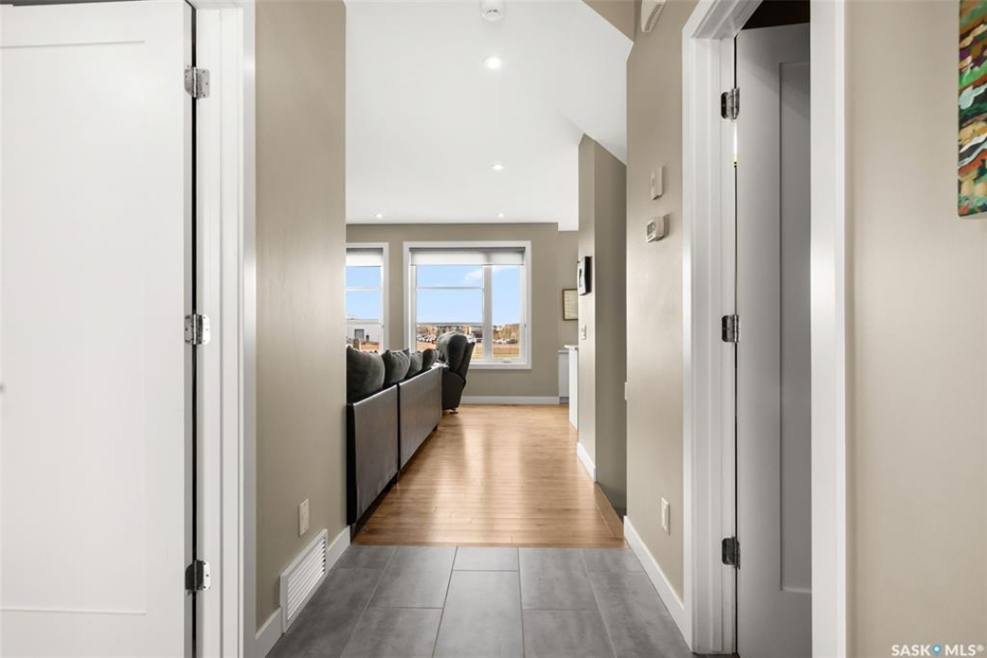 Welcome to 18 Princeton Drive, a stunning 1,840 sq. ft. Ironstone Homes built two storey walkout, proudly owned by the original owners. Ideally located in a prime area of White City, this home sits on an impressive 9,000+ sq. ft. lot backing green space and the desirable Emerald Ridge Elementary School. The southwest facing yard offers beautiful views and all day sunshine, with an upper deck and lower covered patio perfect for year round enjoyment. The main floor features 9 ft. ceilings, a bright open concept layout with a spacious living room, stylish kitchen with oversized island and pantry, and a dining area showcasing large windows overlooking the backyard. A versatile bedroom (or office), 2 pc bath, and mudroom with direct access to the 24x26 steel-beam double attached garage complete this level. Upstairs you'll find a luxurious primary suite with a walk in closet and 4 pc ensuite, two additional good sized bedrooms, a main 4 pc bath, and a convenient upper level laundry room. The walkout lower level is fully developed with a large family room featuring incredible views of the yard and green space, an additional bedroom, bathroom, and ample storage. The professionally landscaped backyard is a true retreat with trees, shrubs, and three separate patio areas for relaxing, entertaining, or stargazing around a fire. With quality finishes, modern design, and a sought after location, this beautiful family home truly has it all.