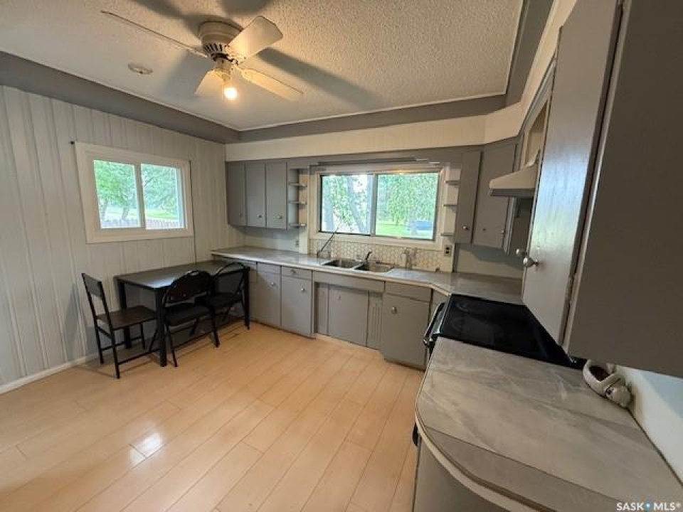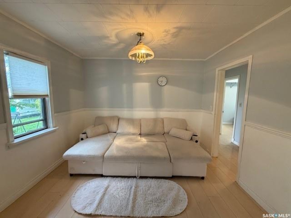 Welcome to this charming 760 SF bungalow located in a desirable, family-friendly neighborhood. It is perfect for first-time buyers or downsizers seeking comfort and potential. The bright and airy main floor features a spacious open concept living and dining area with natural light from large windows. The kitchen boasts a ceiling fan, updated countertops and backsplash, and comes fully equipped with all appliances. Two cozy bedrooms and a 4-piece bathroom with new flooring complete the main level. Downstairs, the unfinished basement offers a laundry room with washer and dryer included and ample space for a future rec room, office, and second bathroom, ready for your personal touch. Enjoy peace of mind with a brand-new hot water tank and gas forced air furnace. Outside, the partially fenced yard provides room to relax or garden. This home comes with potential and opportunity at an affordable price. Don't miss your chance to make it yours!