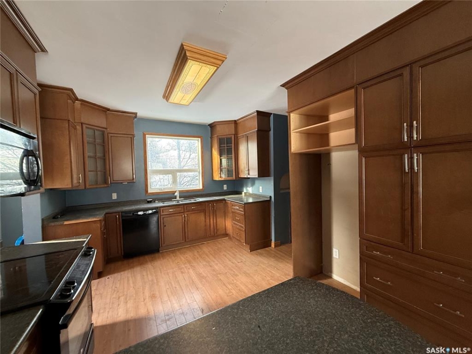 304 3rd Ave SW, Eston. Large 2080 square foot 2-storey home built in 1951. Situated on a corner lot that is approximately 9375 square feet. Entering through the back door, you will see the large open concept kitchen and dining space. The other side of the home offers a large living space (12x27), a sun room and a convenient 2 piece powder room. The 2nd level up, you will find 3 bedrooms, a storage room and a 4-piece bath. The basement houses the utilities and laundry, and is otherwise open for development. Other features to this home include a attached 1 car garage, large lot and back deck. Call today to arrange a viewing!