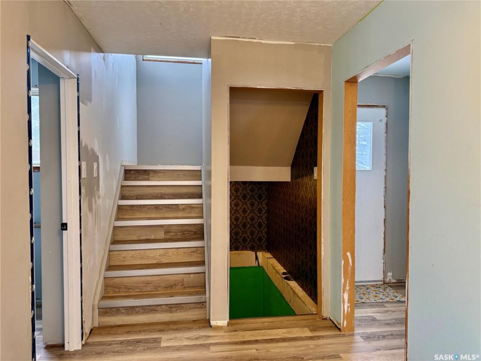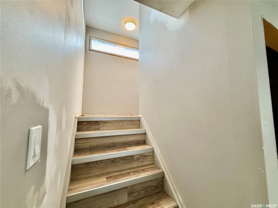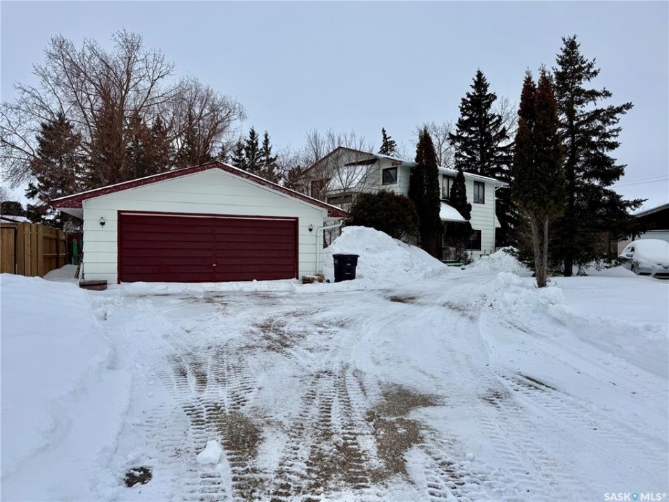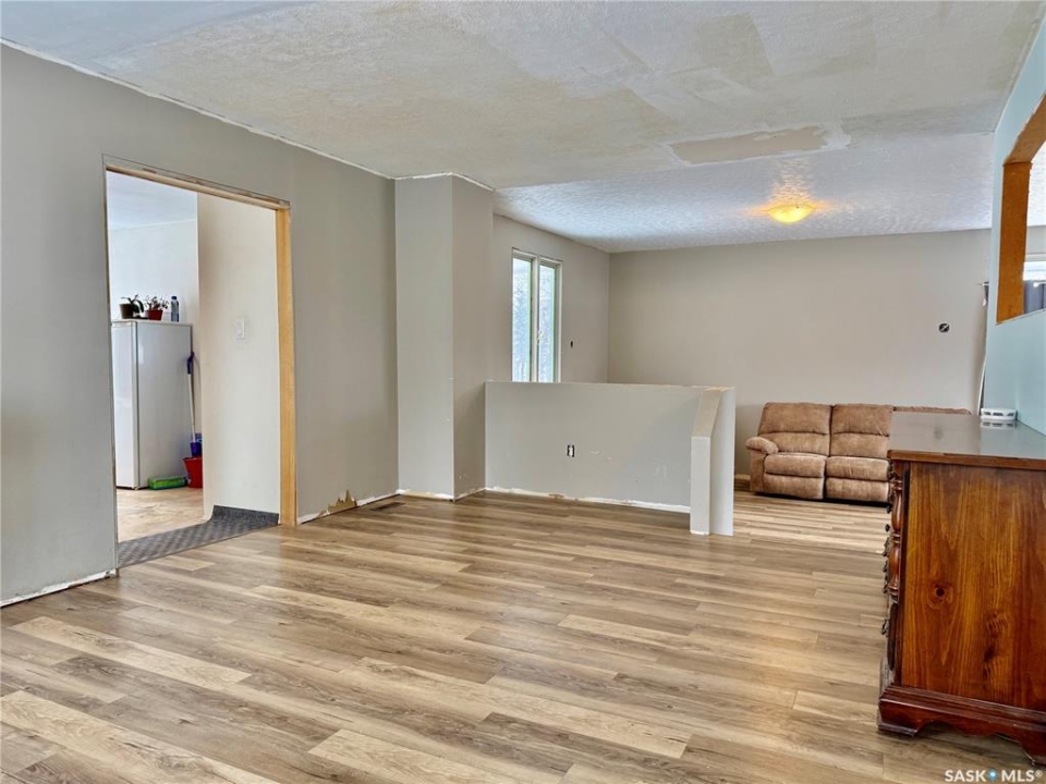 Great location in Lanigan for this spacious 2,116 sq. ft. two-storey family home, ideally positioned in the heart of Saskatchewan's Potash Alley and approximately 20 minutes from the BHP Jansen Potash Mine. Situated on a pie-shaped lot, this four-bedroom, two-bath home features a double detached garage and abundant off-street parking—perfect for families or mine commuters. Numerous upgrades have been completed since 2018, including a high-efficiency furnace, high-efficiency water heater, central air conditioning, roughed-in HVAC, upgraded plumbing, some electrical updates, and professionally installed vinyl plank flooring throughout most of the home (excluding the kitchen). The main floor two-piece bathroom has been updated with a new toilet, sink, and vanity, while the upstairs four-piece bath features an updated tub. A welcoming foyer leads into a sunken living room filled with natural light, flowing into the dining room and kitchen with eating area. Upstairs offers four bedrooms and a full bathroom, providing excellent space for family living. The basement is open and unfinished, offering great potential for future development. Outside, enjoy a fully fenced yard with deck and garden shed. A solid family home in a prime Potash Alley location—call today to view.
