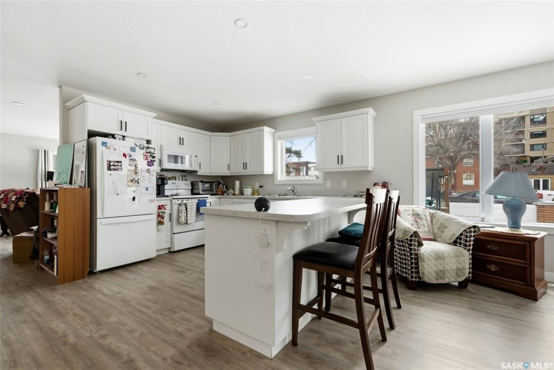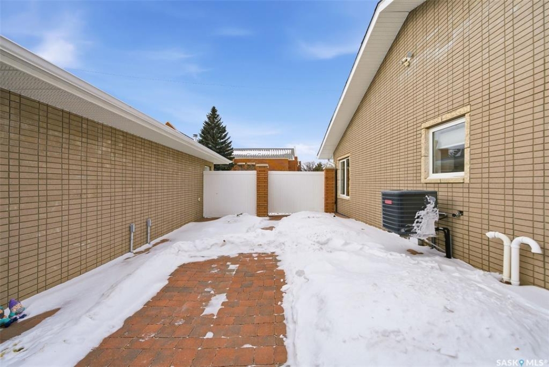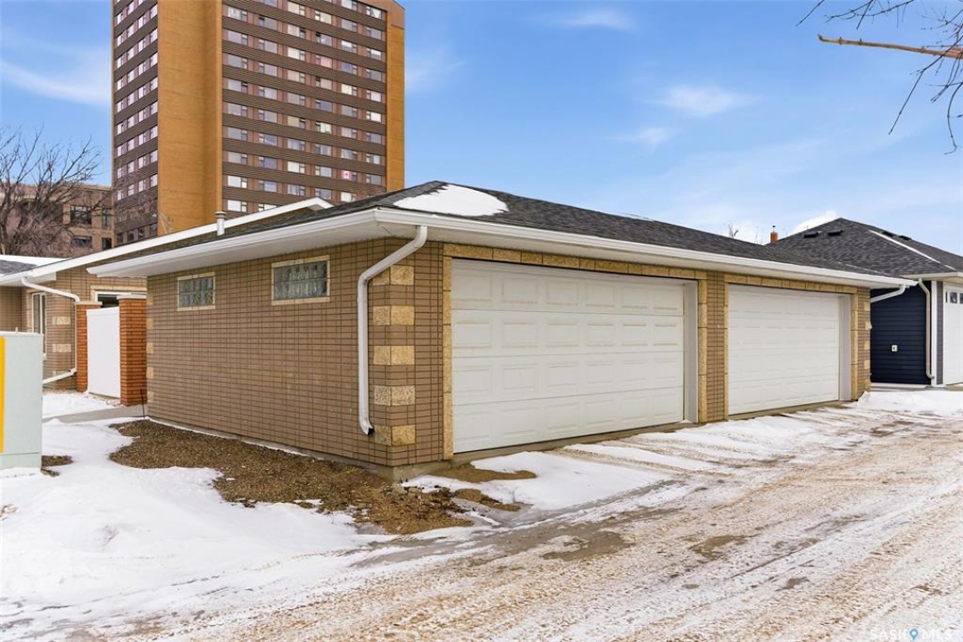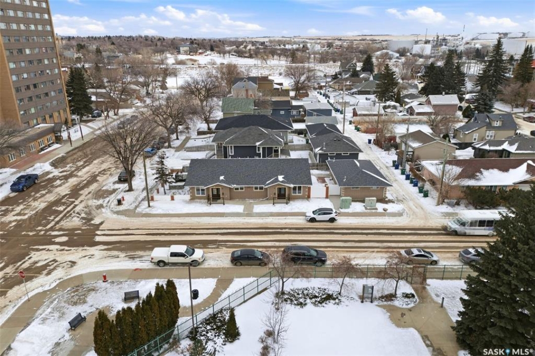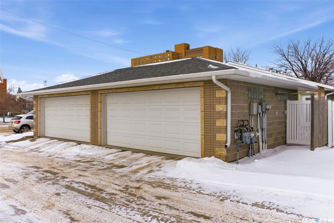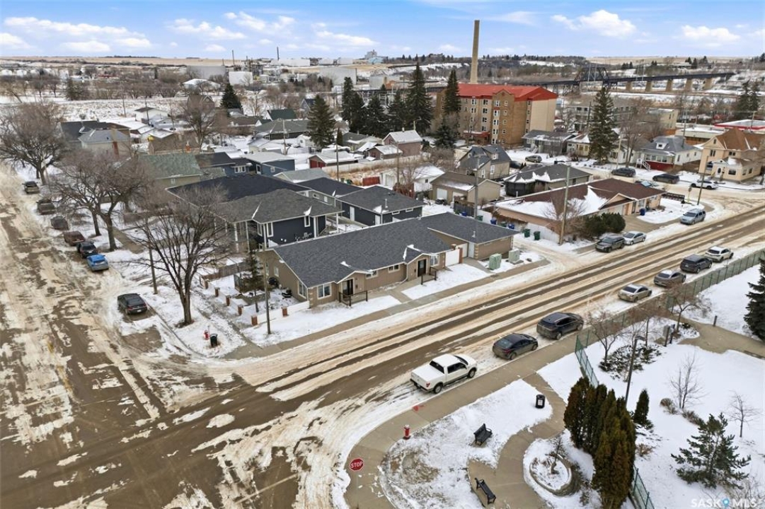 Truly one of a kind, this custom-built, all-brick, bungalow-style duplex offers 2,460 sq. ft. total of single-level, open-concept living and is fully wheelchair accessible to code. The bright living room features large windows with window treatments throughout. A functional open-concept kitchen with modern white cabinetry and ample storage flows seamlessly into the dining area, with garden doors leading to a private deck or patio. Each side offers two generous bedrooms, including a primary bedroom with a walk-in closet and 2-piece ensuite. The main bathroom features a walk-in shower for comfort and accessibility. A dedicated laundry room provides additional storage. Both units include their own double heated garage. The fully brick exterior on both the home and garages ensures maintenance-free living. The fenced, xeriscaped yard features interlocking brick patios, ideal for private outdoor entertaining. An excellent low-maintenance investment property with strong tenants in place, or an ideal opportunity to live in one side while renting the other. Prime location within walking distance to Crescent Park and Main Street. No expense was spared.