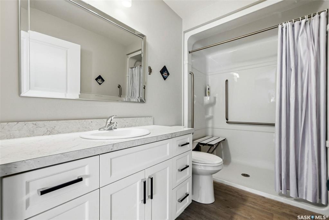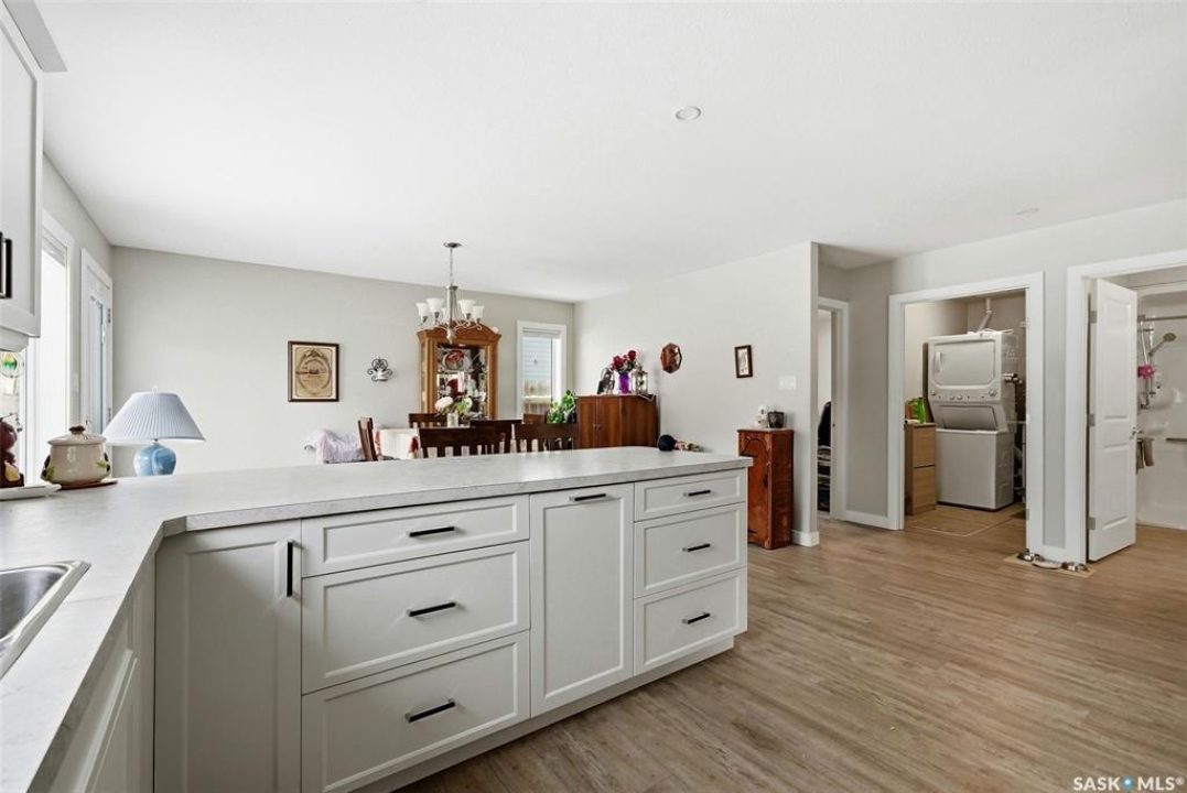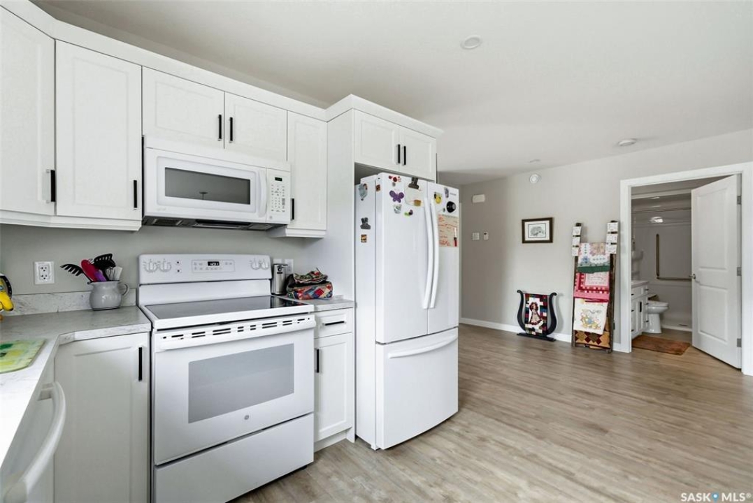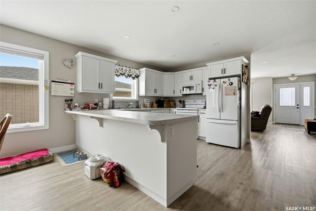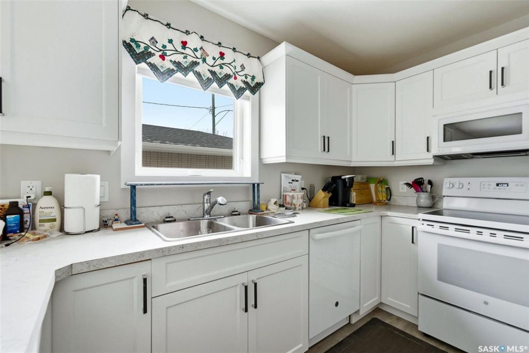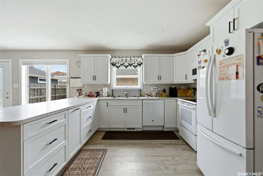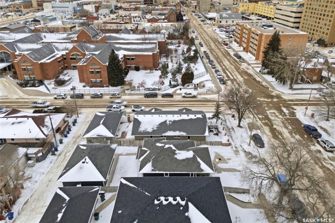 Truly one of a kind, this custom-built, all-brick, bungalow-style duplex offers 2,460 sq. ft. total of single-level, open-concept living and is fully wheelchair accessible to code. The bright living room features large windows with window treatments throughout. A functional open-concept kitchen with modern white cabinetry and ample storage flows seamlessly into the dining area, with garden doors leading to a private deck or patio. Each side offers two generous bedrooms, including a primary bedroom with a walk-in closet and 2-piece ensuite. The main bathroom features a walk-in shower for comfort and accessibility. A dedicated laundry room provides additional storage. Both units include their own double heated garage. The fully brick exterior on both the home and garages ensures maintenance-free living. The fenced, xeriscaped yard features interlocking brick patios, ideal for private outdoor entertaining. An excellent low-maintenance investment property with strong tenants in place, or an ideal opportunity to live in one side while renting the other. Prime location within walking distance to Crescent Park and Main Street. No expense was spared.