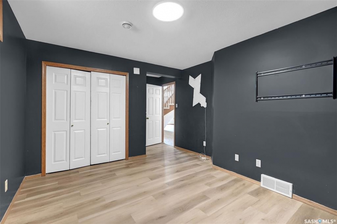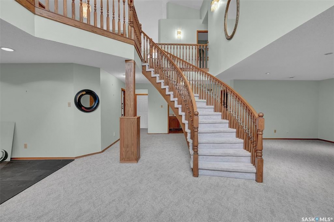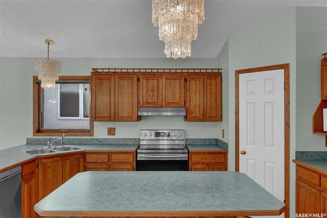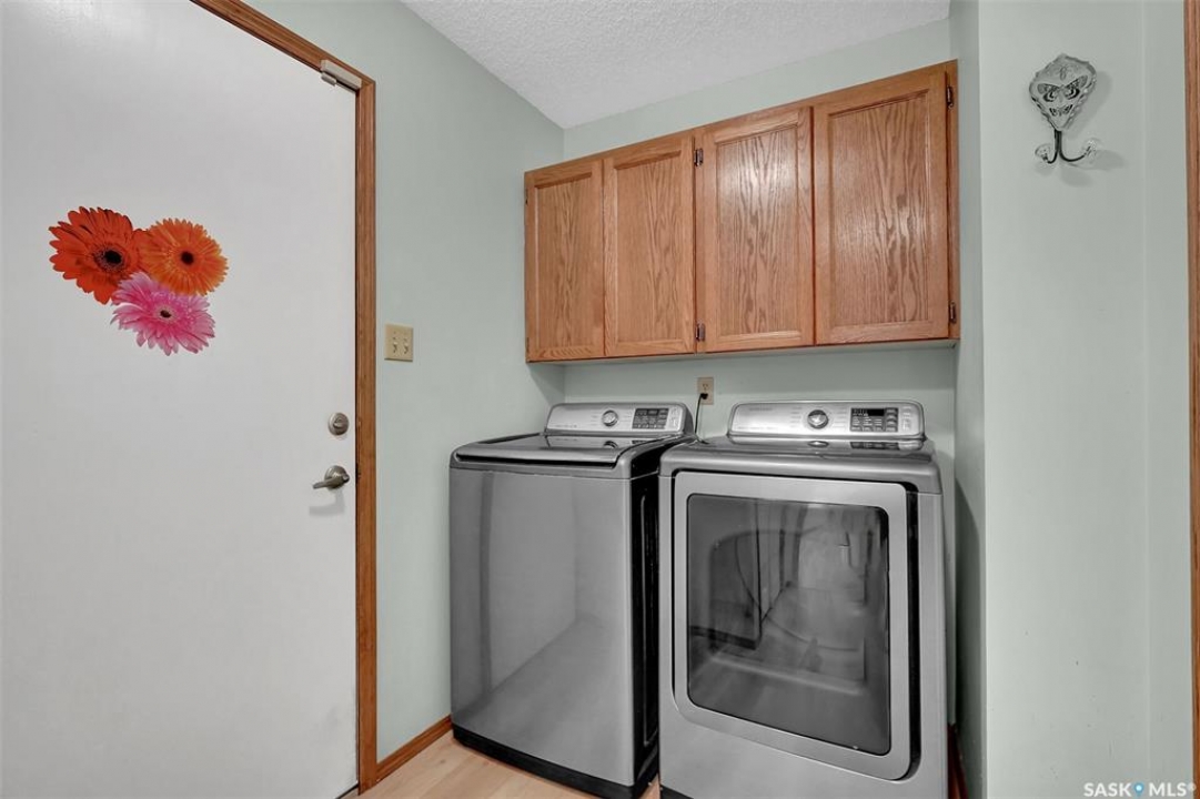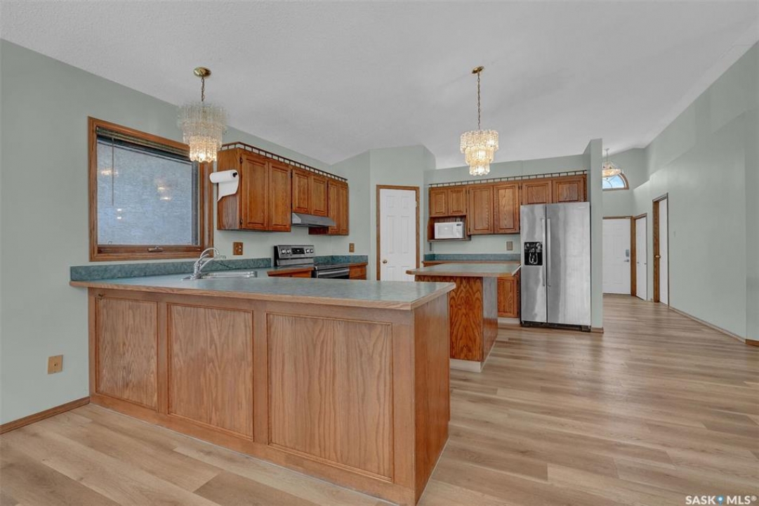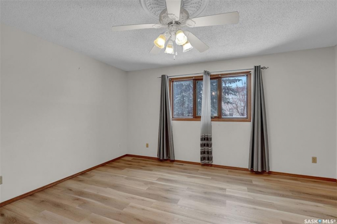 Welcome to this spacious 1,750+ sq ft bungalow located in the highly desirable Wascana neighborhood. This 5-bedroom, 3-bathroom home features a unique design and numerous upgrades, including newer vinyl plank flooring throughout the main floor and vaulted ceilings in the living room, former dining room, and kitchen. The generous front living room, combined with a formal dining area, is highlighted by a large arched window that fills the space with natural light. The kitchen offers an abundance of oak cabinetry, a walk-in pantry, and a center island, making it both functional and inviting. A garden door off the dining area leads to a composite deck with glass and aluminum railings, overlooking a private backyard. The main floor includes two good-sized bedrooms, plus a spacious primary bedroom complete with a large ensuite featuring a separate shower and jetted tub. An additional updated 4-piece bathroom is conveniently located near the main living area. A mudroom with laundry completes the main level. An elegant open staircase leads to the fully developed basement, where large east-facing arched windows provide excellent natural light. The lower level features a huge recreation room, game room, three additional bedrooms, a 4-piece bathroom, ample storage space, and a cold room. The double attached garage is insulated and heated. Situated on a quiet cul-de-sac with friendly neighbors, this home is not to be missed. Recent upgrades include: main floor flooring and one of the main floor bathroom, newer fridge, and dishwasher.