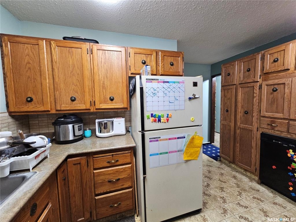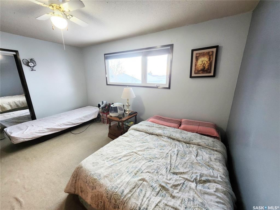 This solid 2+2 bedroom family home offers great bones and a dry, well-maintained basement. Triple-pane PVC windows, updated in 2006, remain in excellent condition, and the home is equipped with an updated high-efficiency furnace. The main floor features a mostly open layout with large windows that bring in abundant natural light, a solid oak kitchen, two bedrooms, and a bright four-piece bathroom. The fully developed basement provides additional living space with a spacious family room centered around a natural brick, wood-burning fireplace that adds warmth and character. Two generously sized basement bedrooms both offer excellent natural light. The basement has no history of water issues and stays dry thanks to the weeping tile system, with smooth concrete in outstanding condition throughout. The exterior of the home is well maintained and finished with low-maintenance X-90 siding and stucco. Landscaped front yard offers ample curb appeal, with backyard is ideal for outdoor enjoyment, featuring a large garden area, fruit trees, mature pine trees, two storage sheds, and a double detached garage.