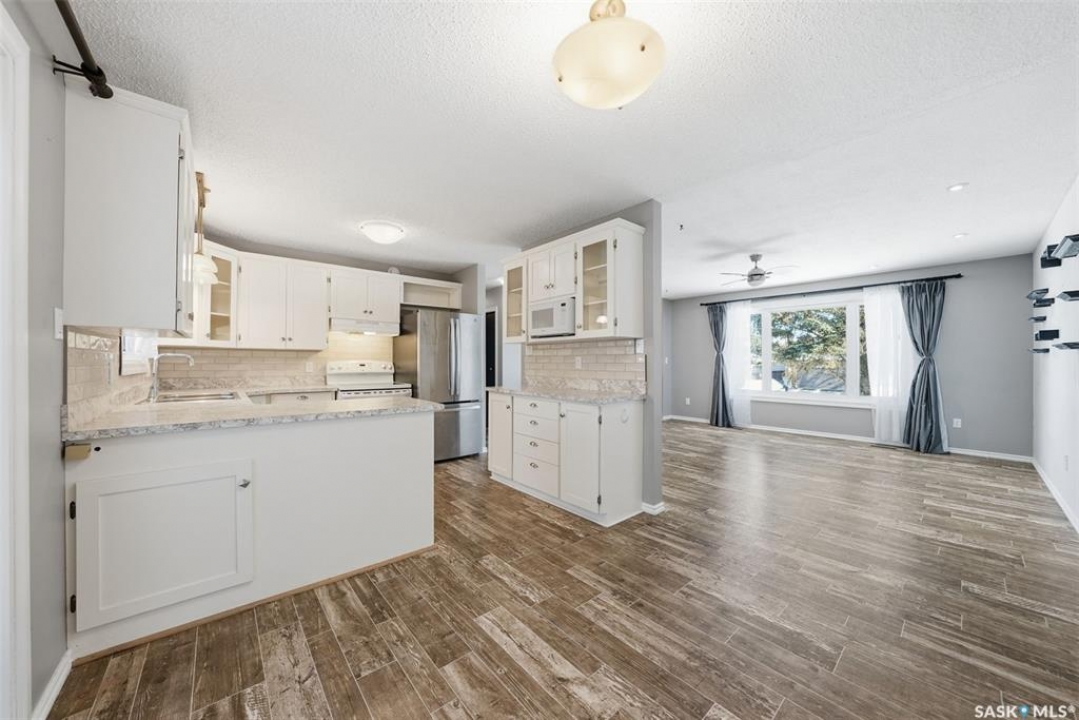 This home is so bright, welcoming, and packed with smart upgrades — this fully finished bi-level in desirable Carlton Park is ready for its next chapter! The main floor has been beautifully refreshed with new flooring throughout, updated kitchen, and newer windows throughout the main floor (within the last 10 years) that flood the space with natural light. With 2 bedrooms and 1 updated bath up, plus 2 additional bedrooms, a second bathroom, a versatile bonus room downstairs and a single car detached garage that's fully insulated, there is space here for anyone: families, downsizers, or fresh starts! This home has all the value-adding upgrades already done: metal roofing, Hardie Board siding, high-efficiency furnace (within 10 years), air exchanger, 100-amp panel with sub panel, and a sunny three-season room overlooking the fully fenced backyard. Outside, you'll love the insulated detached garage, large yard, and the extra parking for up to four vehicles. A wheelchair-accessible ramp in the backyard adds thoughtful convenience. Located on a quiet street in Carlton Park—one of Prince Albert's favourite family neighbourhoods—this home is close to schools, parks, rinks, and walking paths. Clean, comfortable, and move-in ready with high-end updates already done… this is a smart next chapter! Contact your favourite agent to book a showing today!