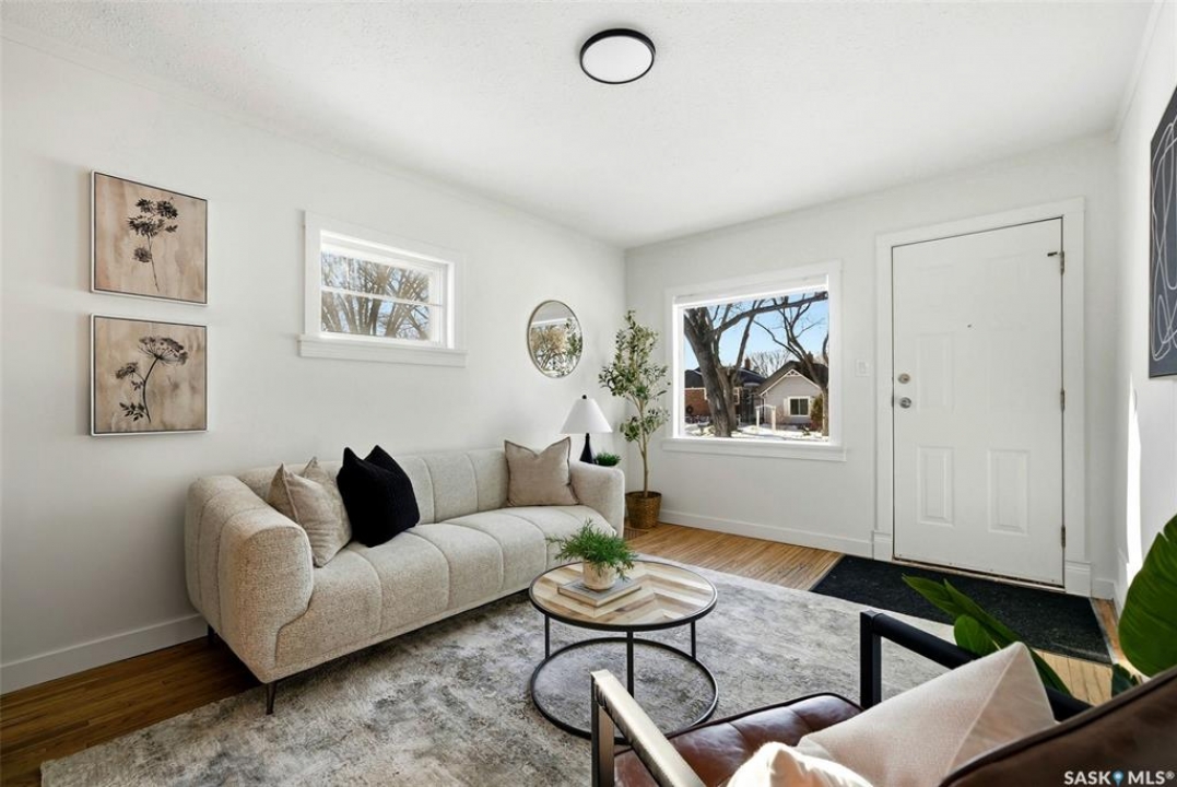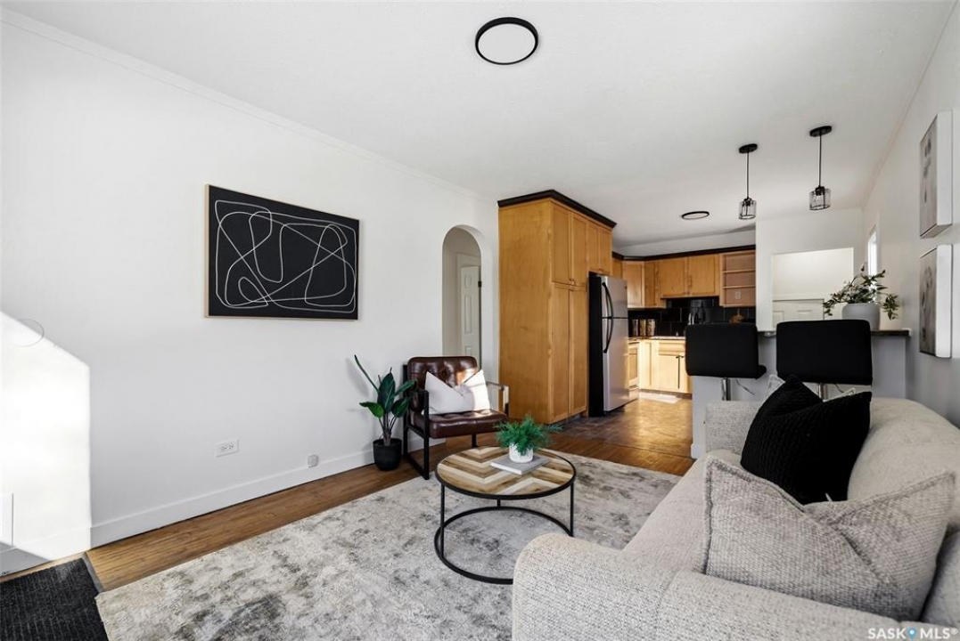 This charming home is the perfect opportunity for first-time buyers! Ideally located on a great block of Forget Street with new construction enhancing the neighbourhood, this 2 bedroom, 1 bathroom property offers a blend of character and many recent upgrades. The renovated kitchen opens to the living room and features beautiful maple cabinetry with a wall pantry, laminate countertops, tiled backsplash, new pendant lighting, stainless steel appliances including an induction stove, and a new kitchen faucet (2026). The living room showcases original hardwood floors, adding warmth and character to the space. The updated bathroom includes a soaker tub, new vanity and skirted toilet, tiled flooring, and a PVC window. Both bedrooms feature updated laminate flooring, and one bedroom and the kitchen also offer upgraded PVC windows. Additional 2026 updates include professionally painted main floor walls, ceilings, baseboards, and trim, freshly painted basement floors, replaced closet flooring, new light fixtures throughout the main floor, new blinds, updated electrical cover plates, new air returns on the main floor, replaced and added shut-off valves, a new sump pump, and a freshly cleaned sewer line. The full concrete basement is open for future development and includes rough-in plumbing for a second bathroom. Other major upgrades include PVC plumbing, a high-efficiency furnace, and central air conditioning. Outside, you'll find a fully fenced 37' x 125' lot, a single detached garage off the back alley, and extra parking space. A fantastic starter home in a growing area!