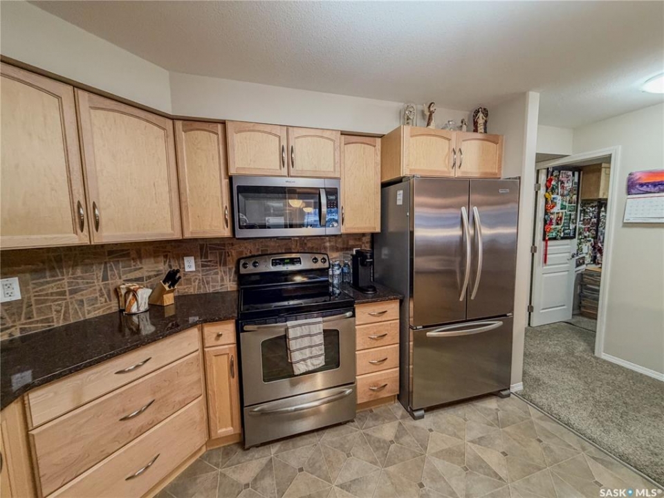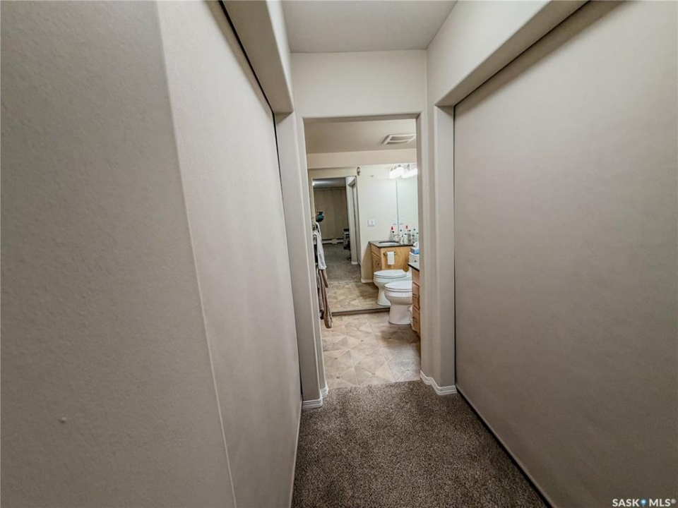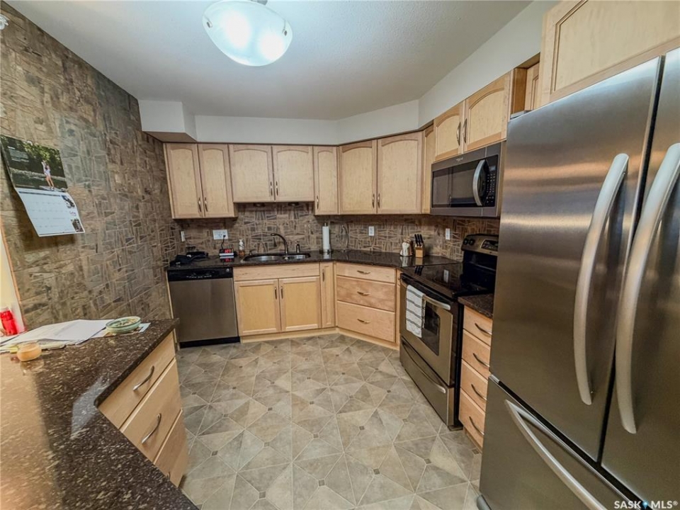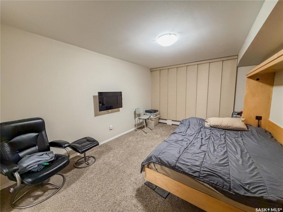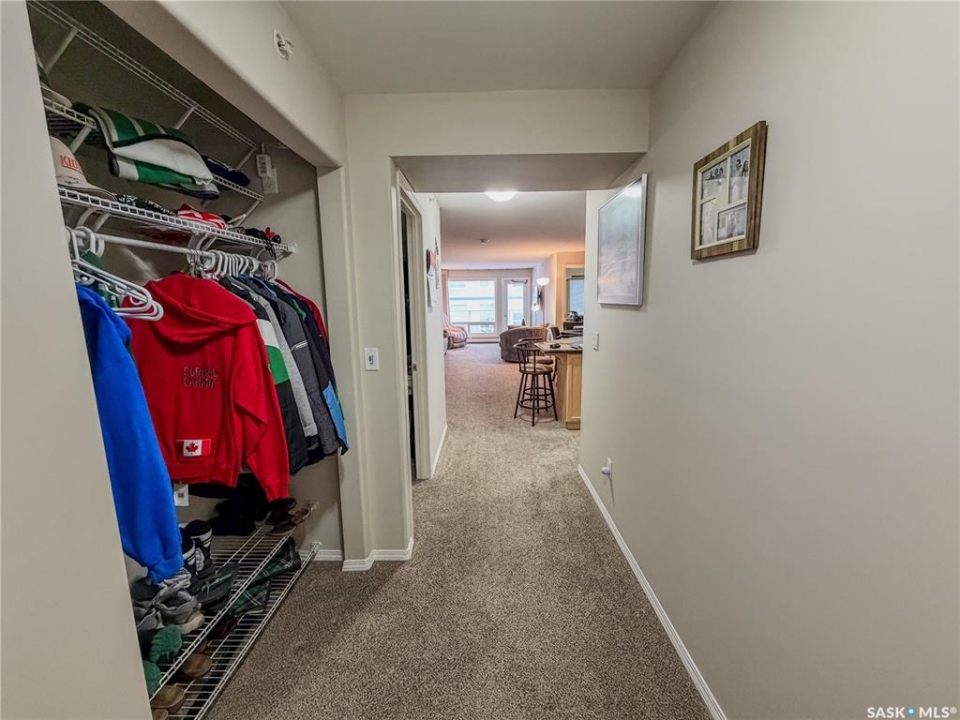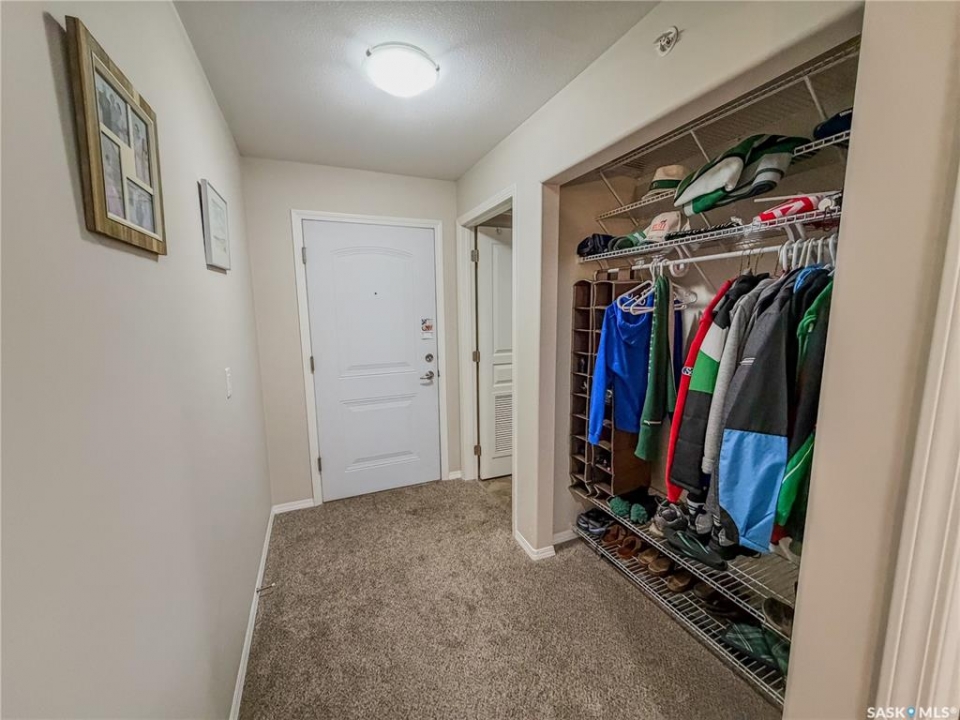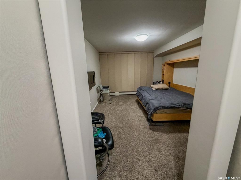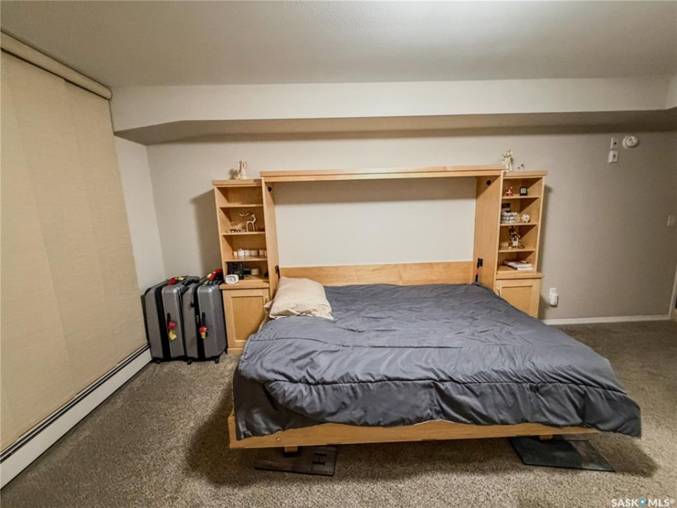 Beautiful and well maintained, one owner condo! This Large condo (ovr 1100 sqft) hosts 2 bedrooms, plus 1 office, 2 parking stalls and a storage unit. One parking spot in the underground parking and one outside. There are 2 bedrooms in the condo, with the bonus of an extra room for an office. The living room faces East and has garden door access to the covered balcony. The condo has some added custom features such as feature wall and backsplash in kitchen, custom motorized privacy blinds, a beautiful primary ensuite bathroom, in-unit large laundry room and three custom murphy beds in each private room. The condo building has a common room for gathering in and socializing. Some features include: Underground parking, mail boxes in building, security doors and wheelchair accessible. This condo building does allow small pets, with restrictions.