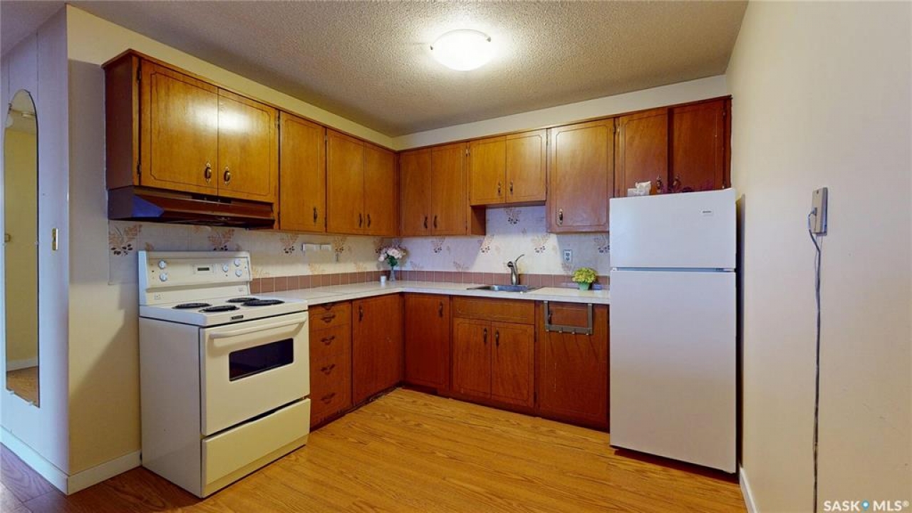 This motivated seller wants you to own this wonderful affordable condo in Regina's sought-after south end! Located in the quiet, well-maintained Albert Park complex, this top-floor unit offers a spacious 1-bedroom, 1-bathroom layout with its own private balcony. The roomy living room opens into the kitchen, making it convenient for entertaining or relaxing at home. The kitchen has an eat in dining space and plenty of counter space for all your cooking needs. The oversized bedroom offers incredible flexibility – easily accommodating a home office, reading nook, or even an extra bed. The updated bathroom includes excellent built-in storage, and there's an additional in-suite storage room to keep everything neatly tucked away. This complex has been very well maintained, easily noticeable as you walk into the building. Other highlights include: newer windows, in building shared laundry, walking distance to the Southland Mall, groceries, and amenities as well as a bus stop directly in front of the building. Whether you're downsizing, purchasing your first home, or seeking a solid rental investment, this condo checks all the boxes. Pop in and take a look at this sweet gem of home - it is a wonderful find.