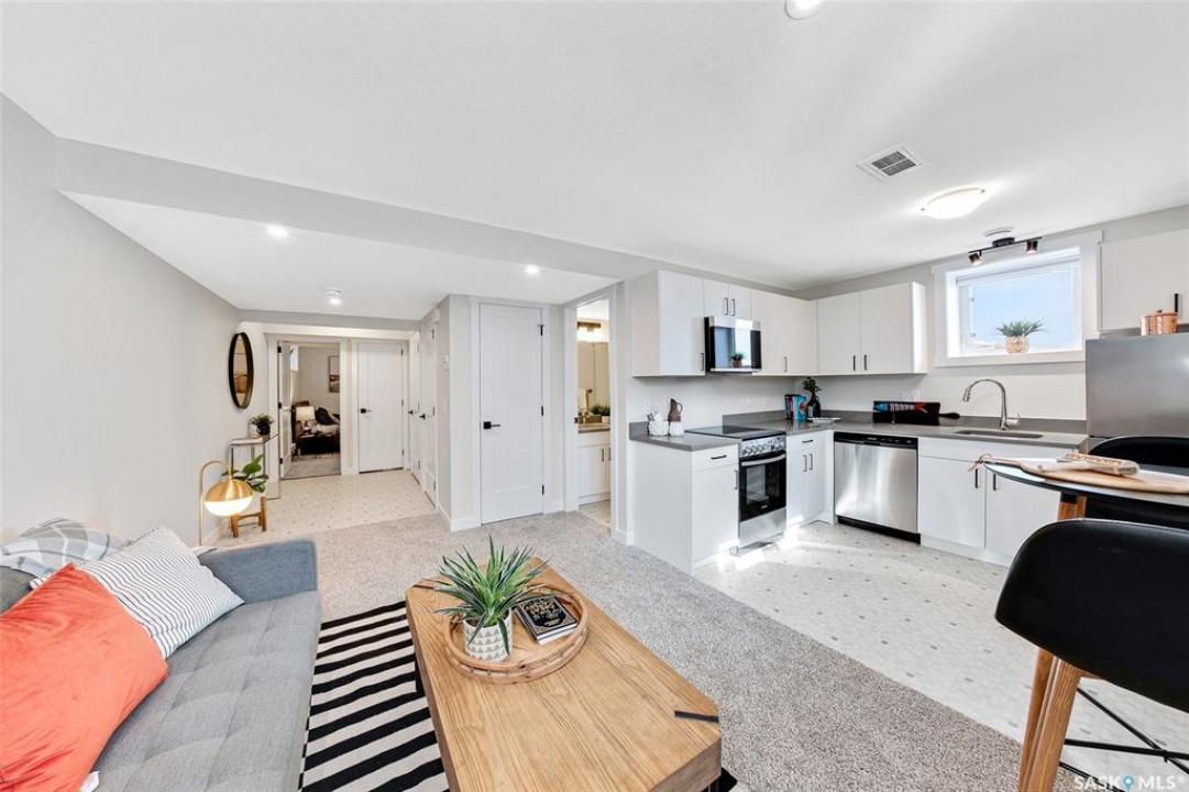 This home includes a 1-bedroom legal basement suite, offering an excellent mortgage helper and added long-term value. Welcome to the Century, a well-appointed 4-bedroom, 3.5-bath home crafted by North Prairie Developments. Step inside to 9-foot ceilings and a spacious foyer that flows into a bright, airy living room. The kitchen is filled with natural light, beautifully highlighting the architectural archways that grace the main floor and add character throughout the home. Upstairs, the spacious primary bedroom features a walk-in closet and an ensuite with a built-in makeup area. Two additional bedrooms provide flexibility for families or guests, while second-floor laundry adds everyday convenience. Outside, enjoy front landscaping already complete, including underground sprinklers, plus a 20' x 20' concrete pad included with the home. A thoughtful blend of charm, functionality, and income potential. Schedule your private viewing today. If buyer does not qualify for SSI (Secondary Suite Incentive) then price will be adjusted accordingly. ie. If it is not the buyer's primary residence.