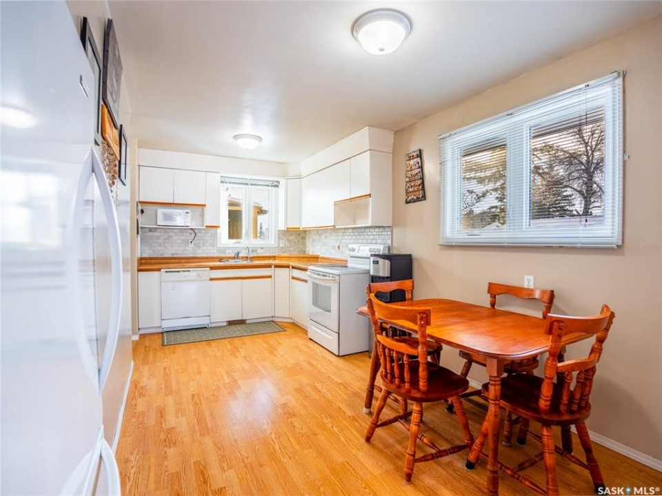 Loaded with upgrades and ready to move into! This original owner, fully developed bungalow is well maintained and offers desirable features throughout. The bright, spacious living room has attractive laminate flooring. The kitchen and dining room offers laminate flooring, tile backsplash and all major appliances. There are three bedrooms on the main floor and a four piece bath. Basement development includes a large recreation room, a bedroom and an utility room offering plenty of storage. Additional features and upgrades include triple pane PVC windows (2023), a mid efficiency furnace (2025) and shingles (2023). Enjoy the fenced and meticulously maintained landscaped backyard from the sunroom. A rubber resurfaced driveway off of the street leads to a wooden deck on the side of the house. A single car garage with alley access completes the exterior. Located in the quiet, family friendly Normanview neighbourhood this exceptional property backs a green space. Don't miss out on the opportunity to make it yours, call today to book your viewing!