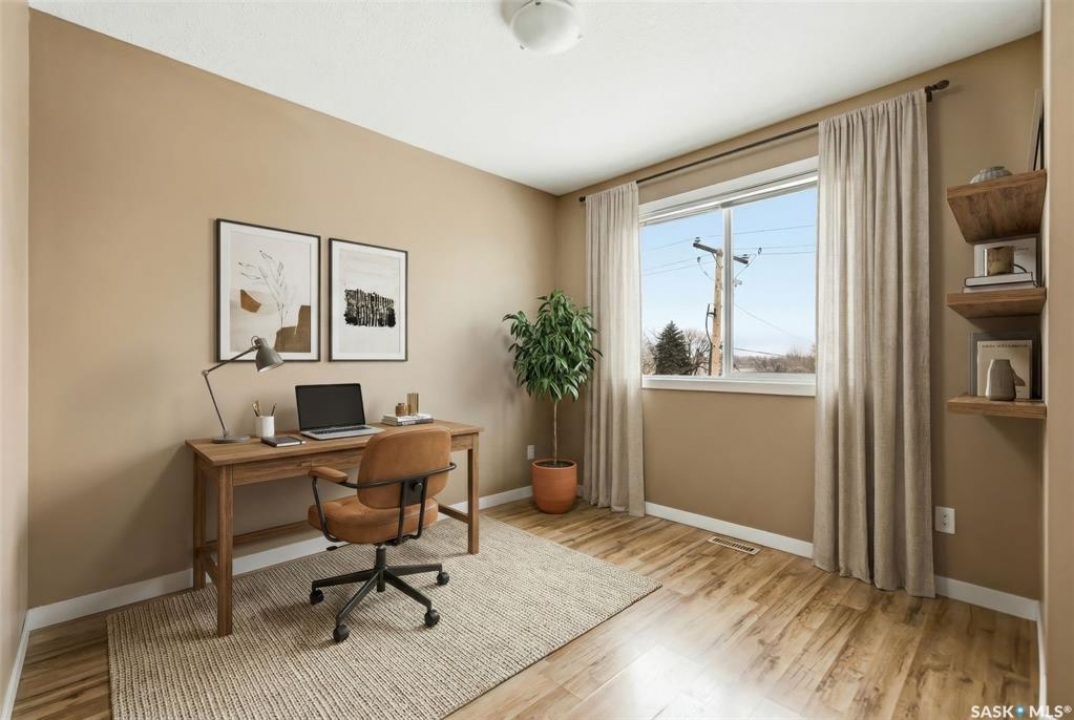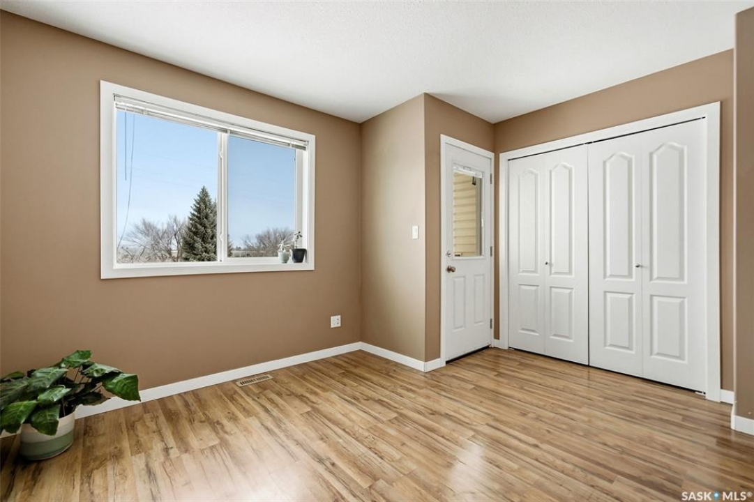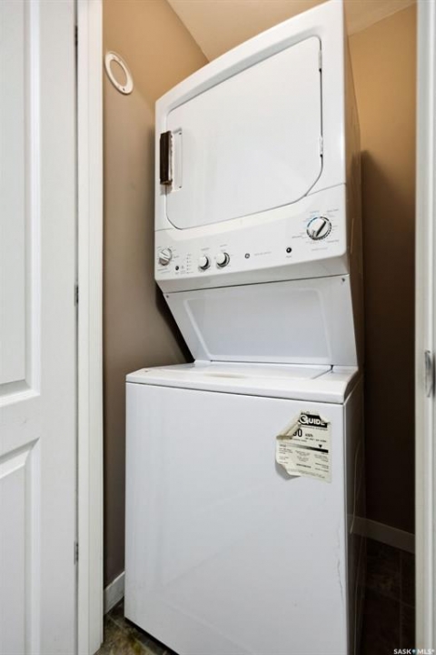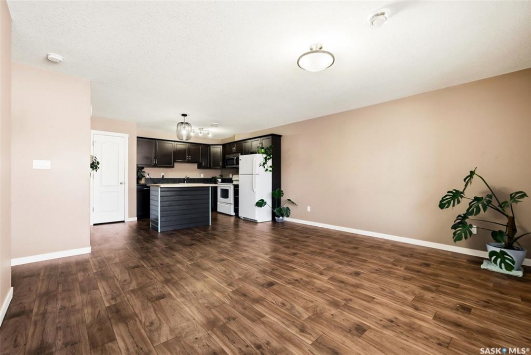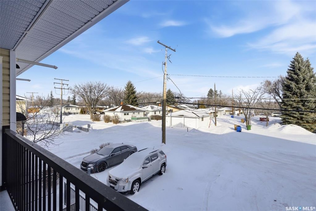 Welcome to #110-1210 Empress Street! This well-appointed 2-bedroom, 3-bathroom townhouse-style condo located in the heart of a quiet, established Rosemont neighbourhood. Built in 2013, this home offers a functional multi-level layout with thoughtful finishes throughout. The main floor features mid-brown hardwood laminate flooring, large windows that fill the space with natural light, a convenient 2-piece bathroom, and a well-designed kitchen with stainless steel appliances, granite countertops, and rich espresso cabinetry. From the kitchen, step out to your private patio—perfect for summer evenings or morning coffee. Upstairs, the primary bedroom includes a spacious walk-in closet and a 4-piece ensuite. The second bedroom offers its own private balcony, while an additional 4-piece bathroom, laundry closet with stackable washer and dryer, and linen storage complete the upper level. This unit comes with two electrified parking stalls directly in front of the door and is part of a well-maintained complex featuring a play structure. Condo fees include: snow removal, lawn care, building maintenance, garbage and recycling, electricity for parking stalls, and reserve fund contributions. Pets are permitted with restrictions on size and number. Ideally located just two blocks from No Frills and Shoppers Drug Mart, half a block from Martin Collegiate, and within walking distance of Luther High School, Rosemont and Walker Elementary schools. Enjoy nearby access to A.E. Wilson Park and scenic walking and biking paths, with quick connections to Lewvan Drive, Harbour Landing, downtown Regina, and Rochdale Boulevard. A fantastic opportunity to enjoy low-maintenance living in a family-friendly, well-connected community.
