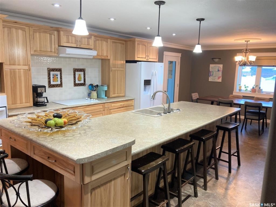 Welcome to 501 Silver Place in the welcoming community of Hudson Bay, SK. Built in 2013, this expansive home offers over 4,000 sq ft of living space with solid 2x8 construction, and blueprints are available upon request. The grand front entrance opens to a striking calico-hickory staircase that sets the tone for the rest of the home. With five bedrooms—four on the upper level, one on the main floor, and another in the lower level—there's room for large families or guests, and the upper-level laundry adds everyday convenience. The home features four bathrooms, including a beautiful ensuite with a walk-in shower, along with three family rooms that provide plenty of space for gathering, relaxing, or entertaining. The kitchen is a standout with its calico-hickory cabinetry, over 12-foot island, and seamless flow into the dining and living areas. A covered semi wrap-around deck and a bright four-season sunroom on the south side extend your living space year-round, offering a cozy spot for morning coffee, extra seating, or practical storage. Completing the property is a detached two-car garage with 10-foot walls. This home truly offers space, comfort, and thoughtful design throughout. Contact us today to book your viewing.