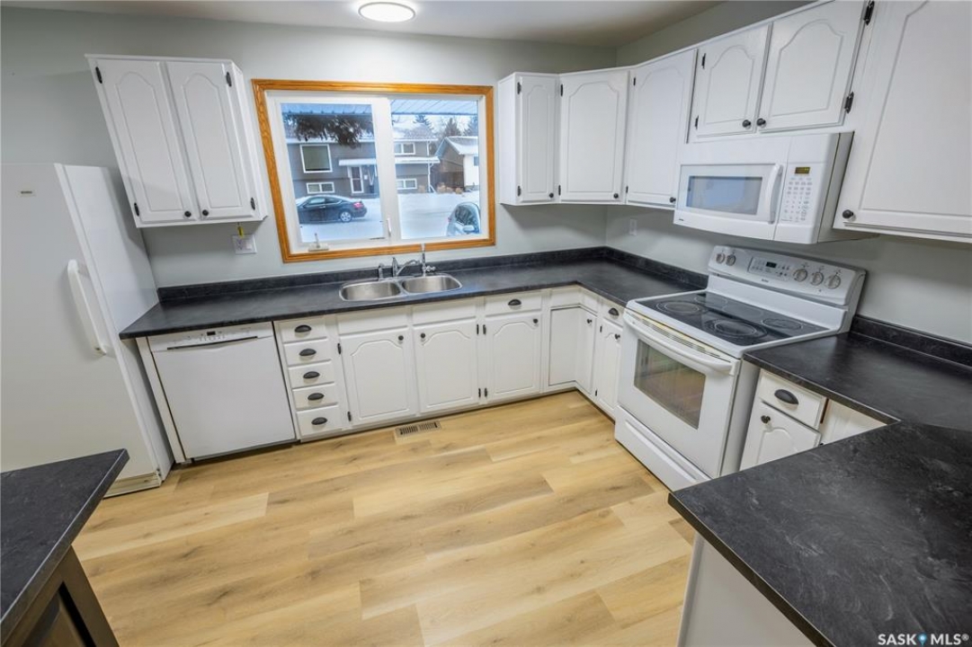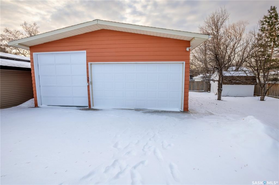 Located on a quiet crescent in a popular neighborhood, this 3 bedroom bungalow offers comfort, functionality, and room to grow. Step inside to a bright and inviting living room-- perfect for relaxing or entertaining. The country style kitchen features white cabinetry, new counter tops, 2 lazy susans, double sinks and includes appliances, creating a warm and practical space for everyday living. A moveable island/eat-up counter and chairs are also included. All 3 bedrooms are generously sized, with the primary bedroom offering his & hers closets. The main bathroom includes a jetted tub while a convenient half bath is located off the laundry area. The fully finished basement expands your living space with an entertaining sized family room, 2 dens, a newly updated bathroom, multiple storage rooms and a utility room. The main floor laundry/mudroom provides access to a large back deck with a built-in bench overlooking a landscaped yard complete with apple trees and grapevines. A shared driveway leads to an OVERSIZED 28x26 garage. The double door side is heated, insulated, and comes with a ventilation system, 220 plug, work benches & an air compressor-- ideal for vehicles, toys or hobbies. The single bay garage has an oversized door and loft perfect for storage. Some of the exterior updates in the last year include shingles, central air, soffit, eaves, facia, exterior paint & new front steps. A wonderful opportunity to own a well maintained home in a wuiet, family-friendly location!