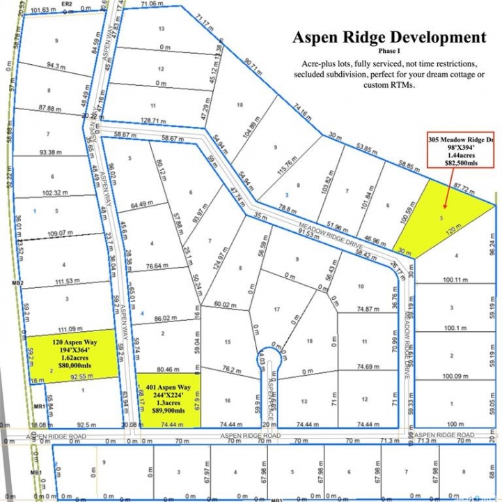 305 Meadow Ridge Dr. 1.44-acre pie-shaped lot in Aspen Ridge at Candle Lake. Private, quiet, and backing onto nature, this fully serviced lot (Sask Energy, Power & Tel) offers approx. 98' x 394' of space to build your dream cottage or bring in your favourite RTM. Whether you're envisioning cozy and simple or spacious and luxurious, this property delivers the flexibility and privacy you're looking for. Tons of VALUE. Enjoy year-round recreation at Candle Lake—boating, swimming, fishing, golf, hiking, biking, snowmobiling, skiing, and ice fishing—plus crystal-clear water, sand dunes, and nearly 30 km of sandy beaches. This could be #yourhappyplace.