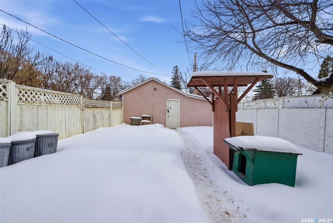 This adorable 2 bedroom, 1 bathroom, 714 sq ft single-detached bungalow is packed with charm and value. Built in 1929, the home showcases classic character while offering important updates and maintenance that make it an excellent choice for the budget-conscious buyer seeking a move-in-ready option. The fully fenced backyard provides privacy and a great space for outdoor entertaining. An oversized single garage with a newer garage door offers secure parking plus extra room for storage, hobbies, or toys. Recent work includes sewer cleaning and inspection, furnace servicing, duct cleaning, and plumbing service. All appliances have been tested and are included in as-is condition. Inside, the main floor features a bright and spacious living room, a quaint kitchen with a cozy dining area, two comfortable bedrooms, and a 4-piece bathroom. Off the kitchen, you'll find access to the backyard and garage. Stairs lead to the unfinished basement, which is concrete, braced, and home to the laundry area — a perfect spot for storage or future development. Located within walking distance to Pasqua Hospital, Mosaic Stadium, public transit, and numerous amenities, this home offers convenience and community. With its manageable size, essential updates, and attractive price point, it's a fantastic opportunity for a first-time or budget-minded buyer looking to build equity instead of paying rent. Call your agent to schedule a viewing.