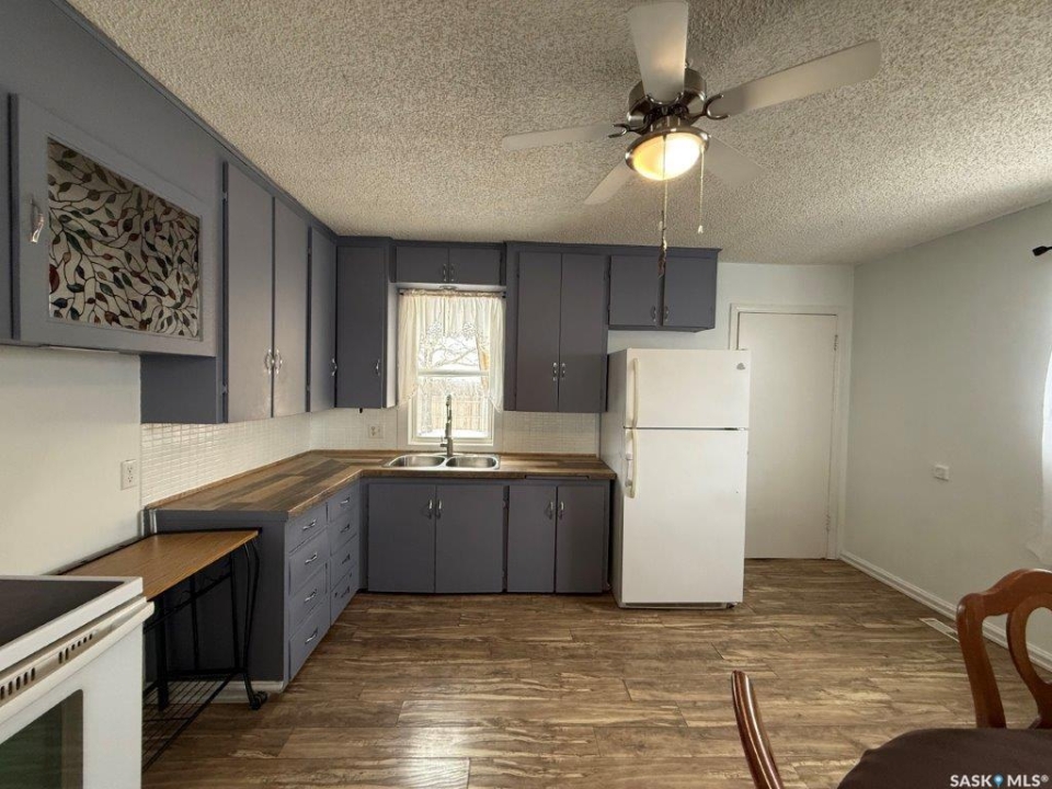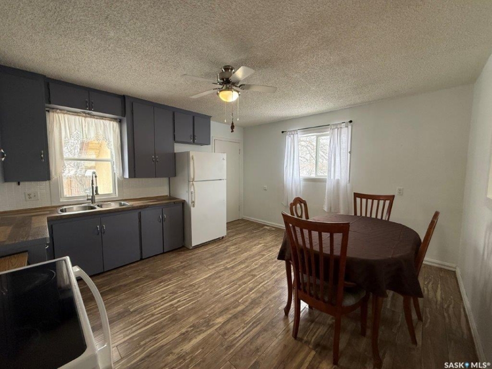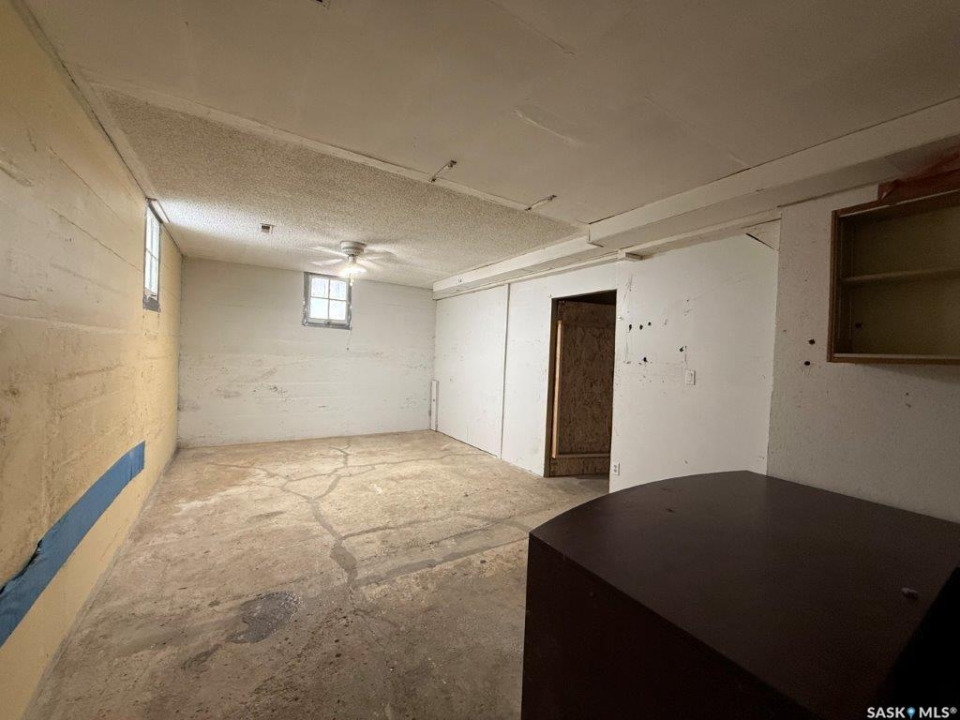 Great starter home or rental property located in Coleville. Front entrance opens to living room that is great size with a couple windows to let in lots of natural light. Kitchen overlooks the backyard. There is plenty of cabinets and counterspace with room for a dining table. Down the hall are 2 bedrooms with walk in closets and a 4-piece bath completes this level. Partially finished basement with some drywall and framing started There is a laundry room, storage room or office, cold room and another room that could be used as a bedroom. Updates: Double glaze pvc windows in August 2025, Water heater 2025, energy efficient furnace, metal roof in 2025. Features: Fenced backyard with mature trees and garden area. Central air. Good starter home! (Water and sewer system is through the village of Coleville on reverse osmosis. 2 sheds included. Call to book your tour of this property today!