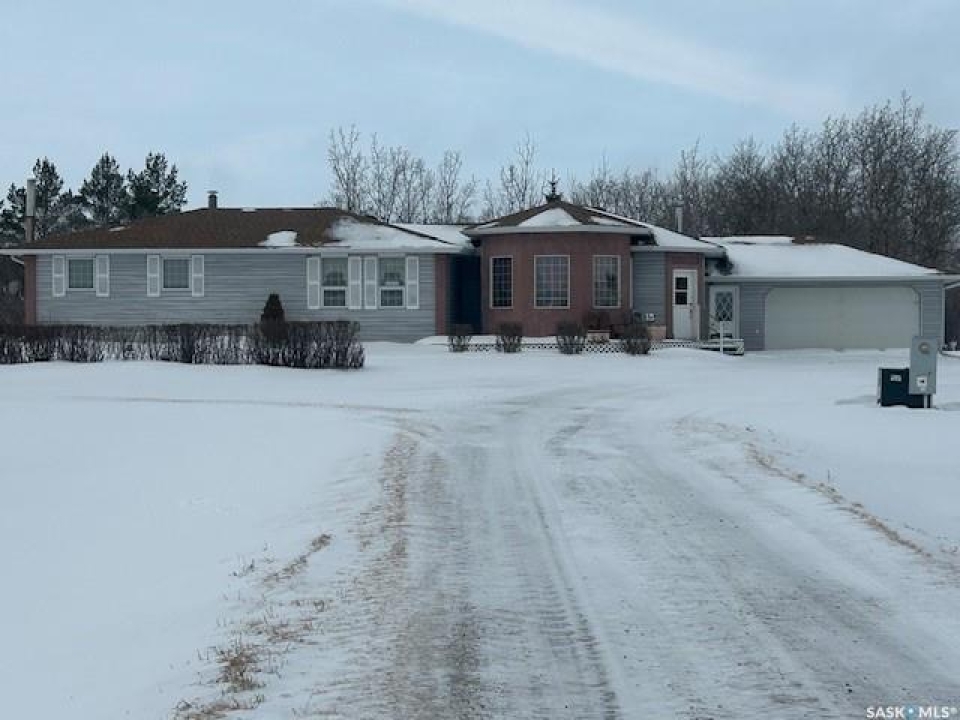 This very appealing rural home offers 1,800 sq. ft. of living space in a raised bungalow design, featuring a beautiful addition with an open kitchen and dining room highlighted by a cozy wood-burning fireplace. The main floor includes three bedrooms, a four-piece bathroom, and a convenient two-piece bathroom combined with a laundry area. The bright living room features garden doors leading to a brand-new 25' x 13' deck — perfect for outdoor enjoyment and entertaining. The partial basement provides a large family room with a wood stove, a fourth bedroom, and a three-piece bathroom. Additional spaces include a dedicated wood storage room with access through a basement window, a furnace room with propane furnace, a utility room with pump and water tank, and an extra storage room, offering excellent functionality and storage throughout the home.The sewer system and shingles were both updated in 2022 adding peace of mind for future owners. This listing also includes two quarters of very good farmland, currently being fenced and used as grassland, with soil quality suitable for grain production as well. The well-developed yard features a calving barn, an over-coverall shed, a 24' x 48' open pole cattle shelter, and a small shop — making this property well suited for a mixed farming operation, grain production, and livestock, while also offering the comfort of country living.