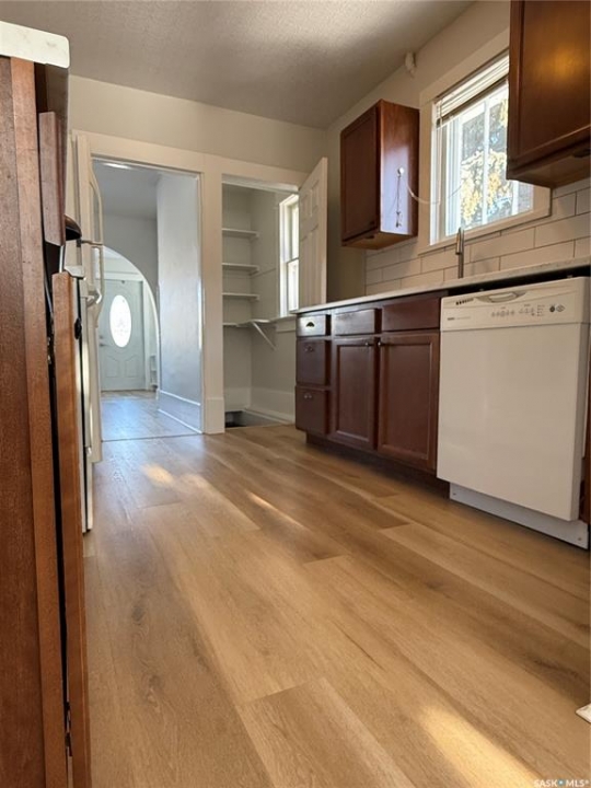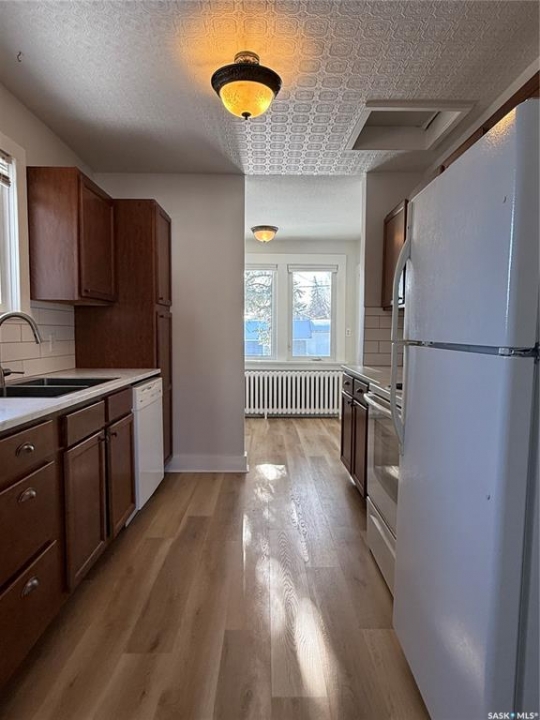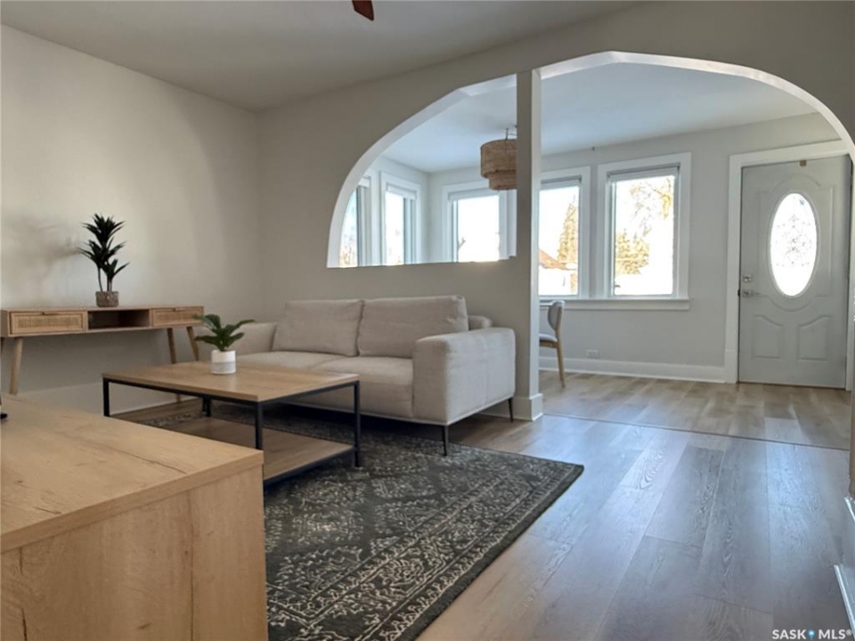 If you've got someone in your life looking for their first home—or maybe thinking it's time to downsize into something a little easier to manage—this charming bungalow is one you'll want them to see. Built in 1926 and thoughtfully updated, this 2-bedroom home blends character with modern touches and is truly move-in ready. You're welcomed in through a spacious entry that makes day-to-day life just a little easier, whether it's boots in winter or groceries coming through the door. The kitchen has been nicely refreshed with updated countertops, sink and faucet, plus a clean tile backsplash that gives the space a modern feel. Vinyl plank flooring runs through the main floor, tying the living room and dining area together, and updated blinds, along with a coat of neutral paint, keep everything feeling bright and inviting. The bathroom renovation is another big plus, featuring a refinished tub with tile surround, updated vanity, new lighting, and updated flooring—clean, modern, and ready to enjoy. At 798 sq ft, this home makes great use of space, offering two comfortable bedrooms and a cozy main living area without extra upkeep. Hot water heat provides steady comfort, most windows have been upgraded to PVC (with just two originals remaining), and the home is serviced by a 100-amp panel. Downstairs, the basement offers excellent storage space, while outside, the corner lot gives you a bit of extra breathing room along with a single detached 10 x 24 garage. And being close to parks means it's easy to get outside and enjoy the neighbourhood. Appliances and the window air conditioning unit are included, and the existing furnishings, as shown, can be negotiated if a buyer is looking for an easy, move-in-ready setup. All in all, it's the kind of home that just feels comfortable the minute you walk in—an easy place to picture starting out or settling into your next chapter.